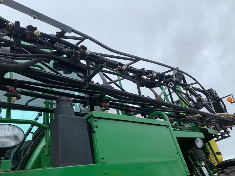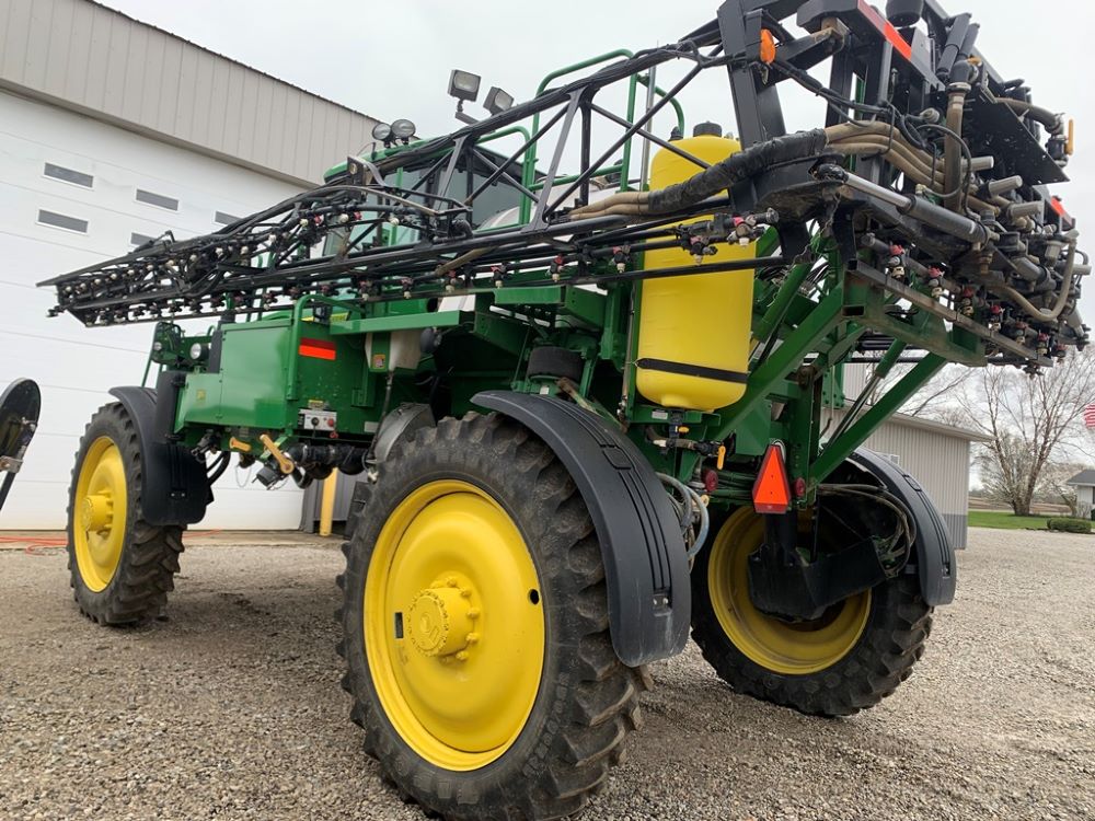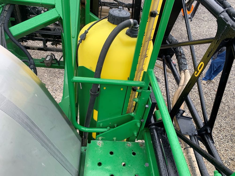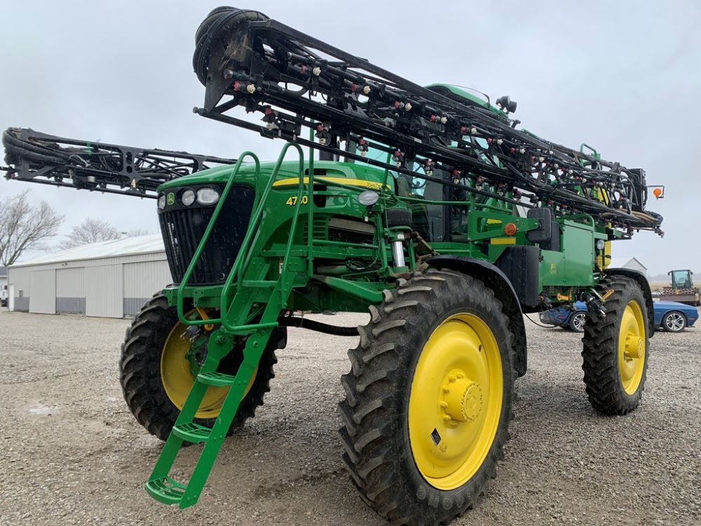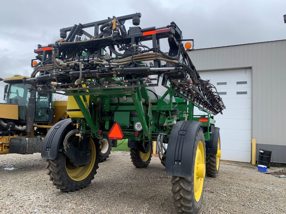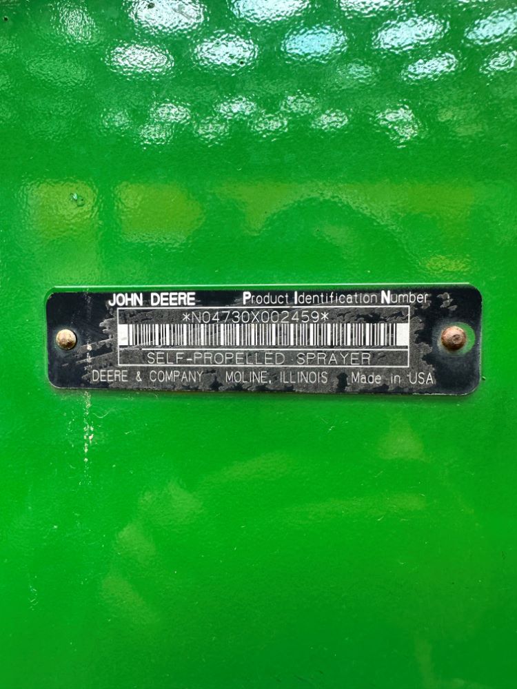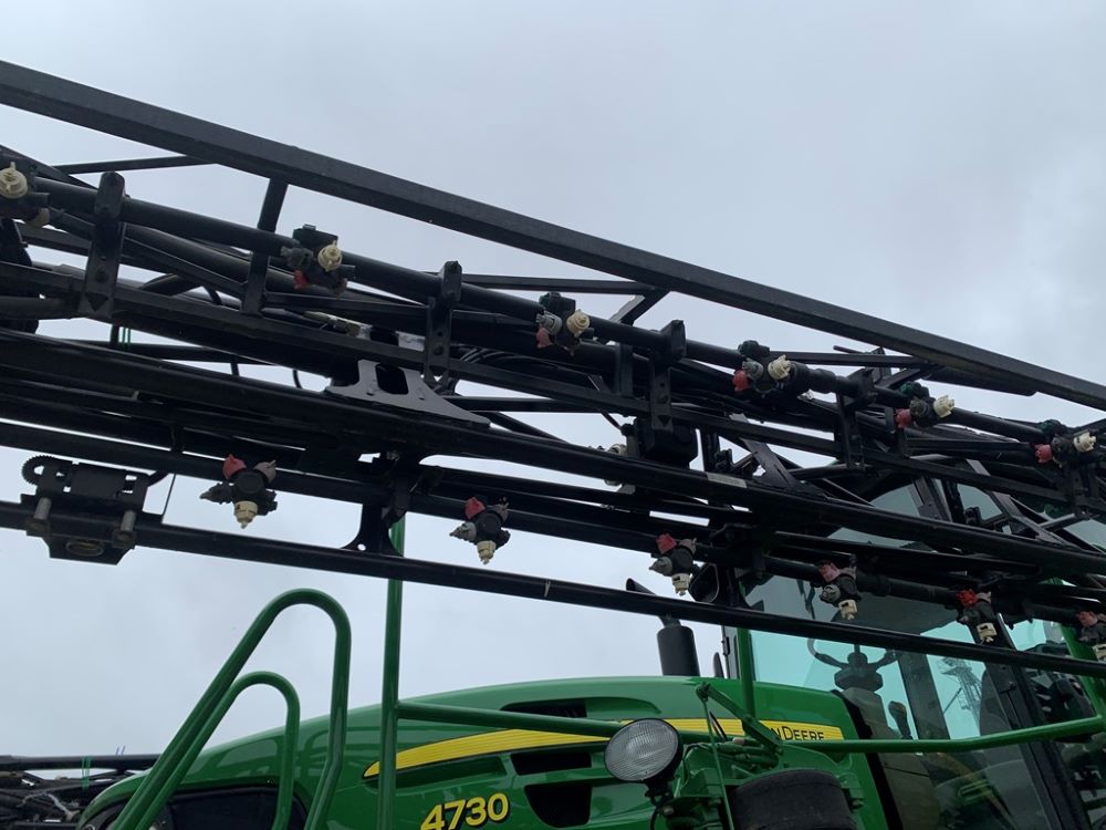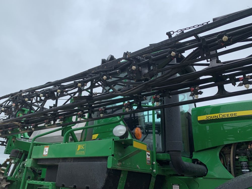 2008 John Deere 4730 Sprayer (CP3533), John Deere diesel engine (PE6068L026202), hydrostatic transmission, heat, air conditioning, Am/Fm radio, buddy seat, 800 gallon stainless steel liquid system, 100' boom, 5-way nozzle bodies, stainless steel chemical inductor, Firestone 380/90R46 row crop tires, fenders, 839 ACTUAL HOURS.