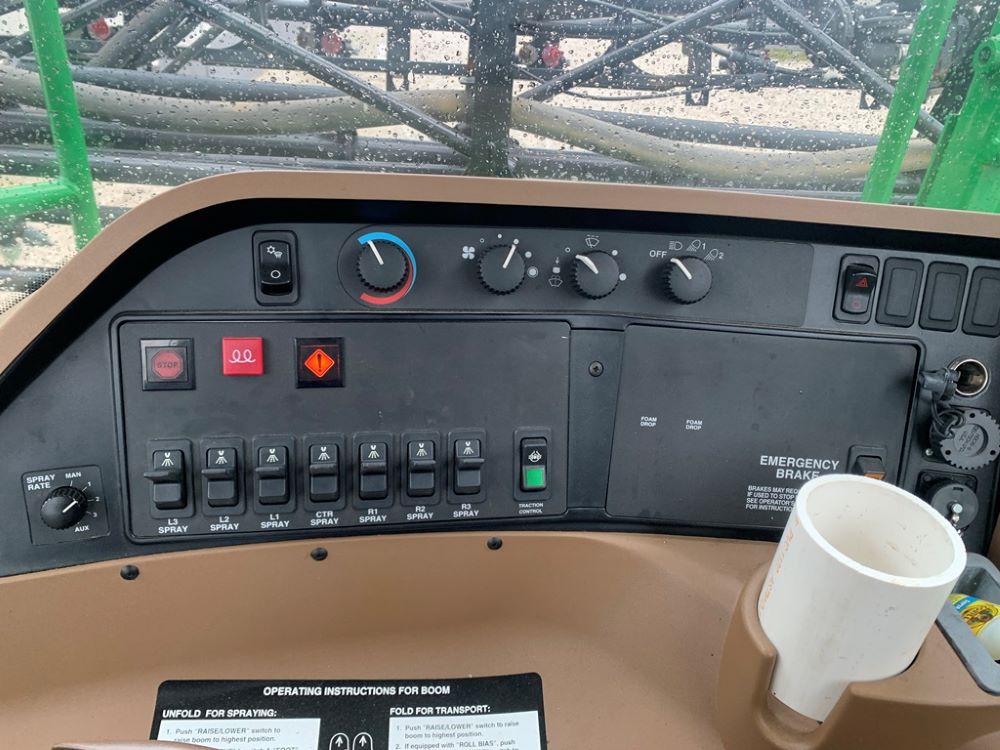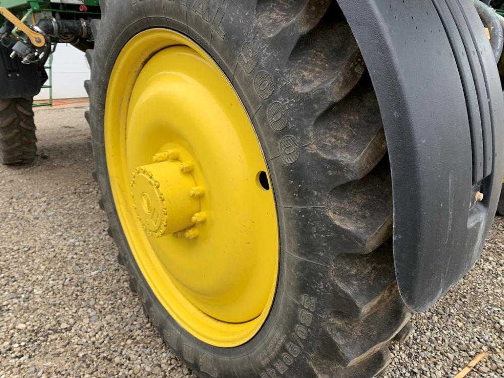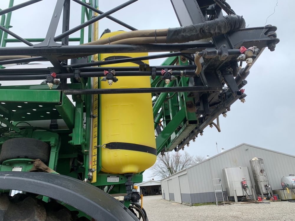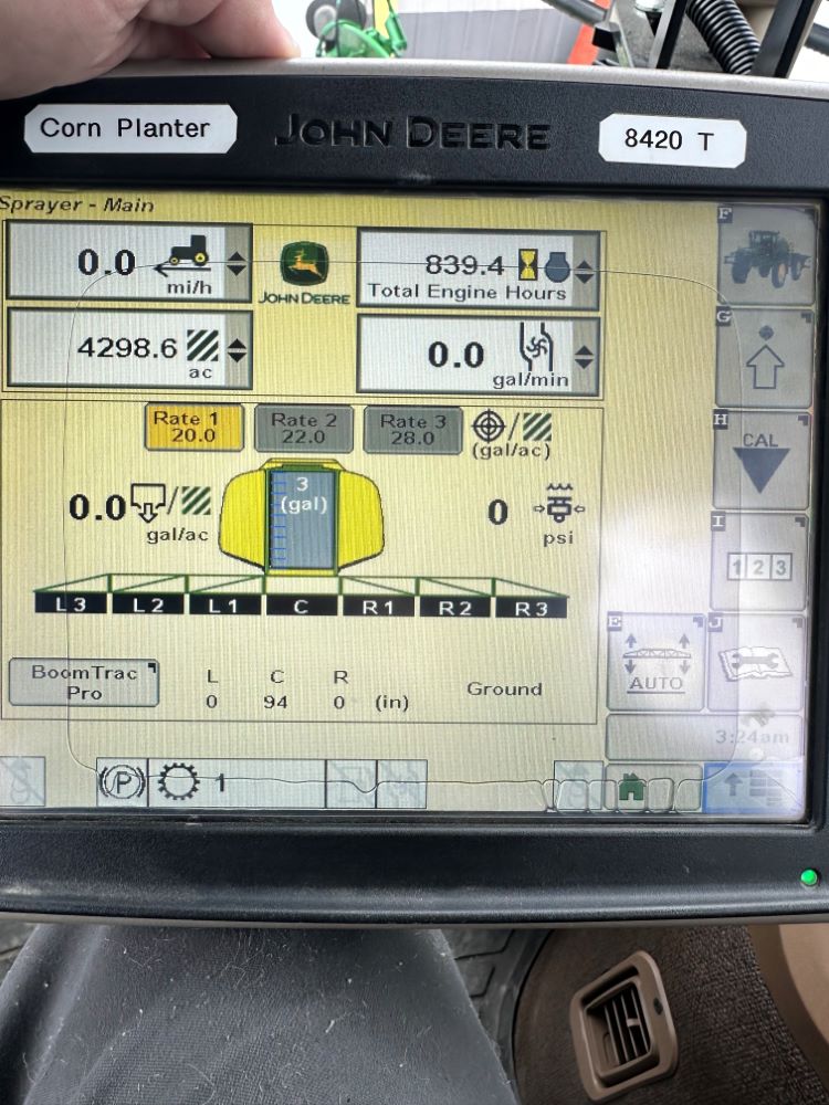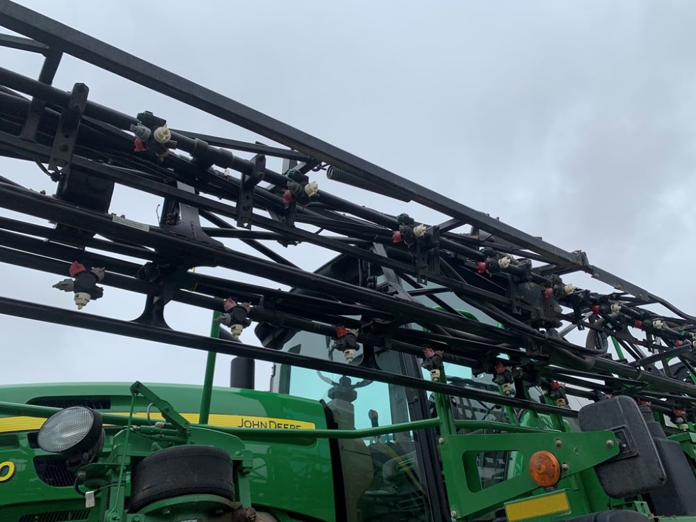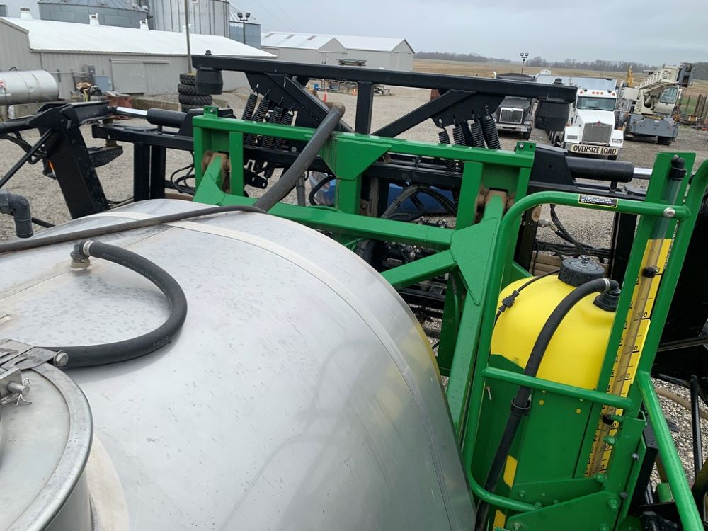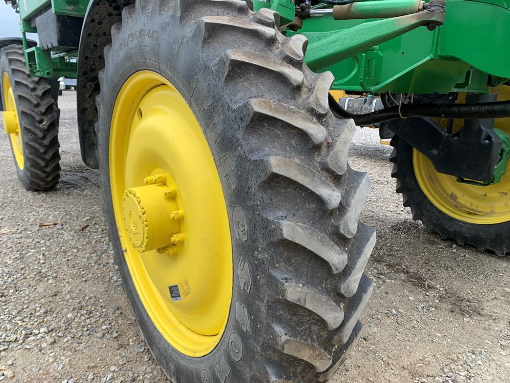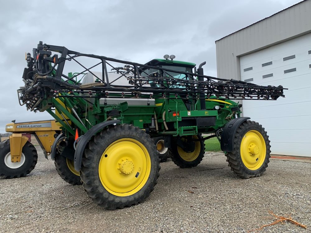 2008 John Deere 4730 Sprayer (CP3533), John Deere diesel engine (PE6068L026202), hydrostatic transmission, heat, air conditioning, Am/Fm radio, buddy seat, 800 gallon stainless steel liquid system, 100' boom, 5-way nozzle bodies, stainless steel chemical inductor, Firestone 380/90R46 row crop tires, fenders, 839 ACTUAL HOURS.