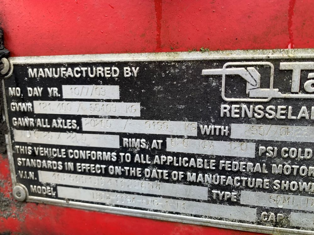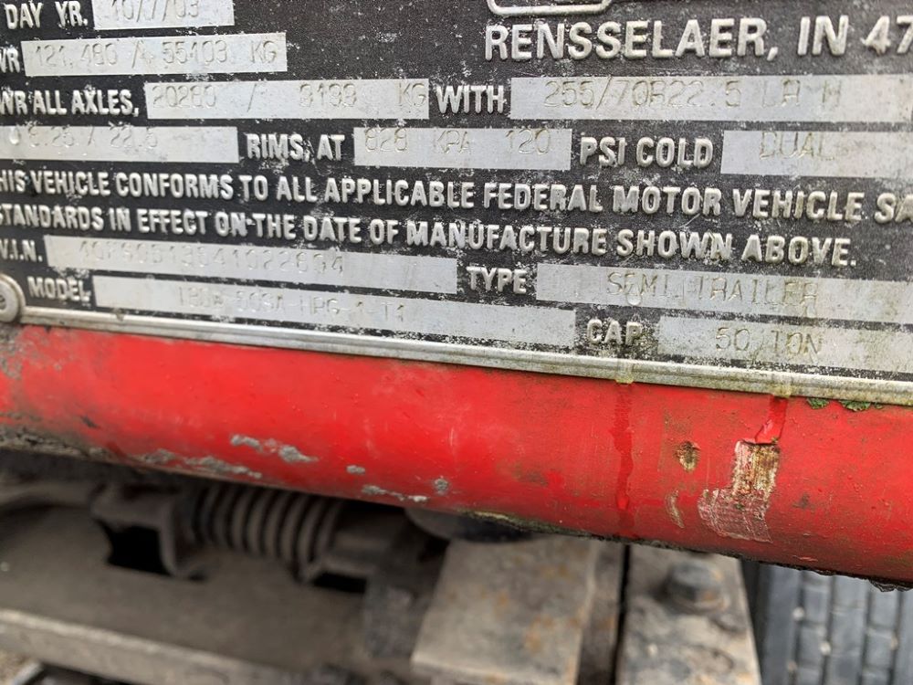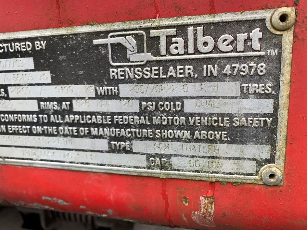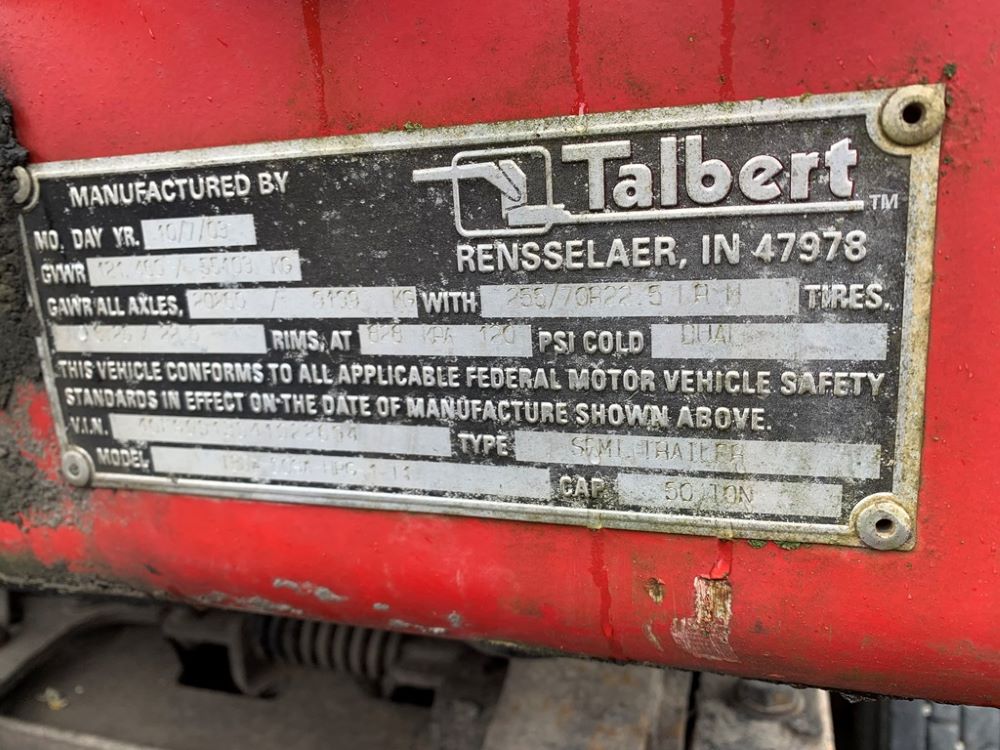 2004 Talbert Lowboy Trailer (CP3536), Talbert Model TBDW-50SA-HRG-1-T1 lowboy trailer, 50 ton capacity, triple axle, air ride suspension, hydraulic detach, approx. 24' well, approx. 12' neck, ground bearing, 255/70R22.5 tires, GVWR 55,103 KG.