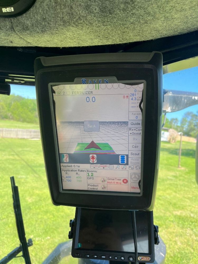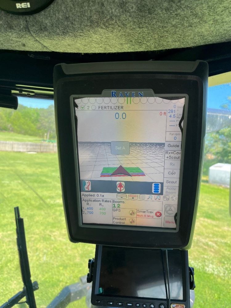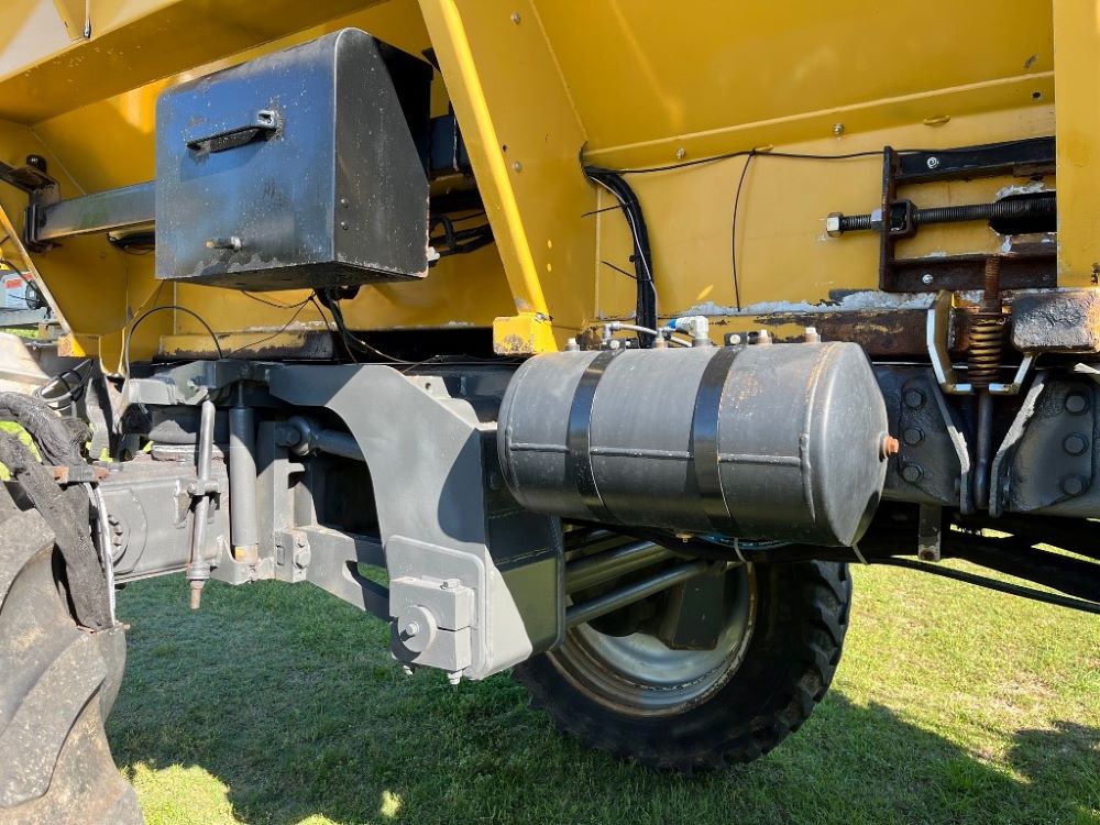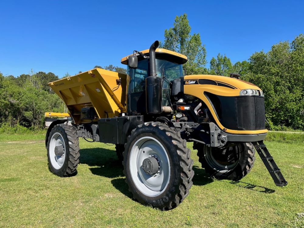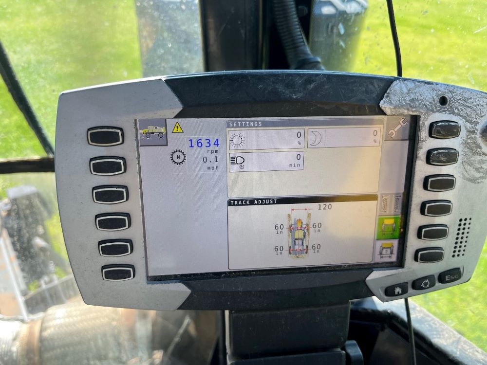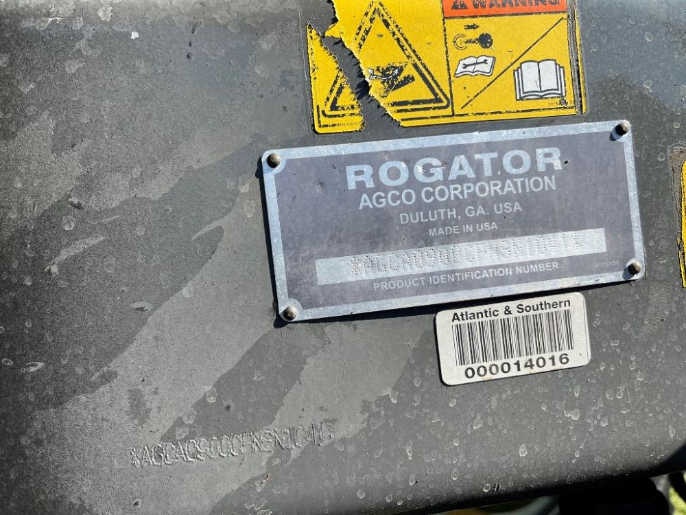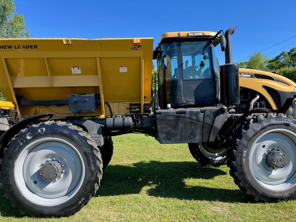 2015 RoGator 900B Dry Machine (PZ12139), AGCO diesel engine, hydrostatic transmission, air condtioning (cold climate package), heat, Am/Fm radio, air ride cab, leather seat, New Leader L4258 G4 stainless steel dry spreader box, twin spinners, all hydraulic, auto steer, automatic track adjust, Firestone & Alliance 380/90R46 tires, Overview cab camera, slingshot field hub, Raven Viper Pro monitor, shows 6,116 hours.