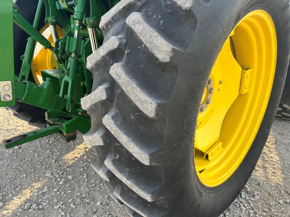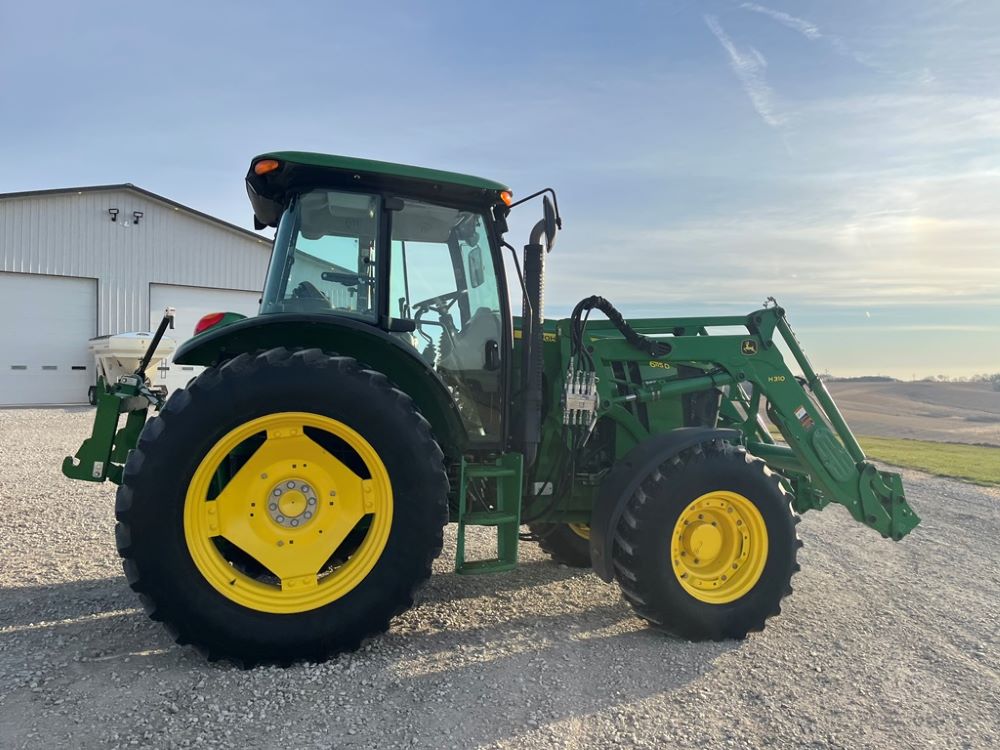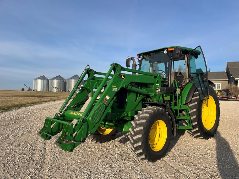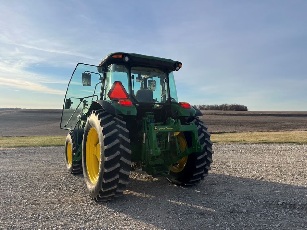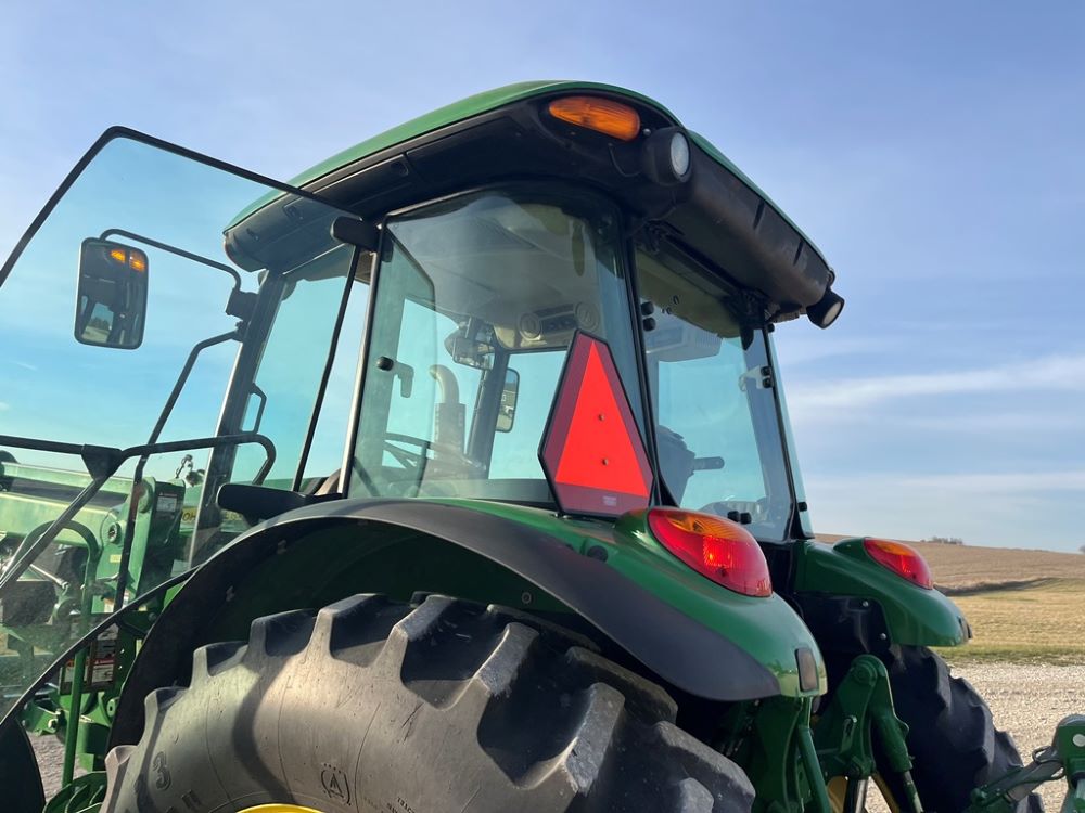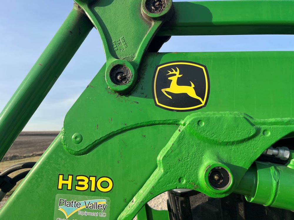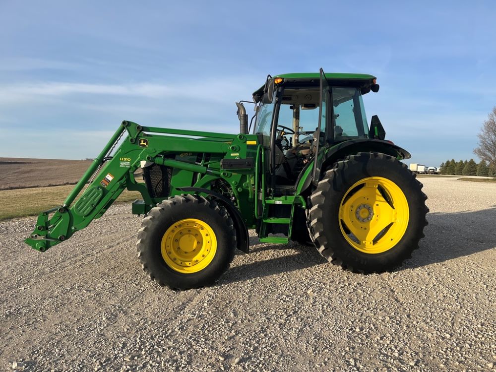 2013 John Deere 6115D Tractor (DR8165), MFWD, John Deere diesel engine, 3X3 transmission w/shuttle shift, John Deere H310 hydraulic front end loader, single point hookup, Joystick controls, triple hydraulic outlets, 540 PTO, 3 point hitch w/quick hitch, enclosed cab w/heat and air conditioning, after market cab step, Firestone 14.9-24 front tires, and 18.4-38 rear tires, shows 3,641 hours.