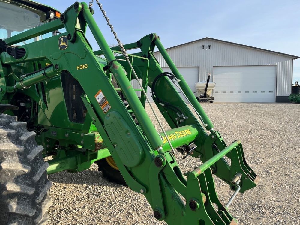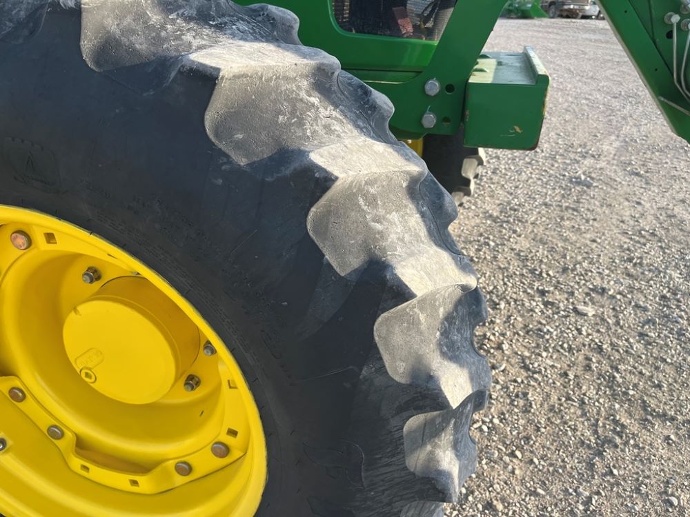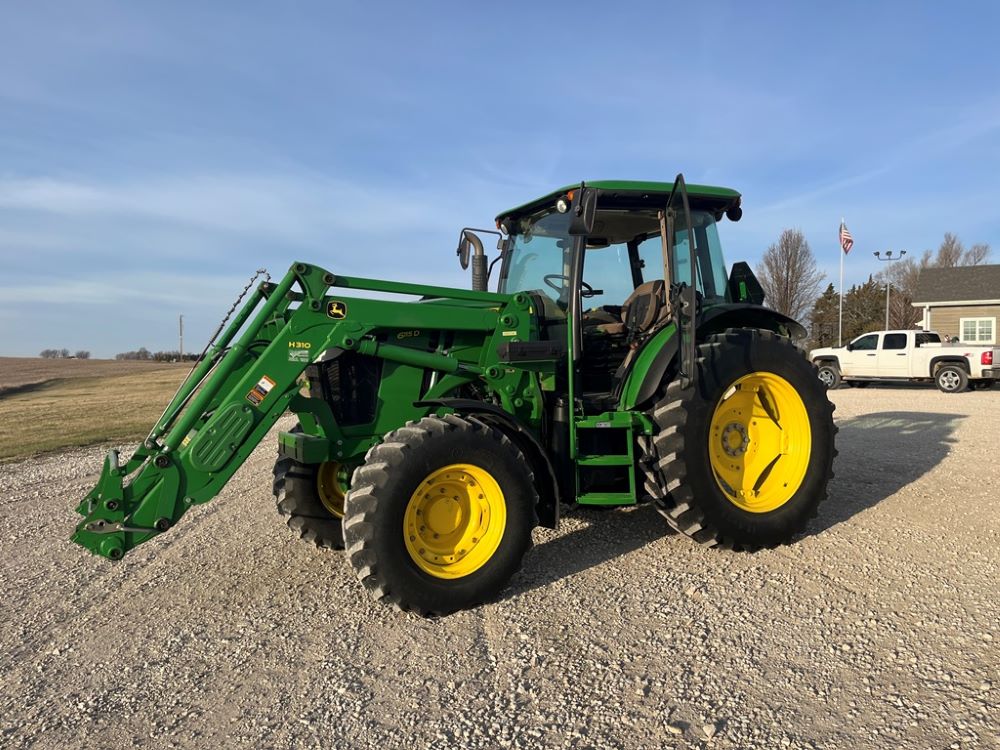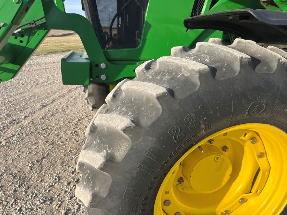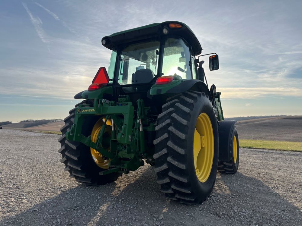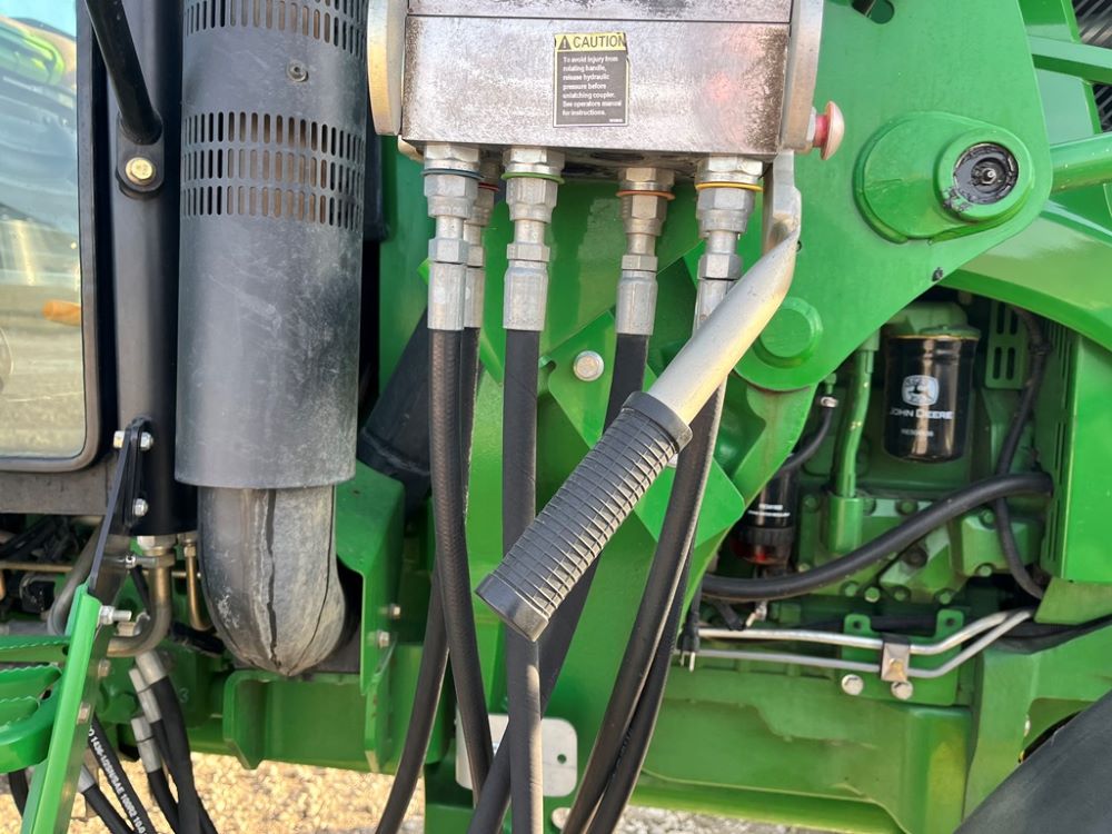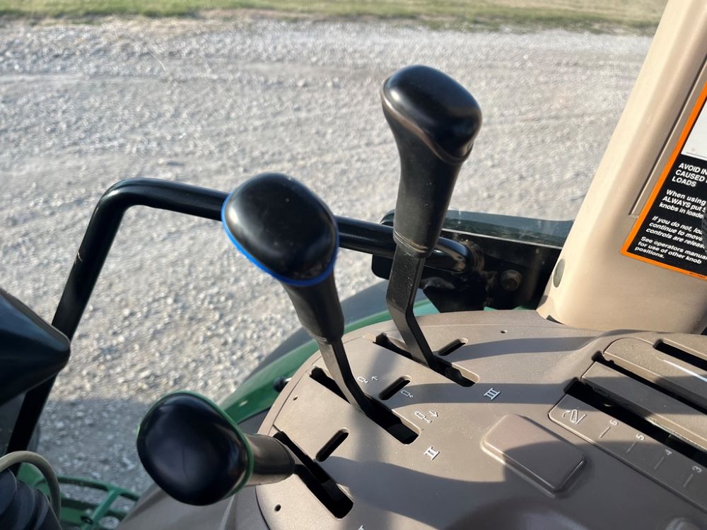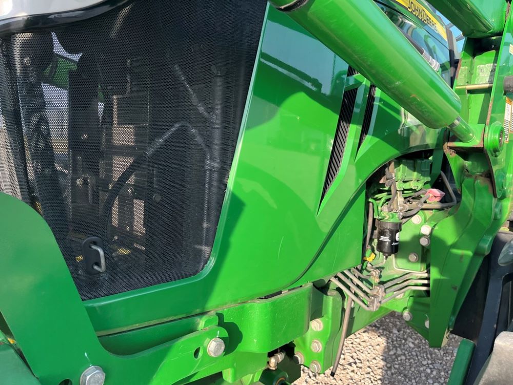 2013 John Deere 6115D Tractor (DR8165), MFWD, John Deere diesel engine, 3X3 transmission w/shuttle shift, John Deere H310 hydraulic front end loader, single point hookup, Joystick controls, triple hydraulic outlets, 540 PTO, 3 point hitch w/quick hitch, enclosed cab w/heat and air conditioning, after market cab step, Firestone 14.9-24 front tires, and 18.4-38 rear tires, shows 3,641 hours.