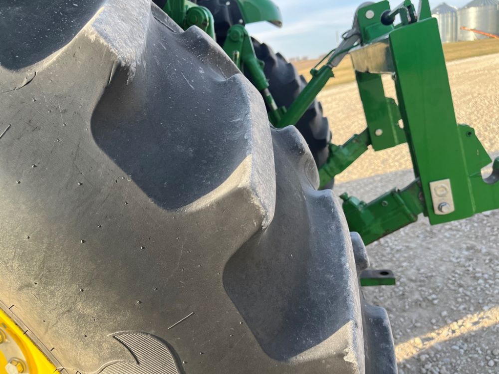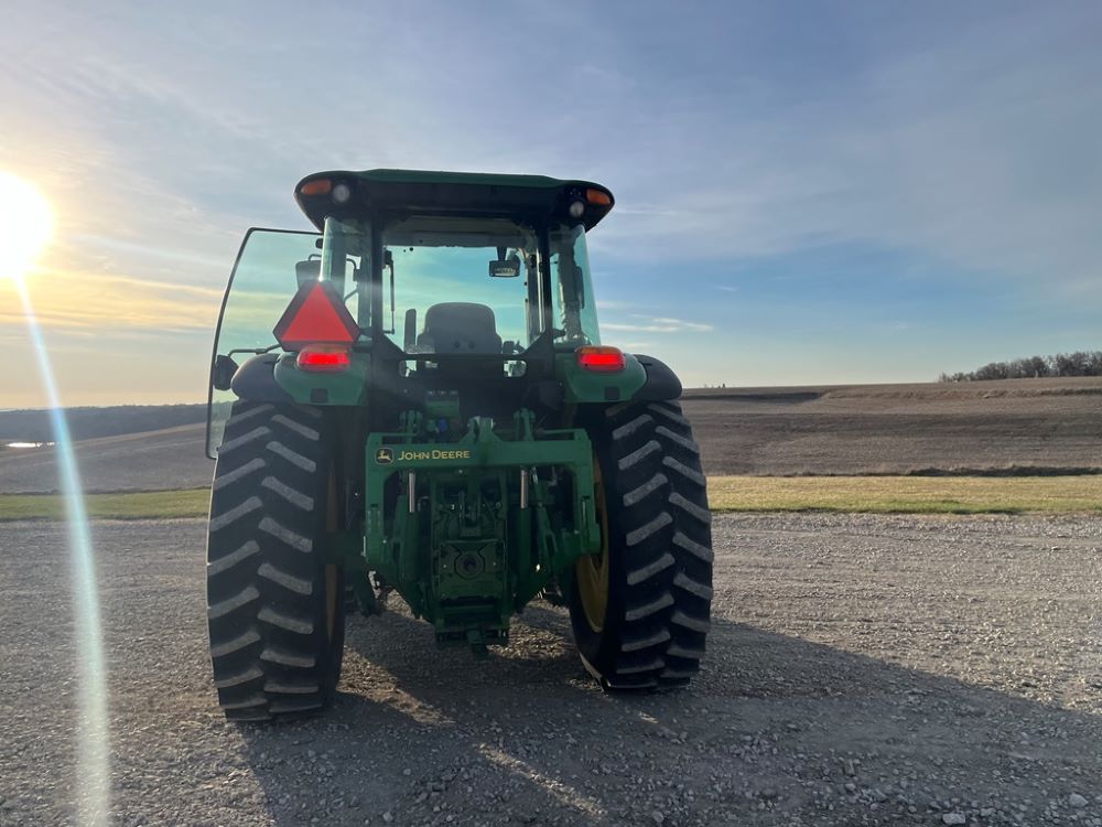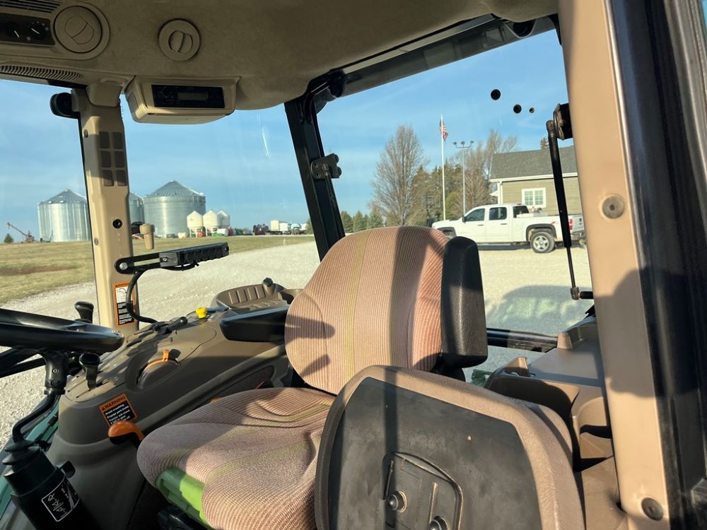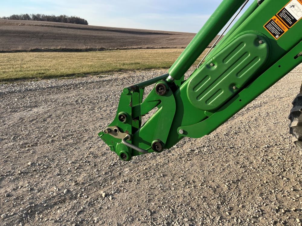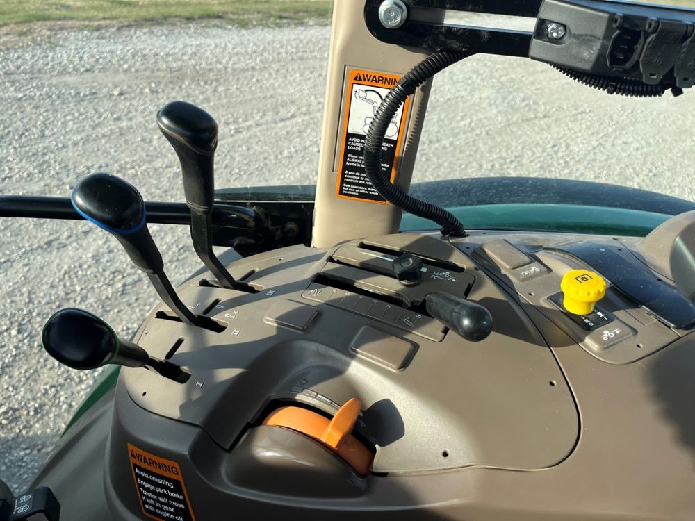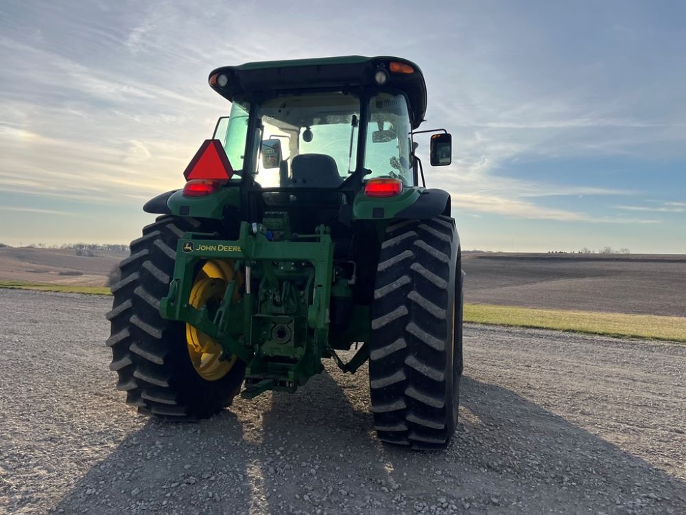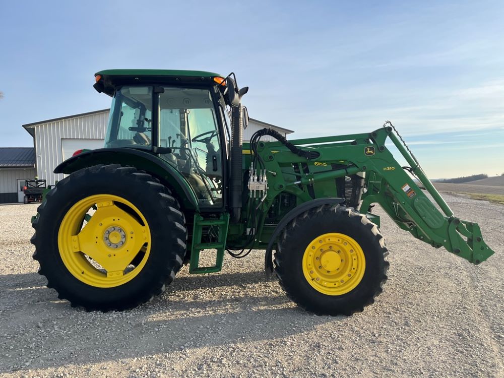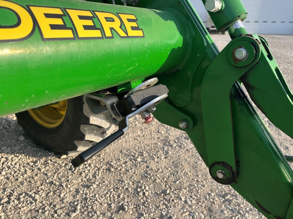 2013 John Deere 6115D Tractor (DR8165), MFWD, John Deere diesel engine, 3X3 transmission w/shuttle shift, John Deere H310 hydraulic front end loader, single point hookup, Joystick controls, triple hydraulic outlets, 540 PTO, 3 point hitch w/quick hitch, enclosed cab w/heat and air conditioning, after market cab step, Firestone 14.9-24 front tires, and 18.4-38 rear tires, shows 3,641 hours.