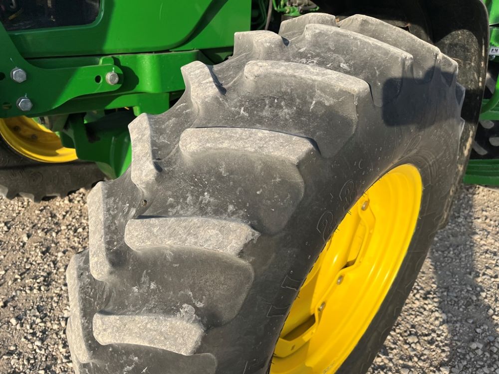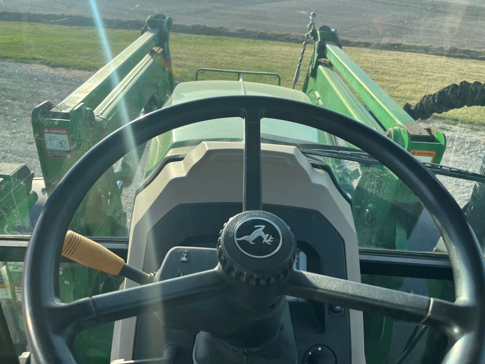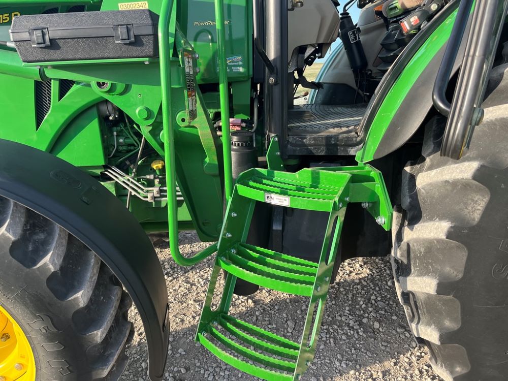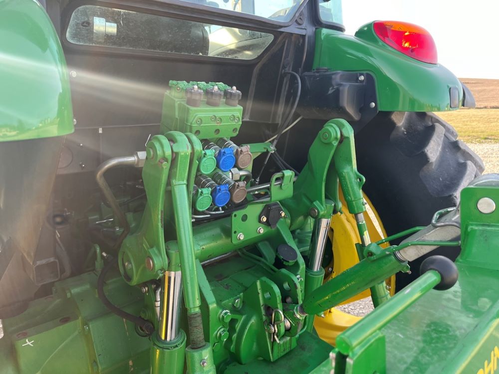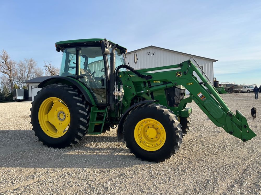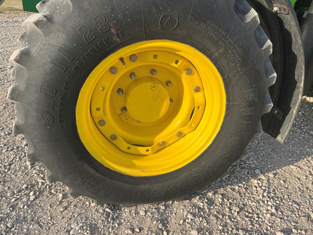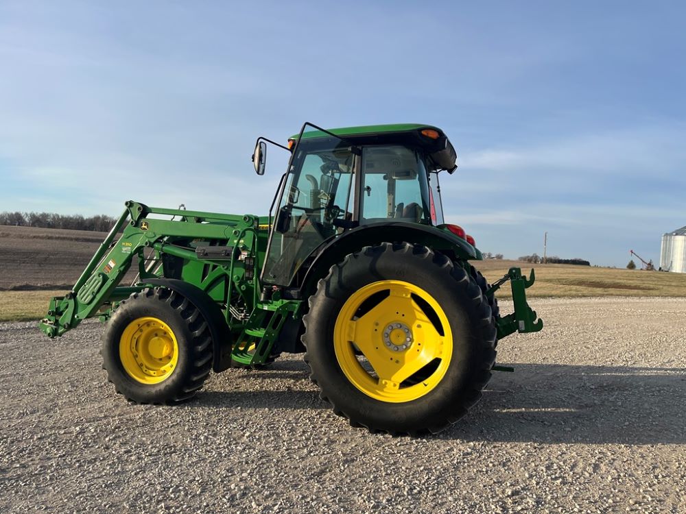 2013 John Deere 6115D Tractor (DR8165), MFWD, John Deere diesel engine, 3X3 transmission w/shuttle shift, John Deere H310 hydraulic front end loader, single point hookup, Joystick controls, triple hydraulic outlets, 540 PTO, 3 point hitch w/quick hitch, enclosed cab w/heat and air conditioning, after market cab step, Firestone 14.9-24 front tires, and 18.4-38 rear tires, shows 3,641 hours.