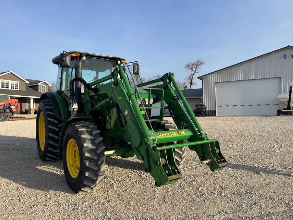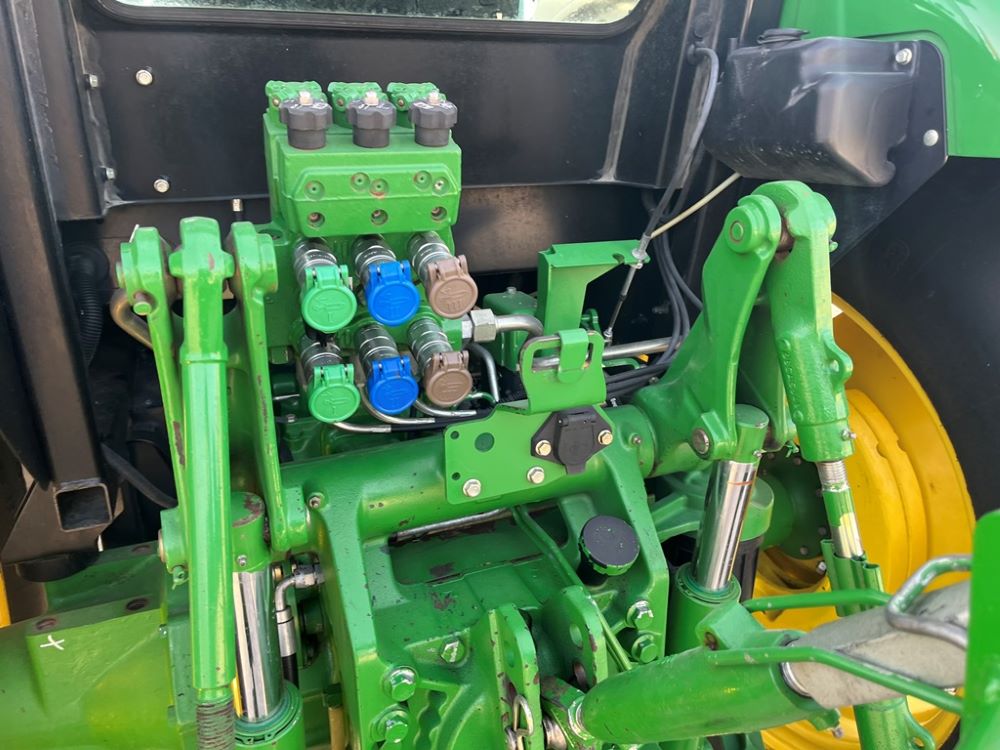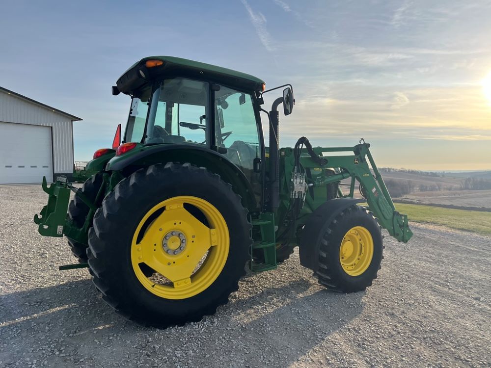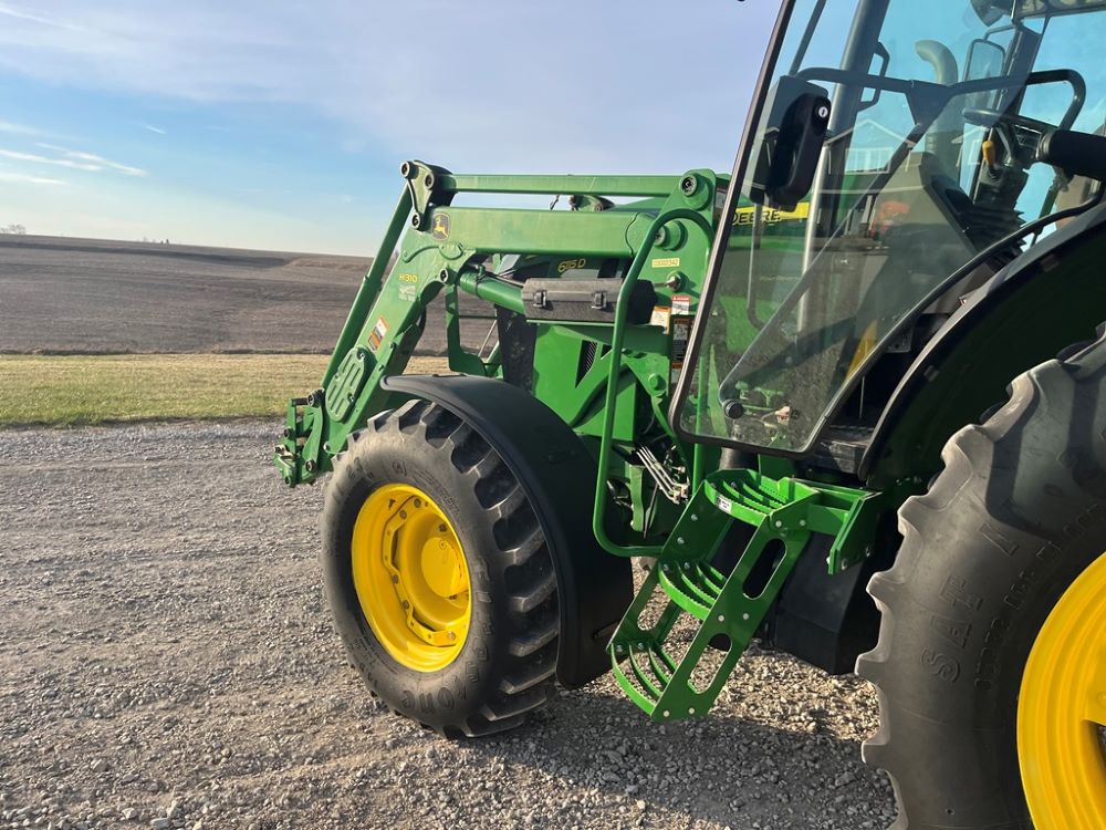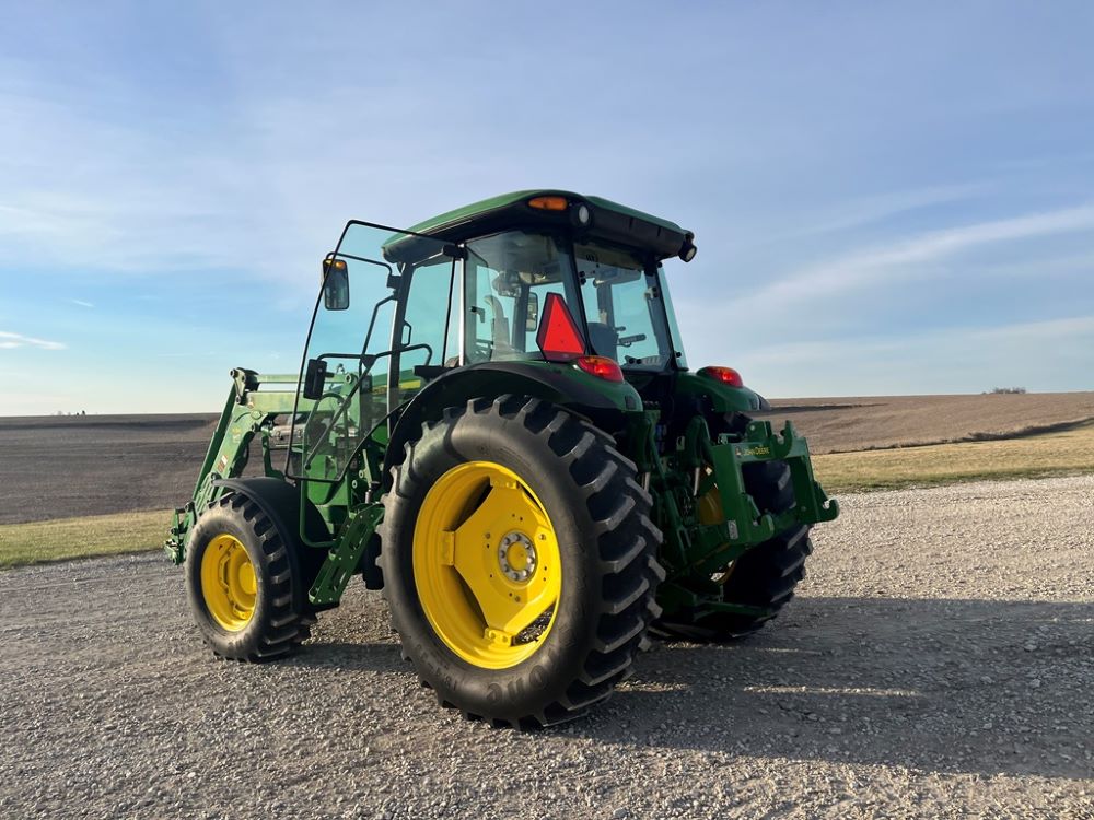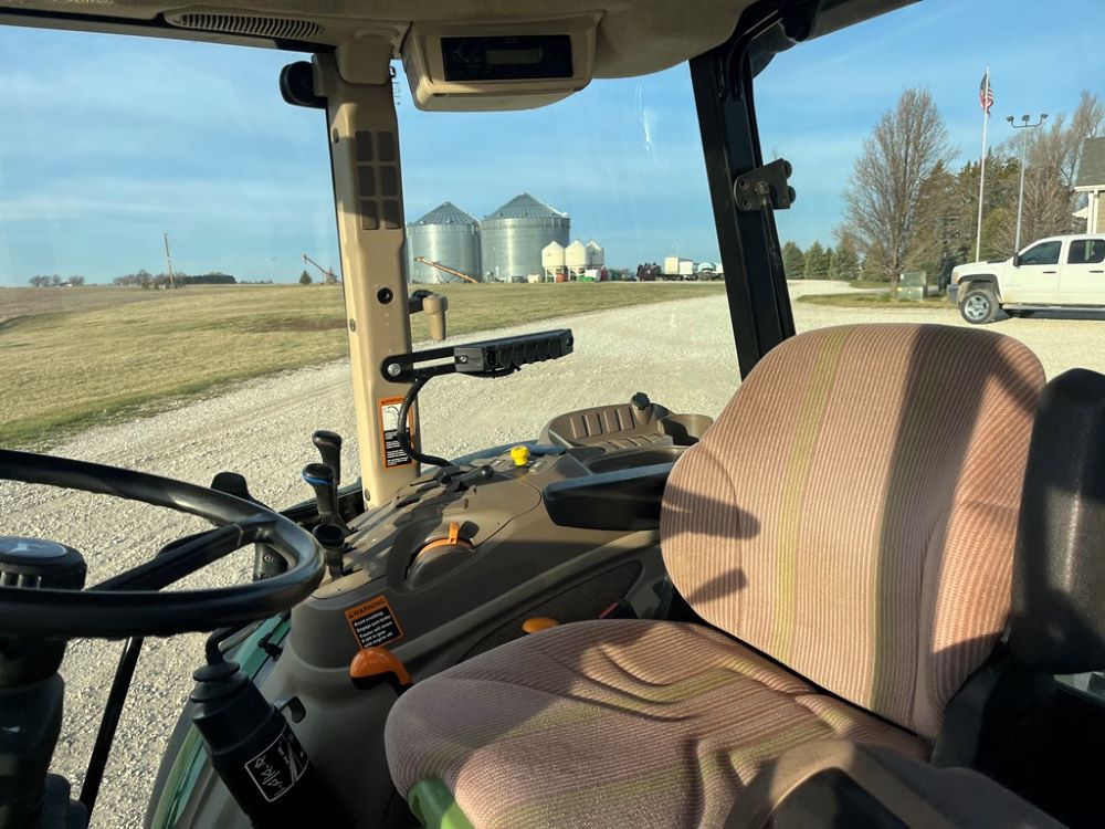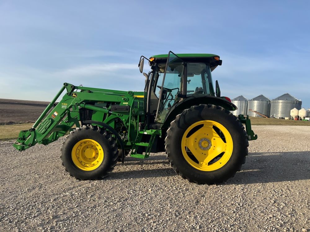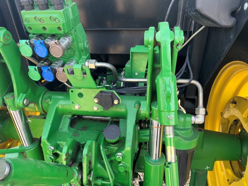 2013 John Deere 6115D Tractor (DR8165), MFWD, John Deere diesel engine, 3X3 transmission w/shuttle shift, John Deere H310 hydraulic front end loader, single point hookup, Joystick controls, triple hydraulic outlets, 540 PTO, 3 point hitch w/quick hitch, enclosed cab w/heat and air conditioning, after market cab step, Firestone 14.9-24 front tires, and 18.4-38 rear tires, shows 3,641 hours.