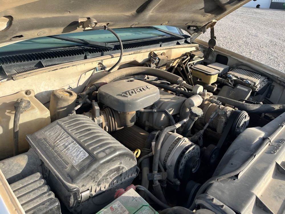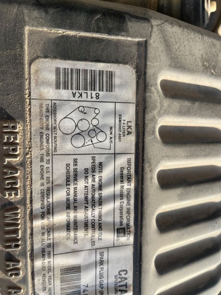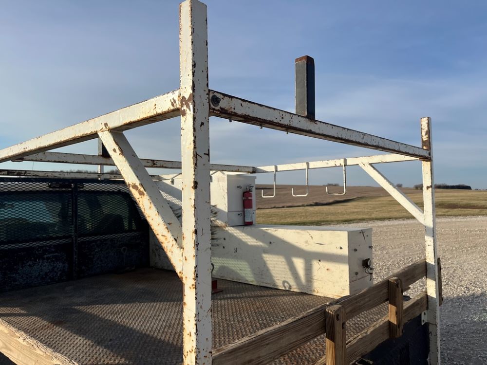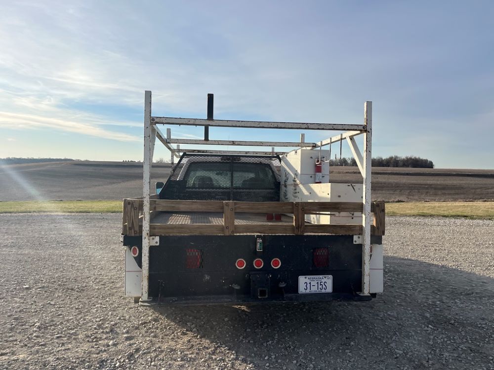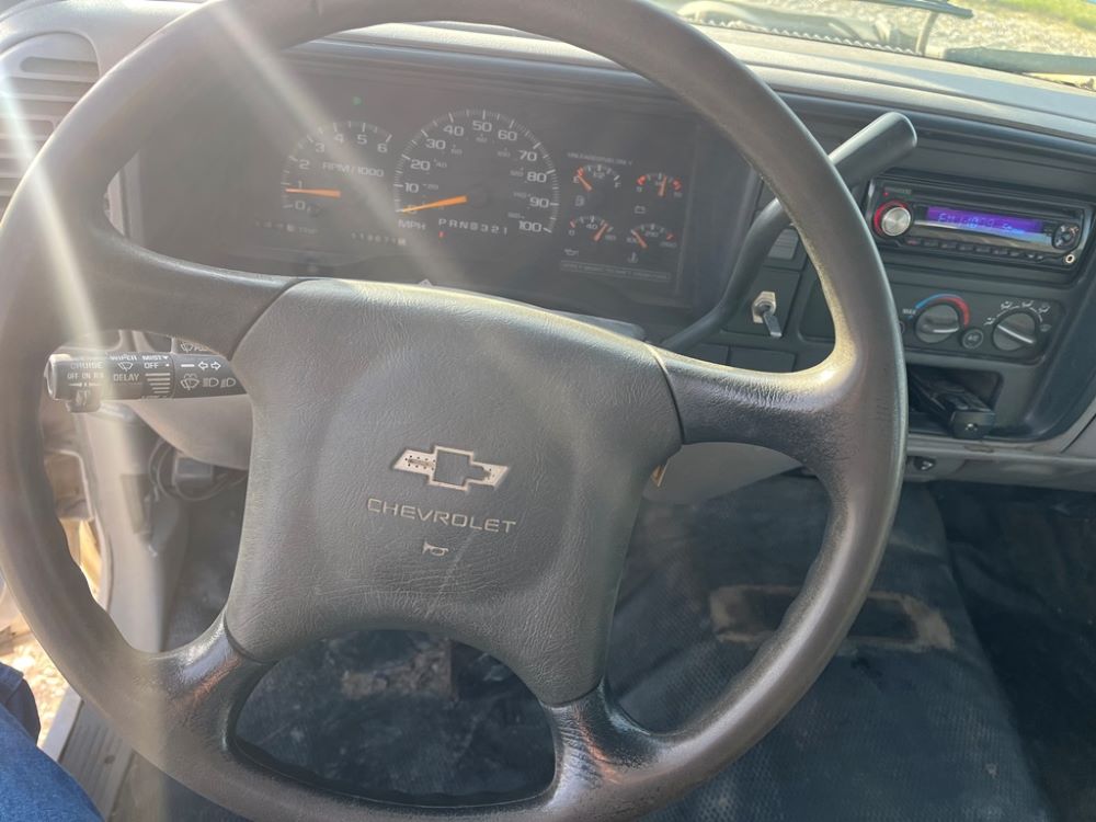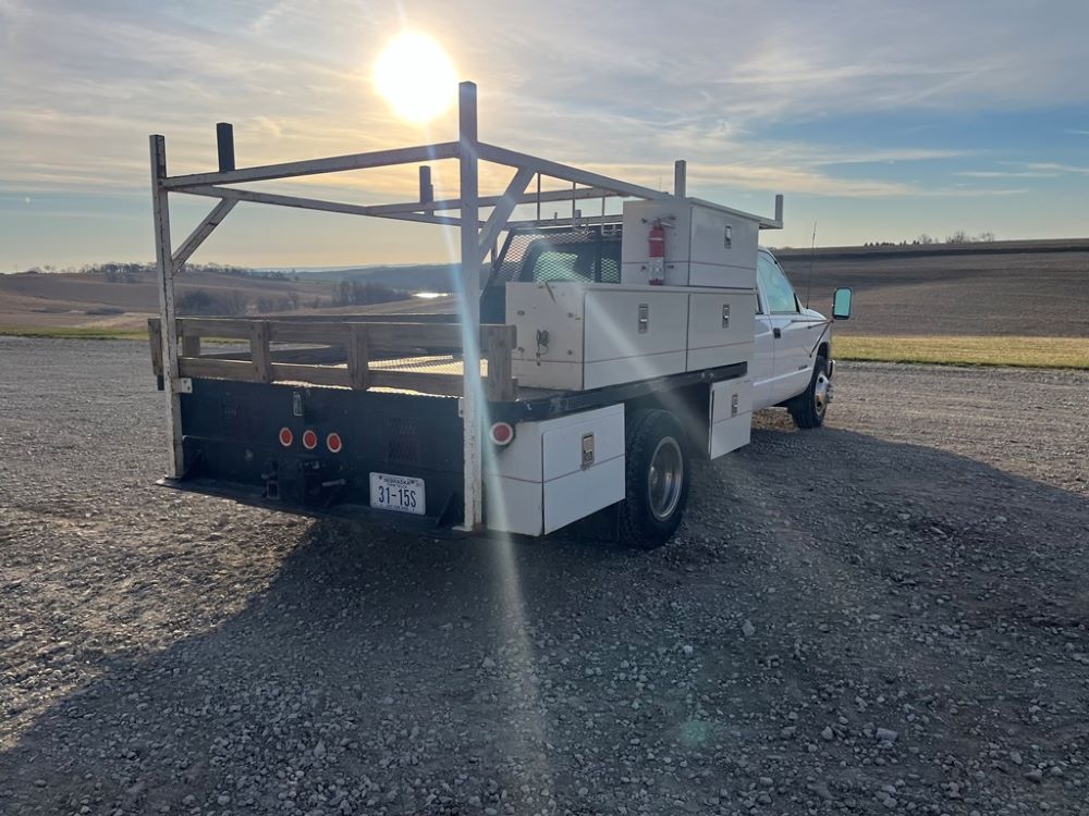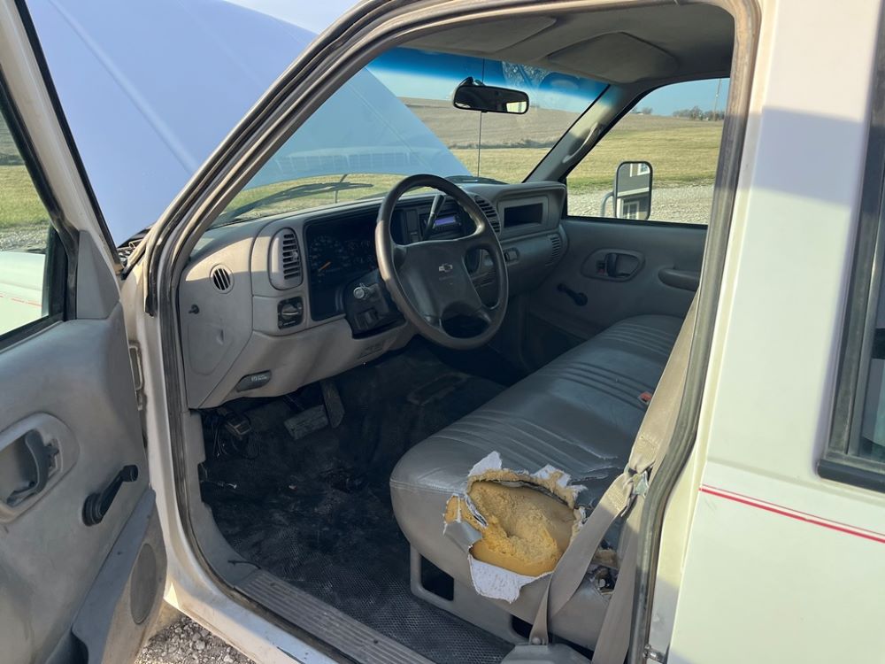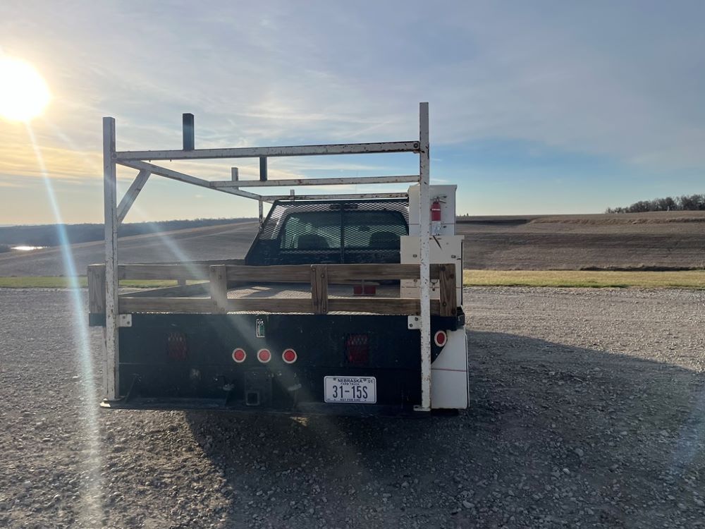1999 Chevy 3500 Service Truck (DR8166), 7.4 liter gas engine, automatic transmission, 4 door cab, 10' steel flatbed, (6) Weather Guard steel storage boxes, top ladder rack, rear receiver hitch, heat/air conditioning, AM/FM CD radio, 225/75R16 tires, odometer is not accurate.