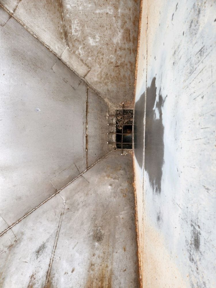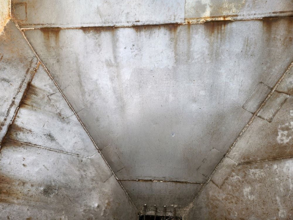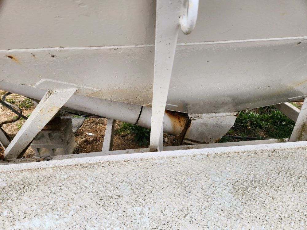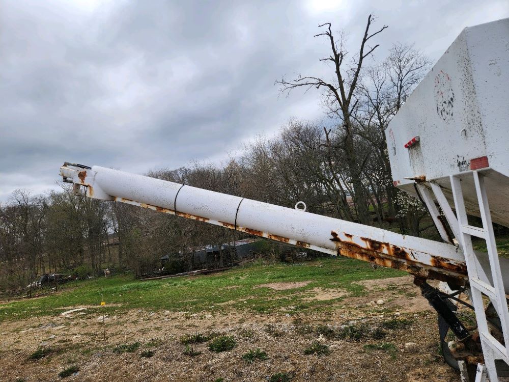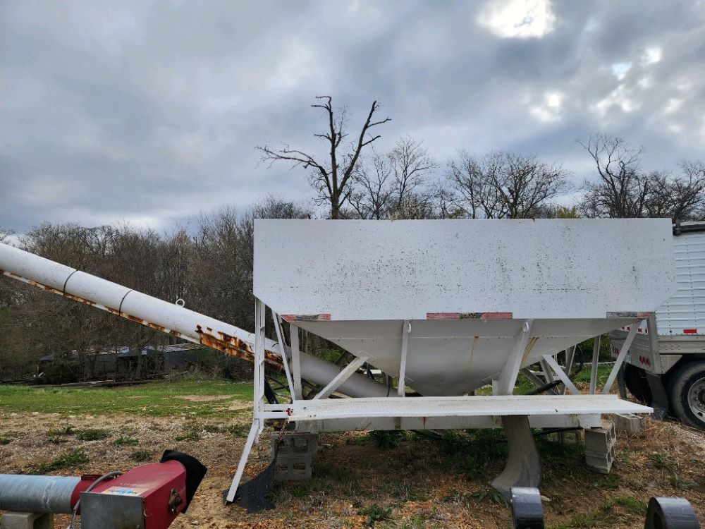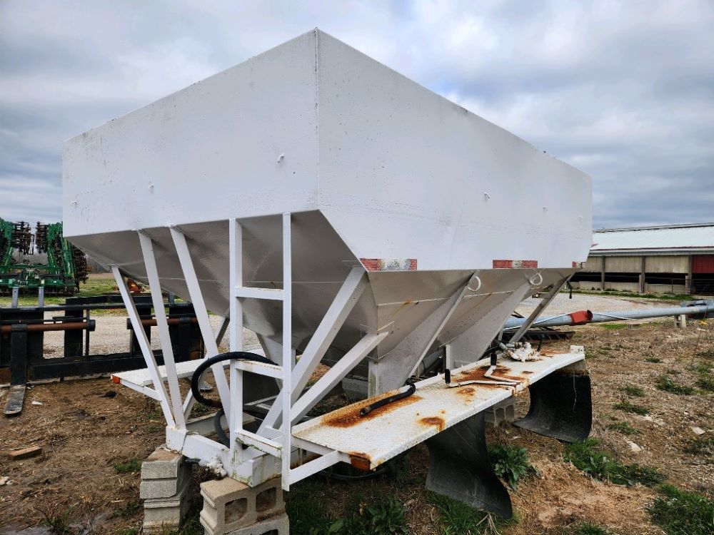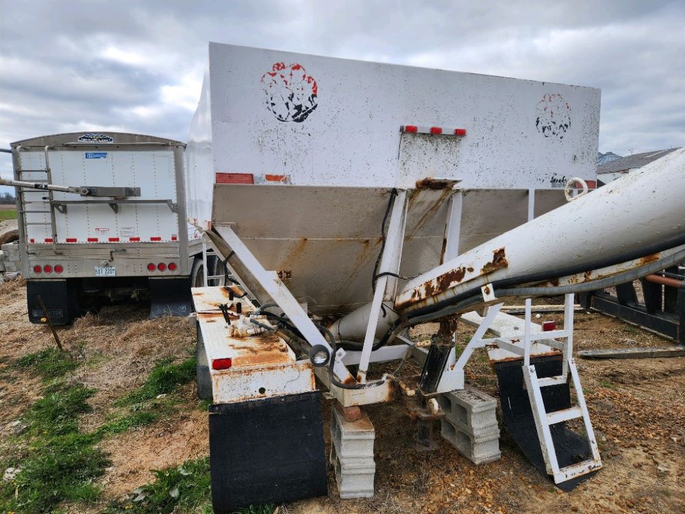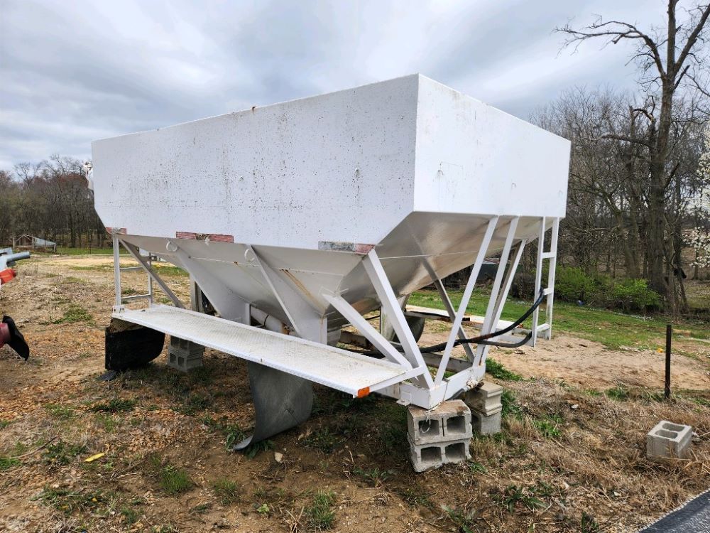 Dry Tender Box (MN731), 10 ton hydraulic stainless steel dry tender box, rear discharge auger, front/rear access ladders.