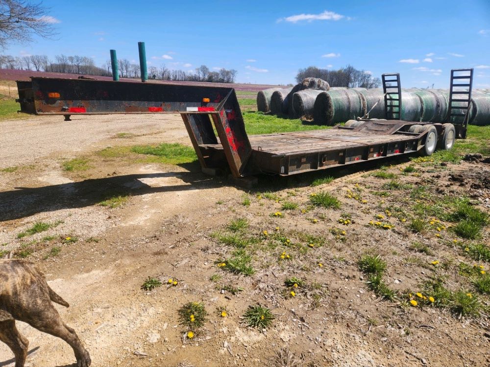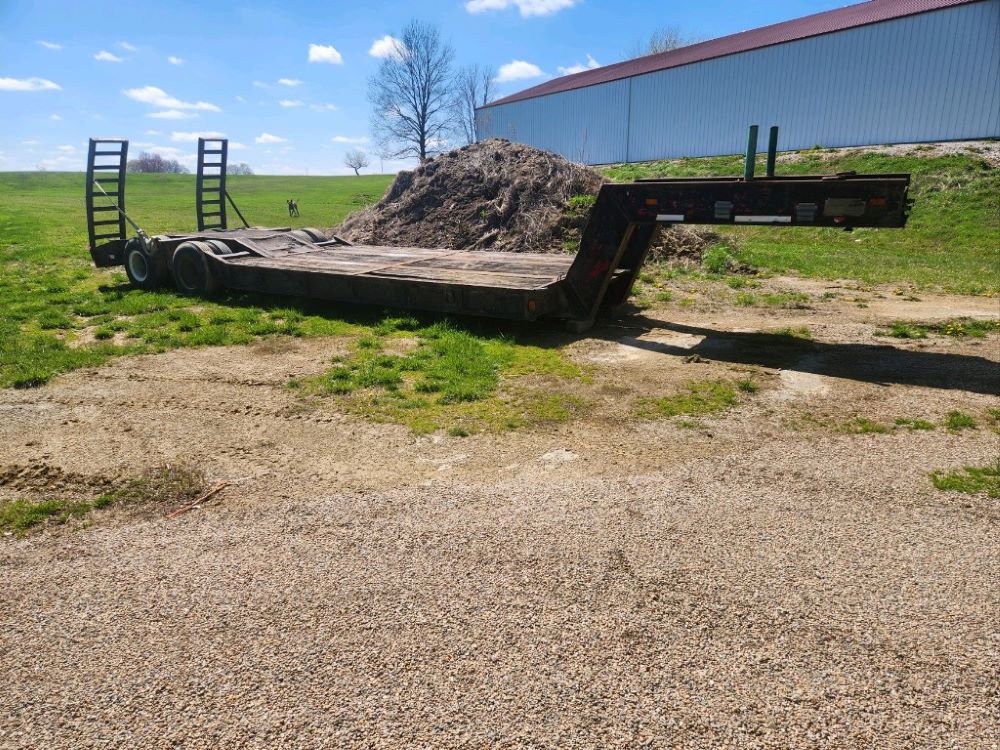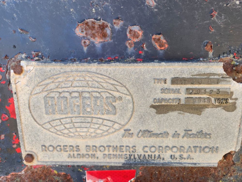 1963 Rogers Lowboy Trailer (MN732), model TVT30D1, 35 ton, fixed neck, tandem axle, walking beam suspension, 35ft overall length, 25ft 6in neck to rear end of trailer length, 16ft well, steel frame, wood floor, (10) manual slide outriggers, side tow hooks, ramps, 8.25R15TR tires.