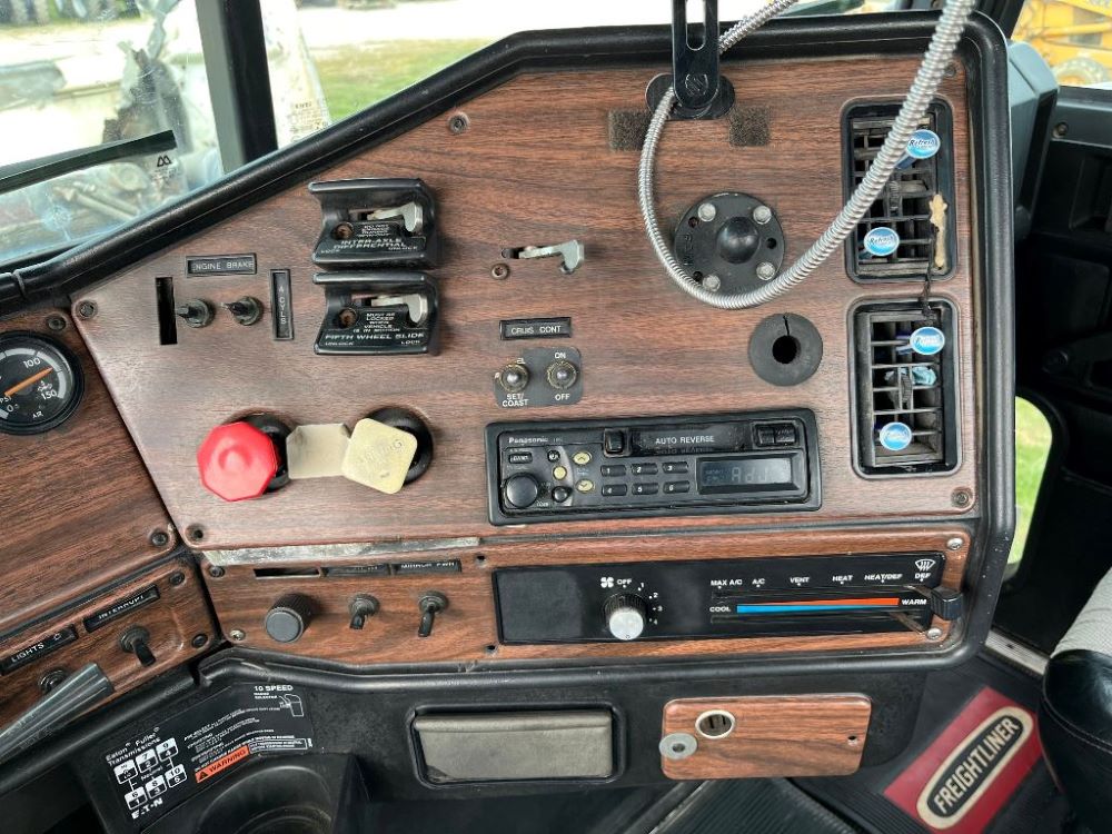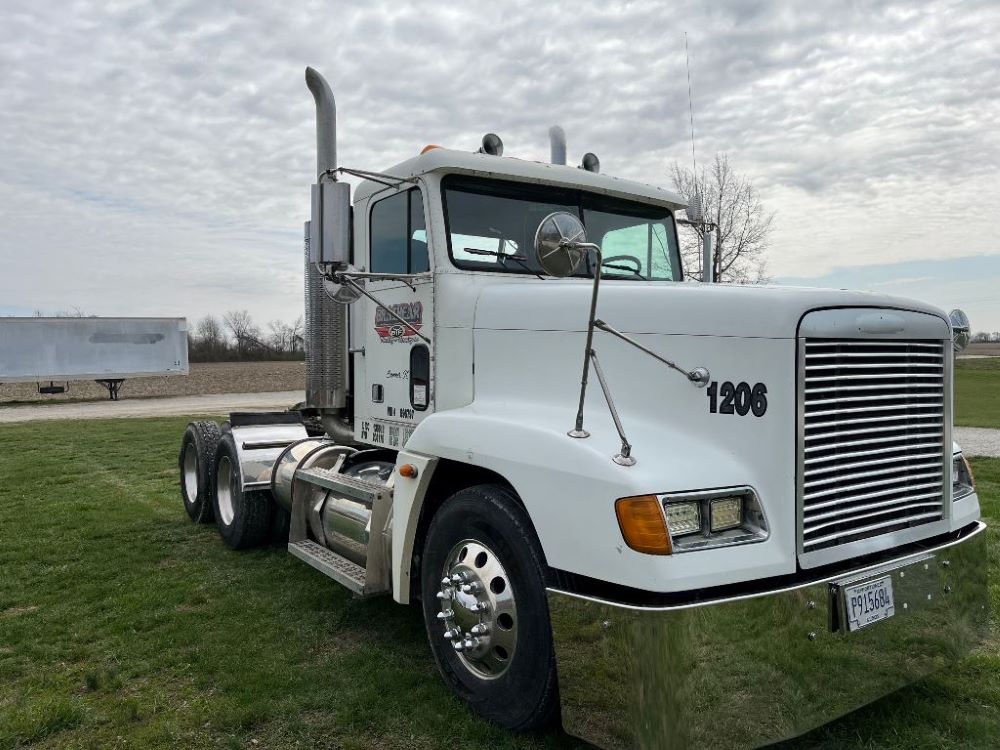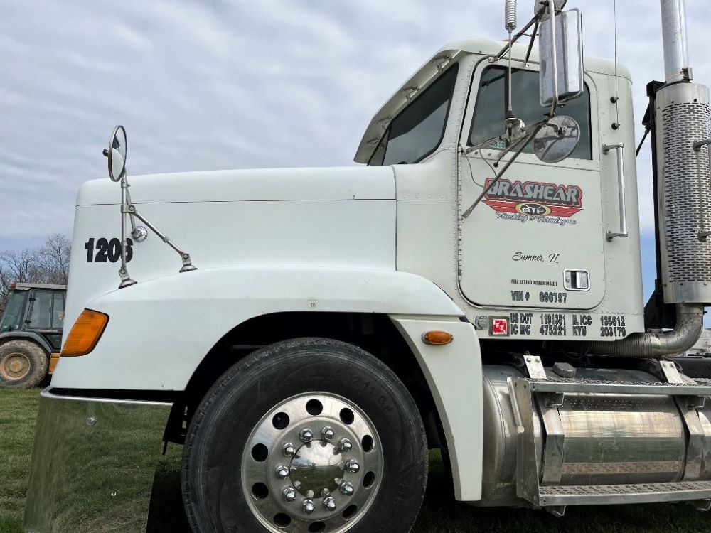2001 Freightliner FLD120 Day Cab Truck (DB0142), 12.7 Detroit engine, 10 speed Eaton Fuller transmission, heat, air, AM/FM, air ride, air brakes, 5th wheel, 2 hydraulic line wet kit, dual fuel tanks, show 77,942 miles.
