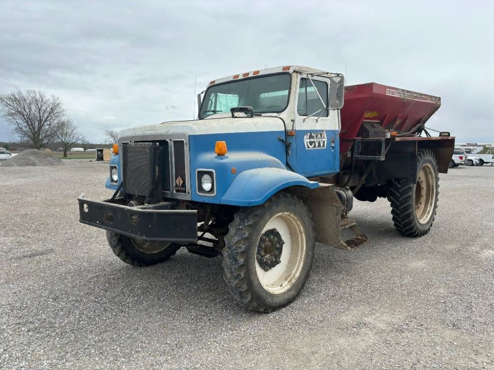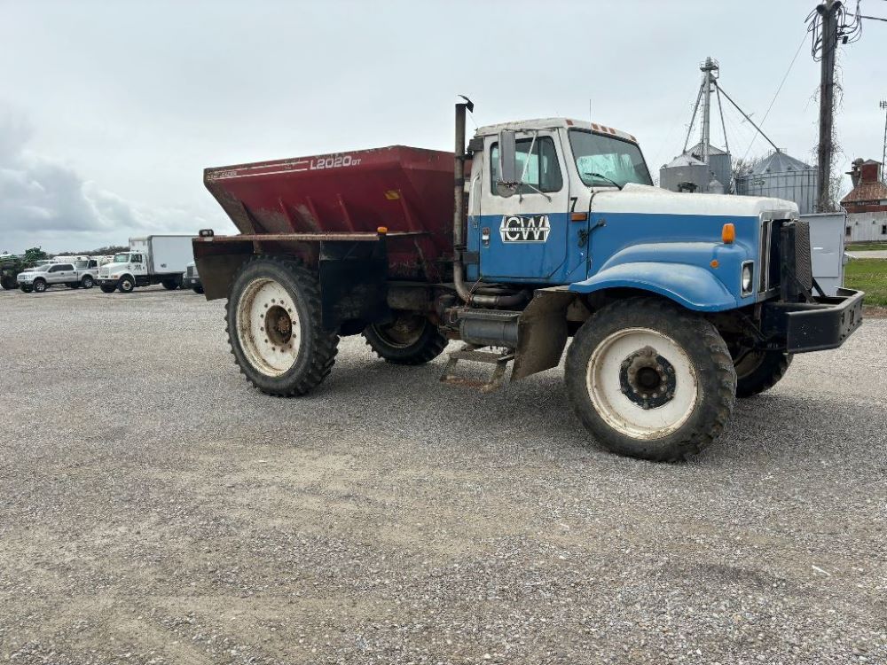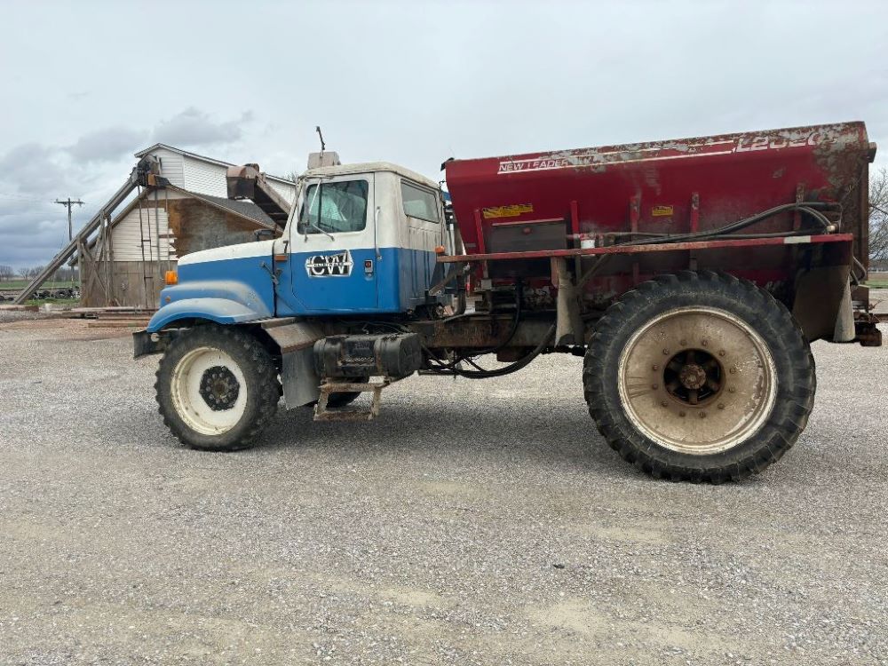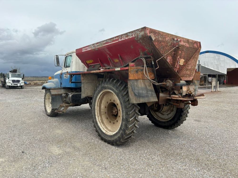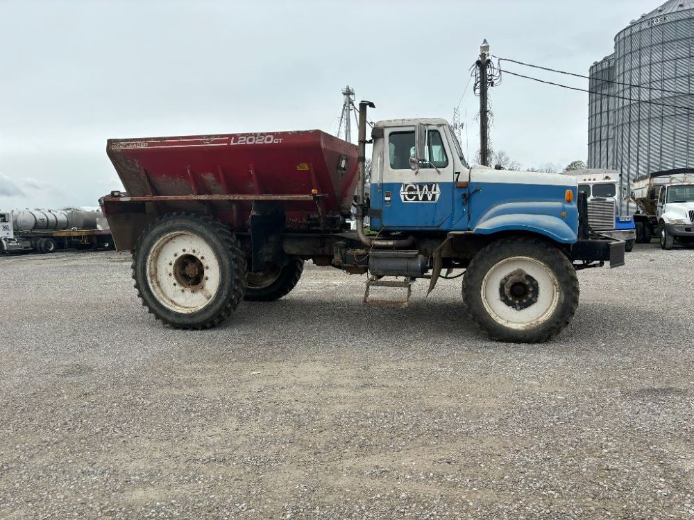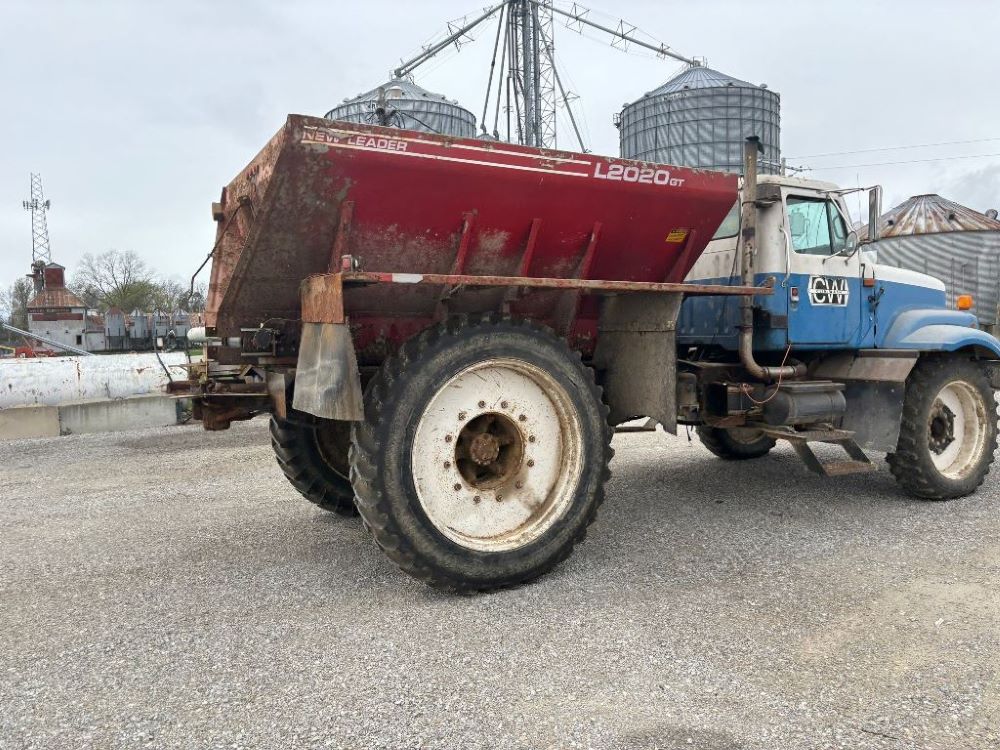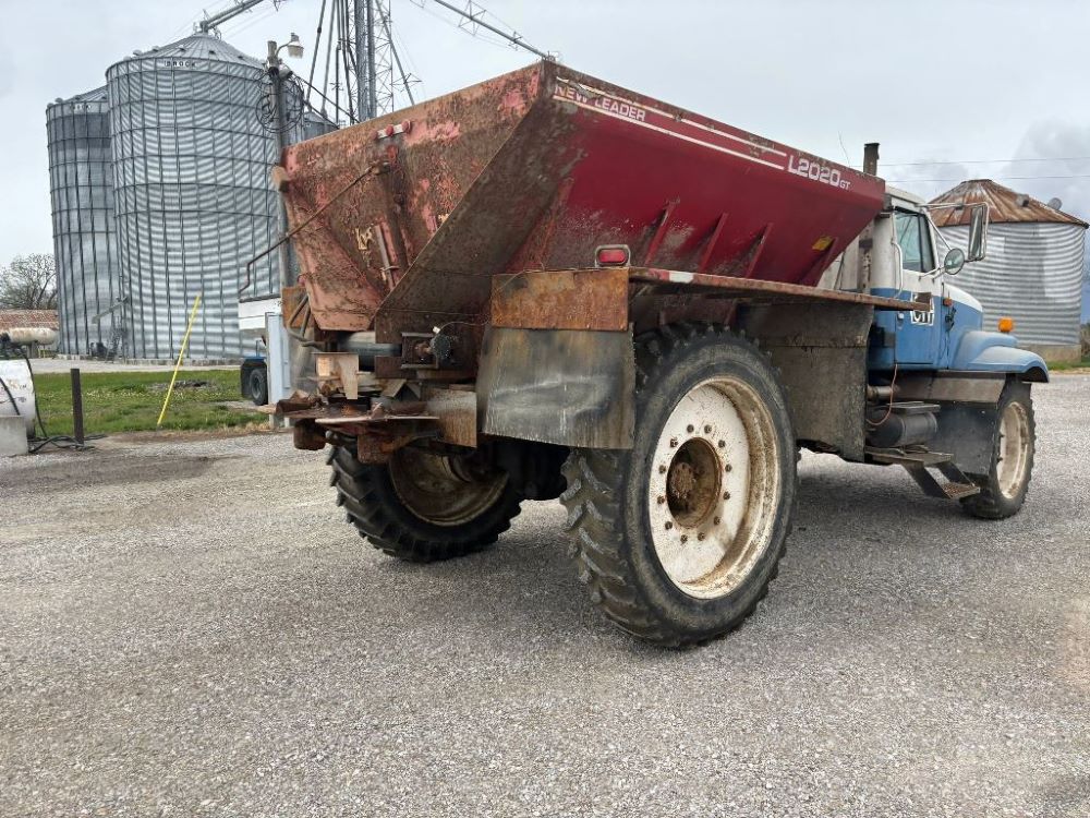1989 International Dry Spreader Truck (GP6983), 1989 International dry spreader, New Leader L2020-11 bed, SN: 100784, Raven monitor, 380/90R46 and 320/85R34 tires.