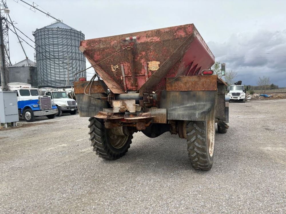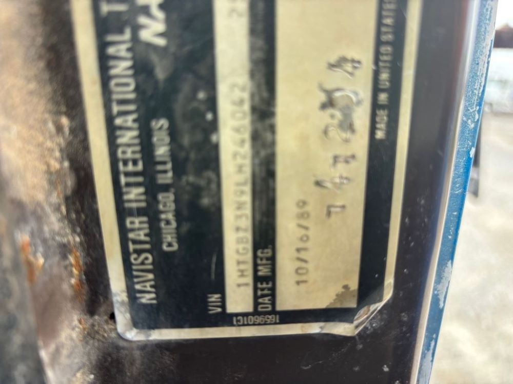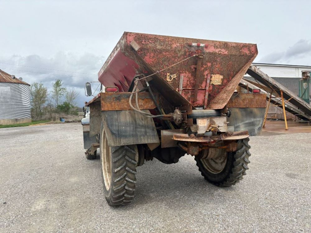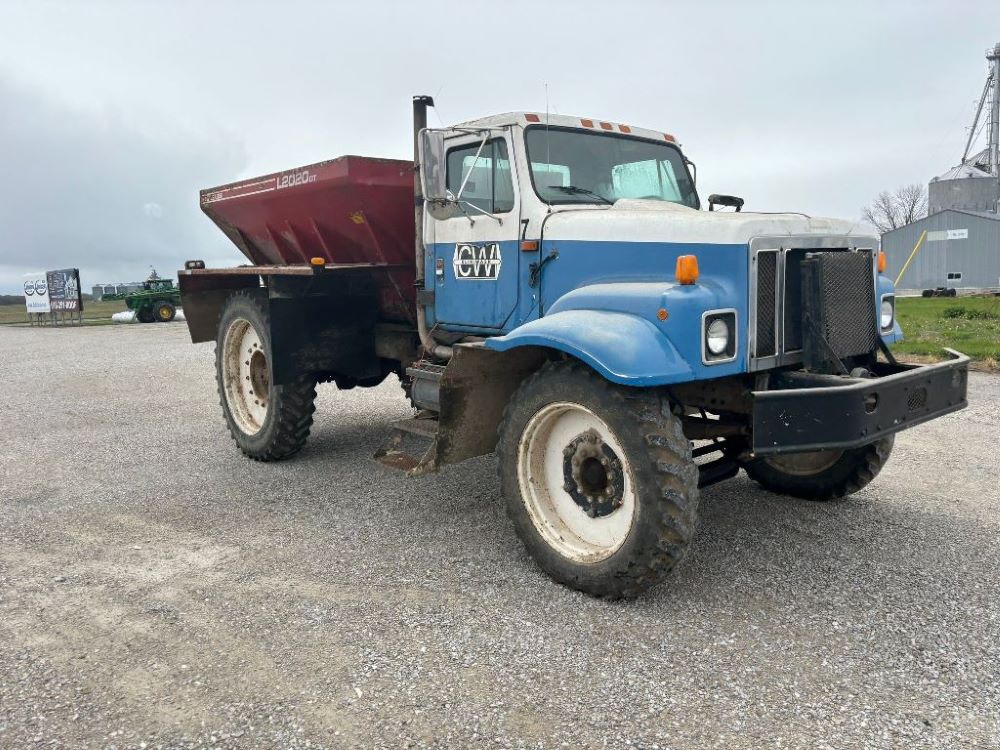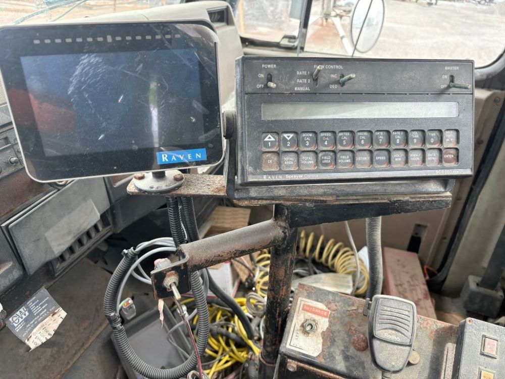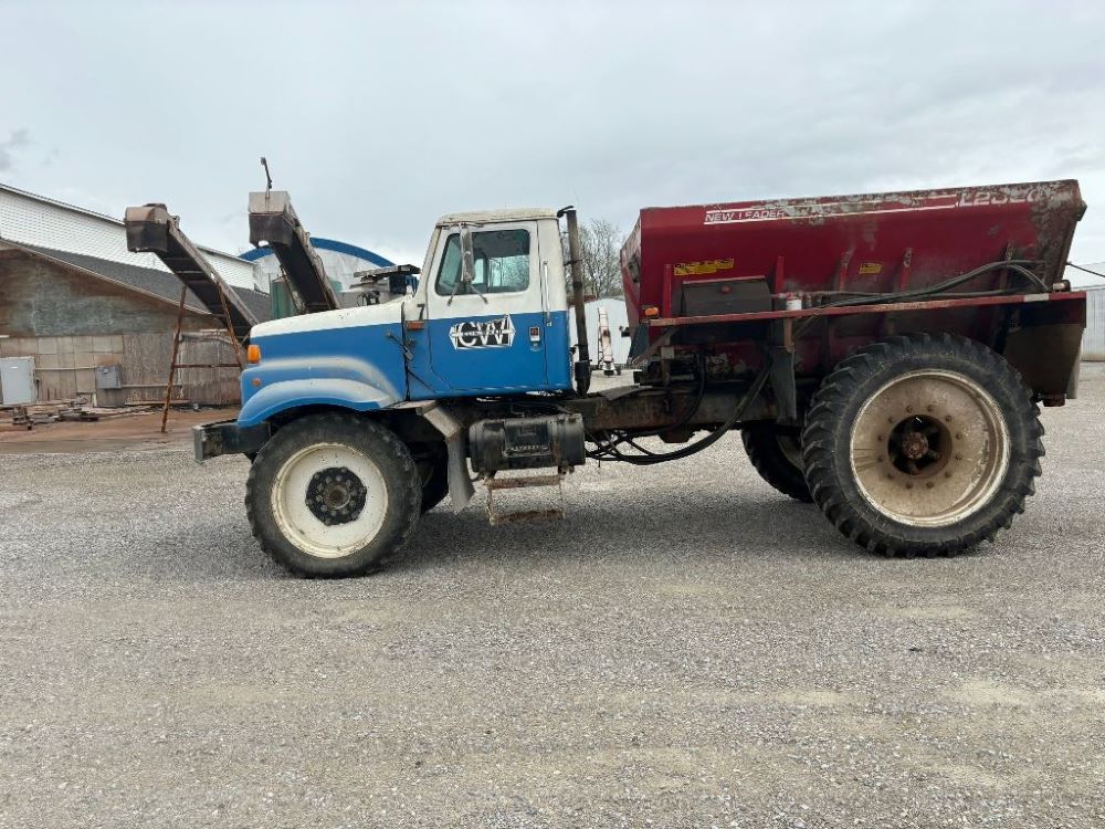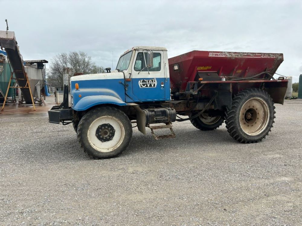 1989 International Dry Spreader Truck (GP6983), 1989 International dry spreader, New Leader L2020-11 bed, SN: 100784, Raven monitor, 380/90R46 and 320/85R34 tires.