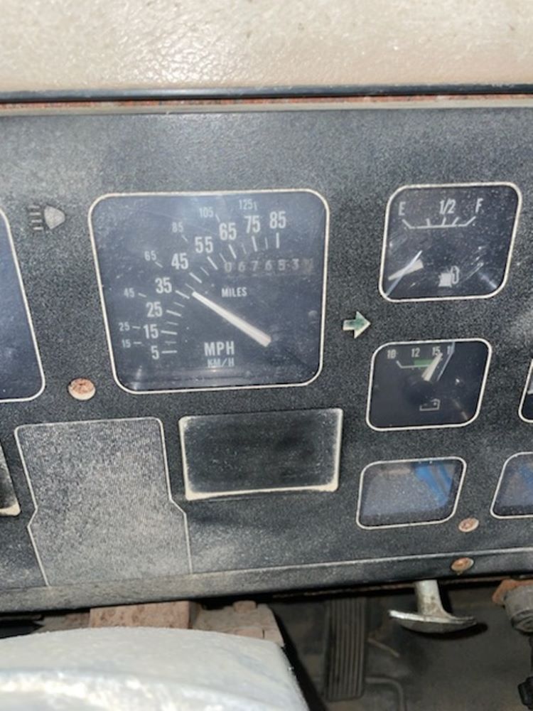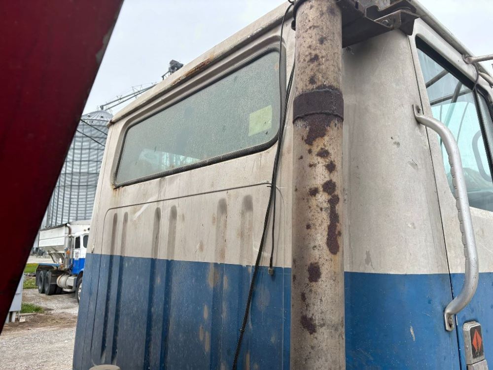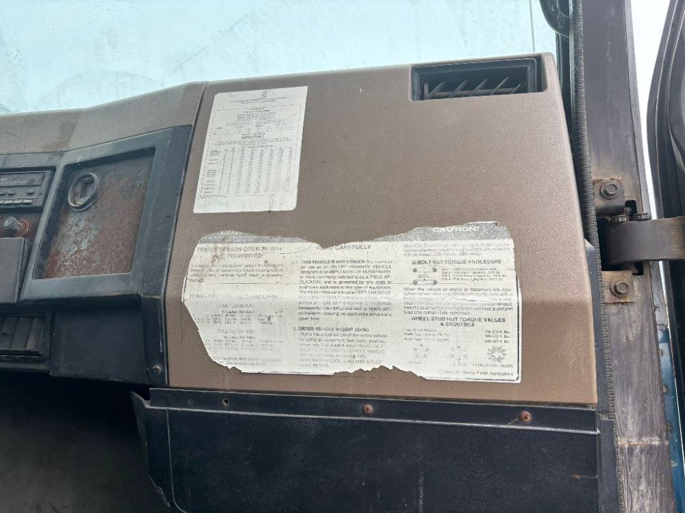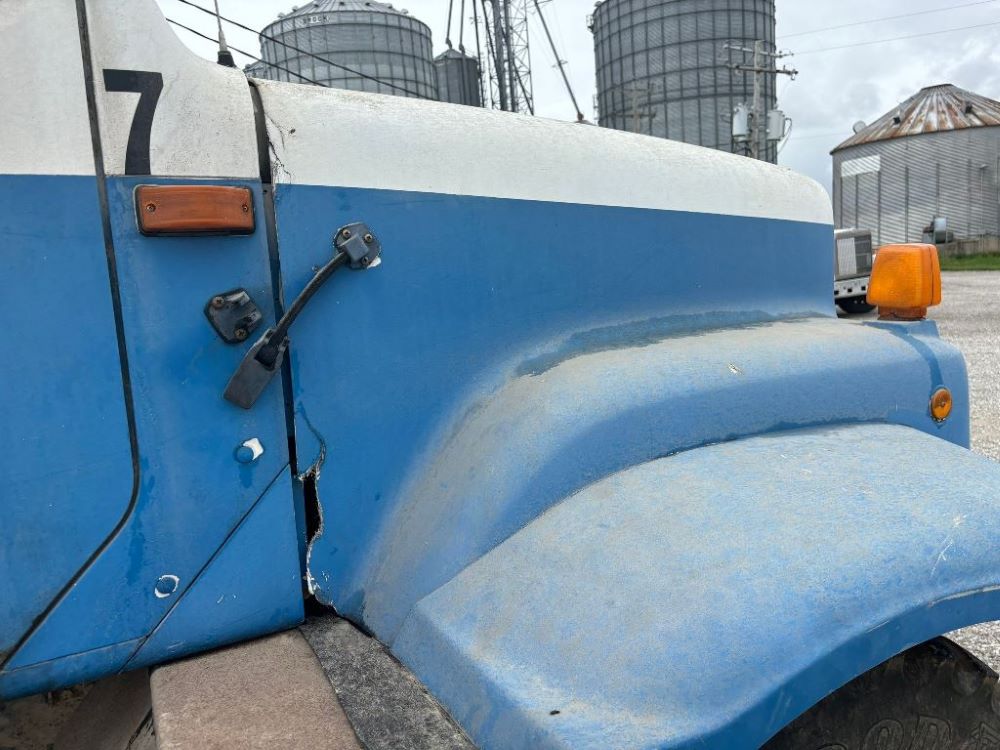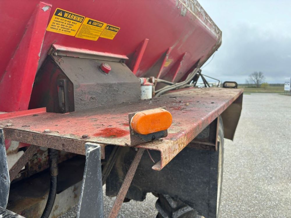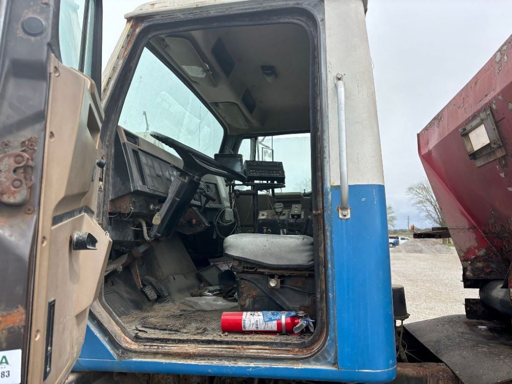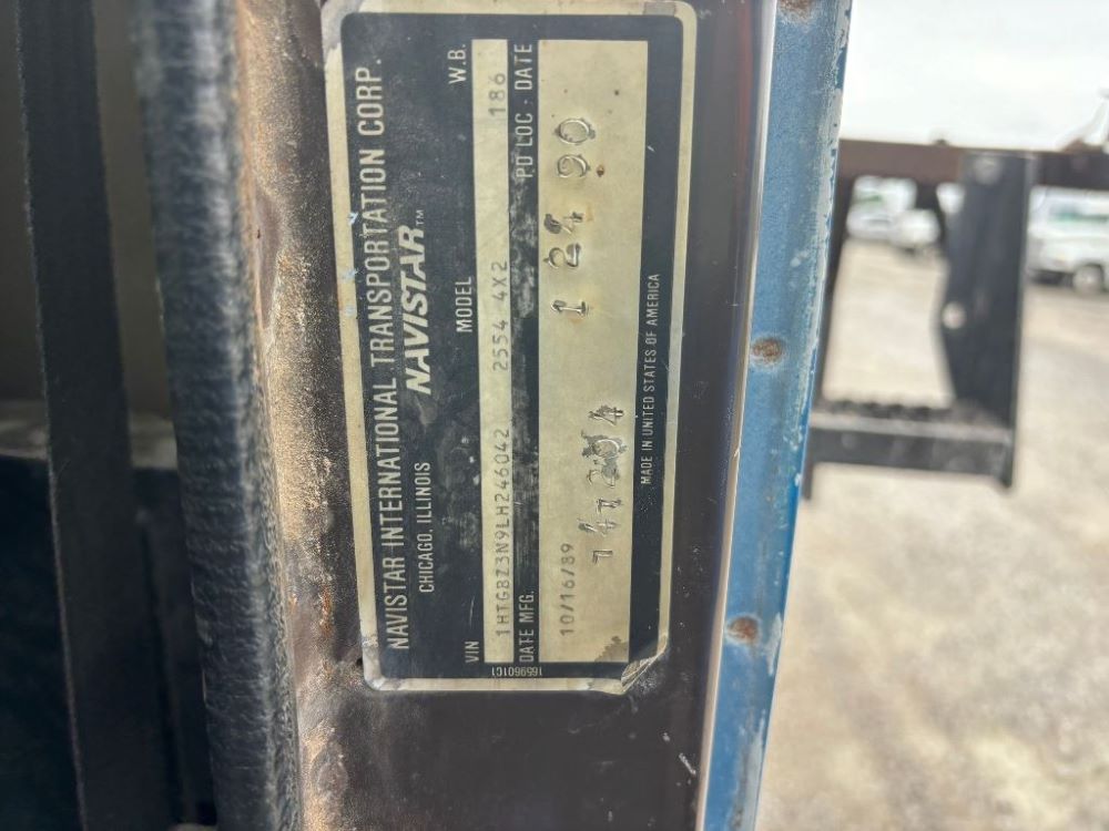 1989 International Dry Spreader Truck (GP6983), 1989 International dry spreader, New Leader L2020-11 bed, SN: 100784, Raven monitor, 380/90R46 and 320/85R34 tires.