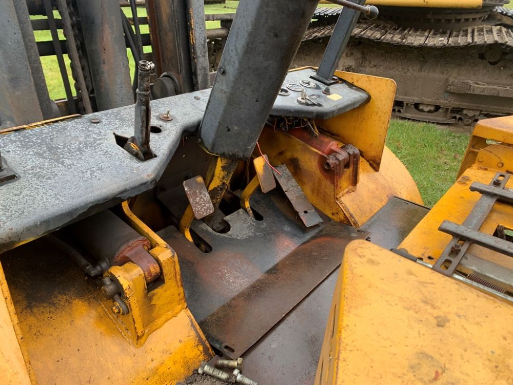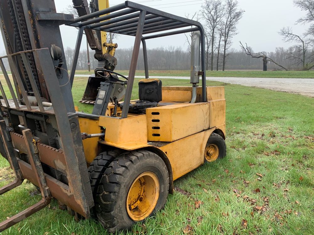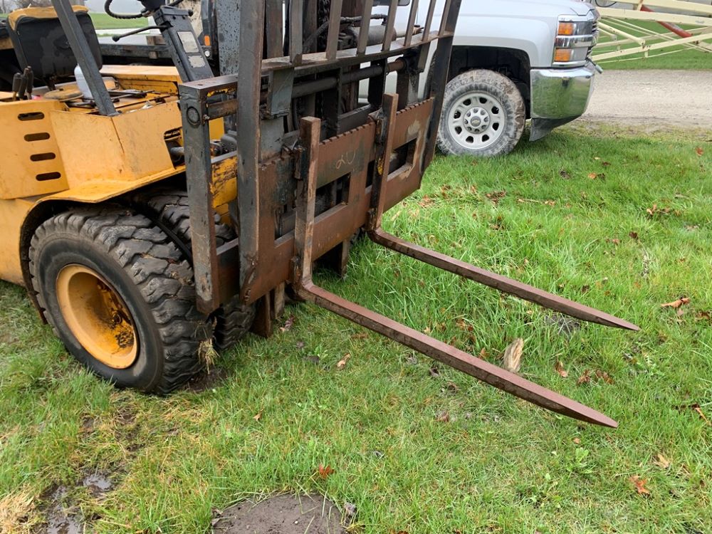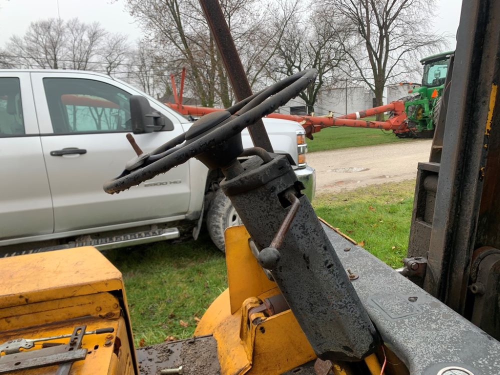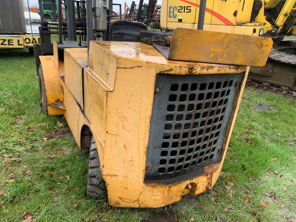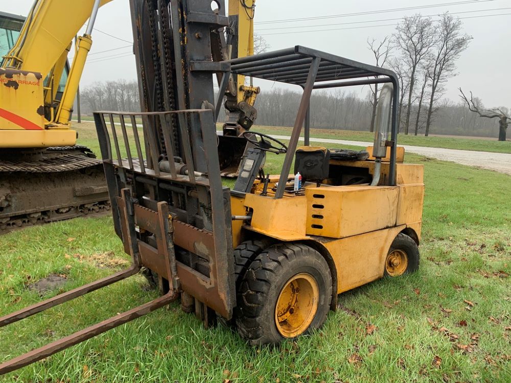 Allis Chalmers Forklift (CP3509), 13,000 pound forklift, 10,000 pound mast capacity, 3 stage mast, fuel pump needs work, starts right off with ether.
