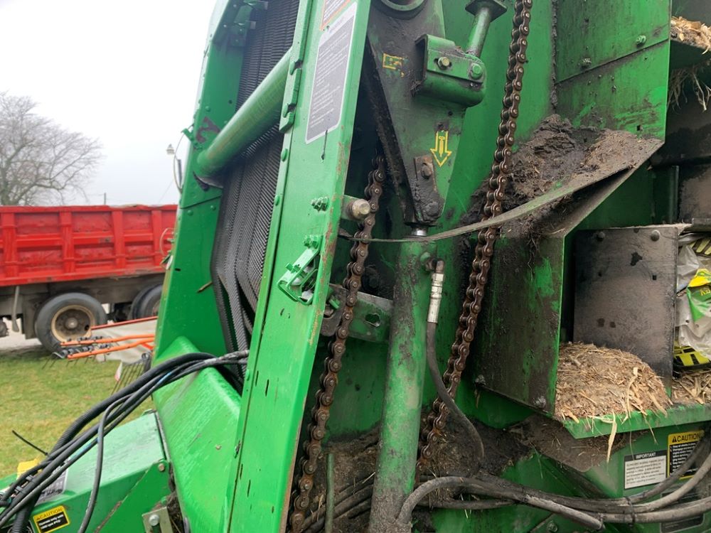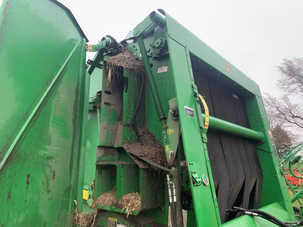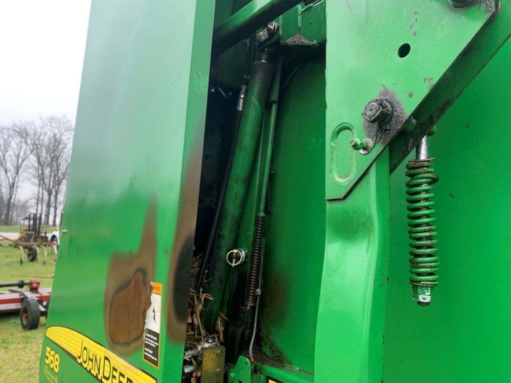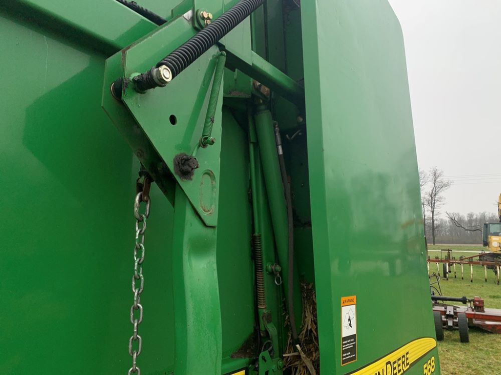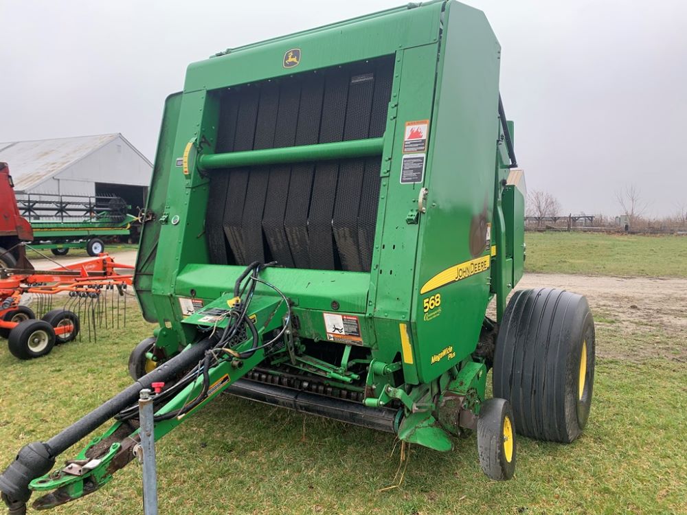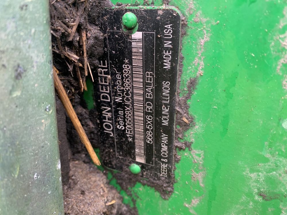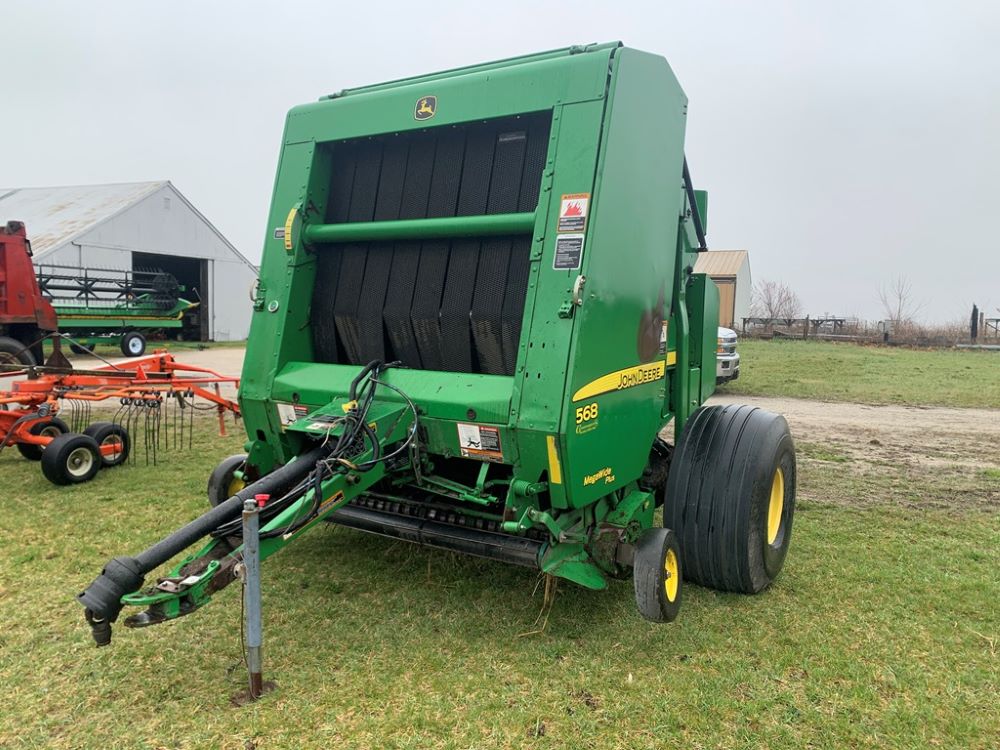 John Deere 568 Hay Baler (CP3493), mega wide plus, twine and new wrap, flotation tires, hydraulic pickup, 10,285 bales.
