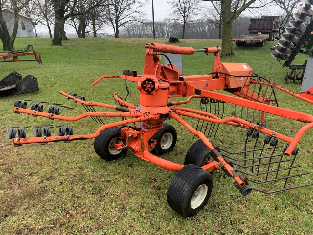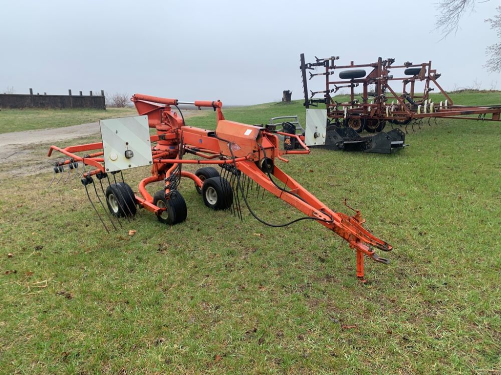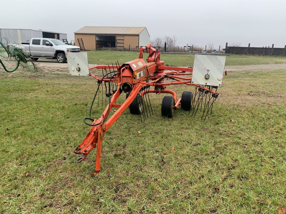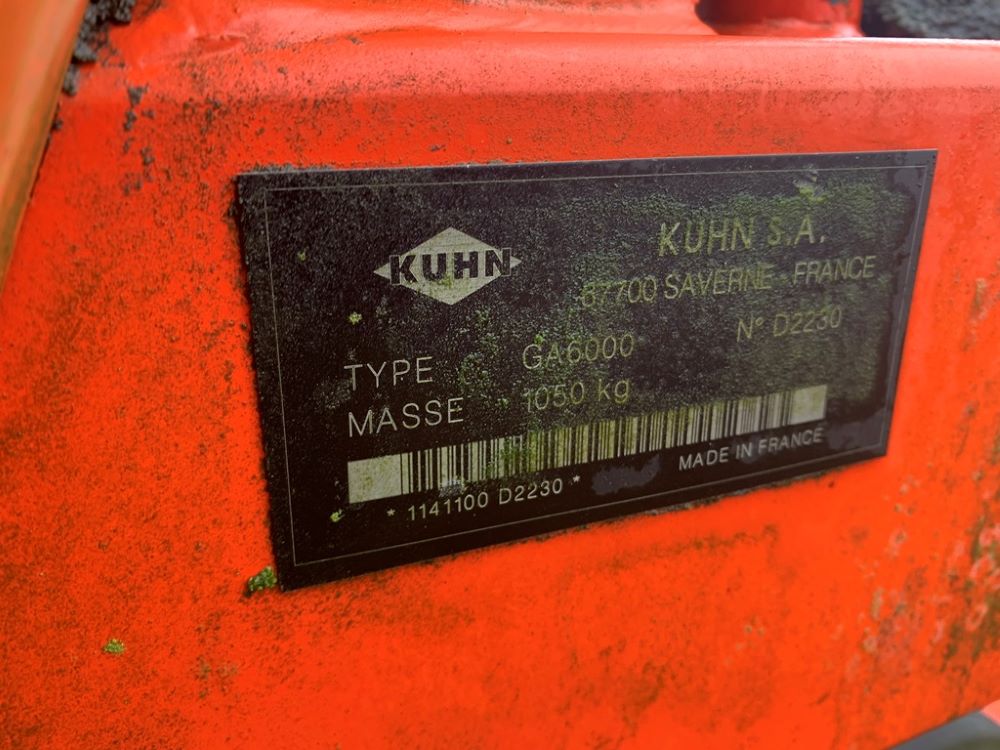 Kuhn GA6000 Hay Rake (CP3495), 29 foot double rotary rake, drawbar hitch, 540PTO, 10 arms per spindle, extra parts will be with it as gear box is burned out.