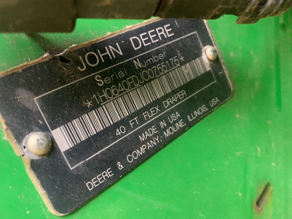 2013 John Deere 640 Flex Draper Head (CP3468), 40 foot width, dual knife drive, reel flip over kit, low acres.