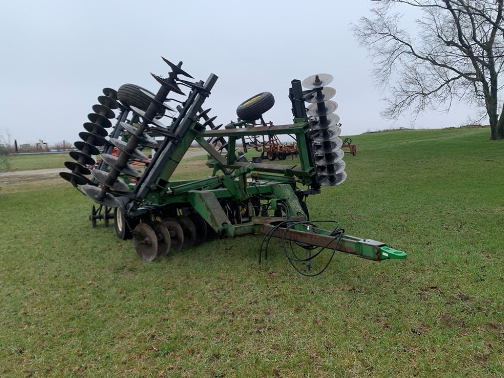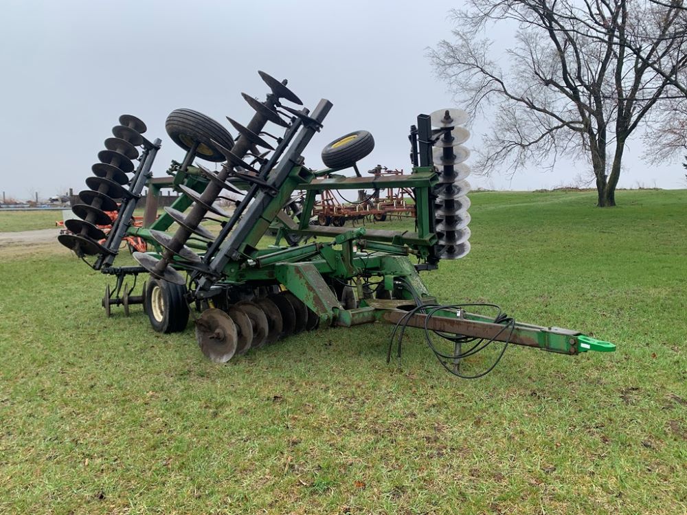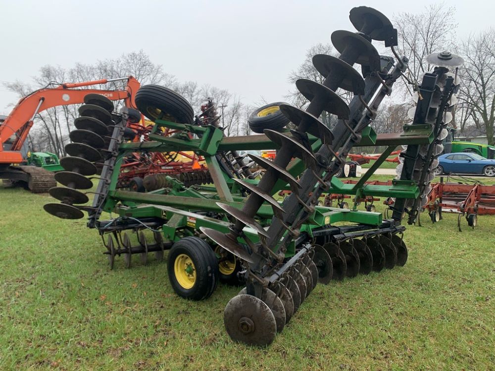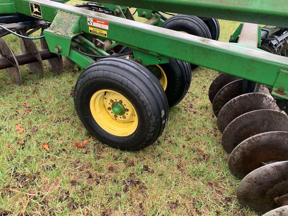 John Deere 630 Disc (CP3498), 30 foot, hydraulic wing fold, walking tandems, bar coil tine.