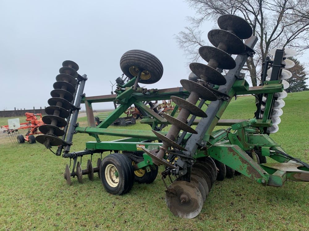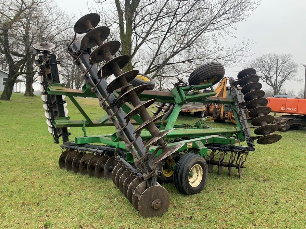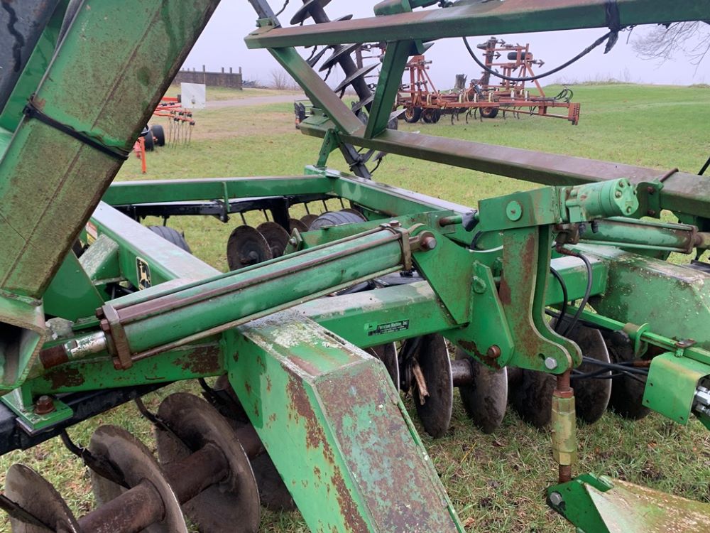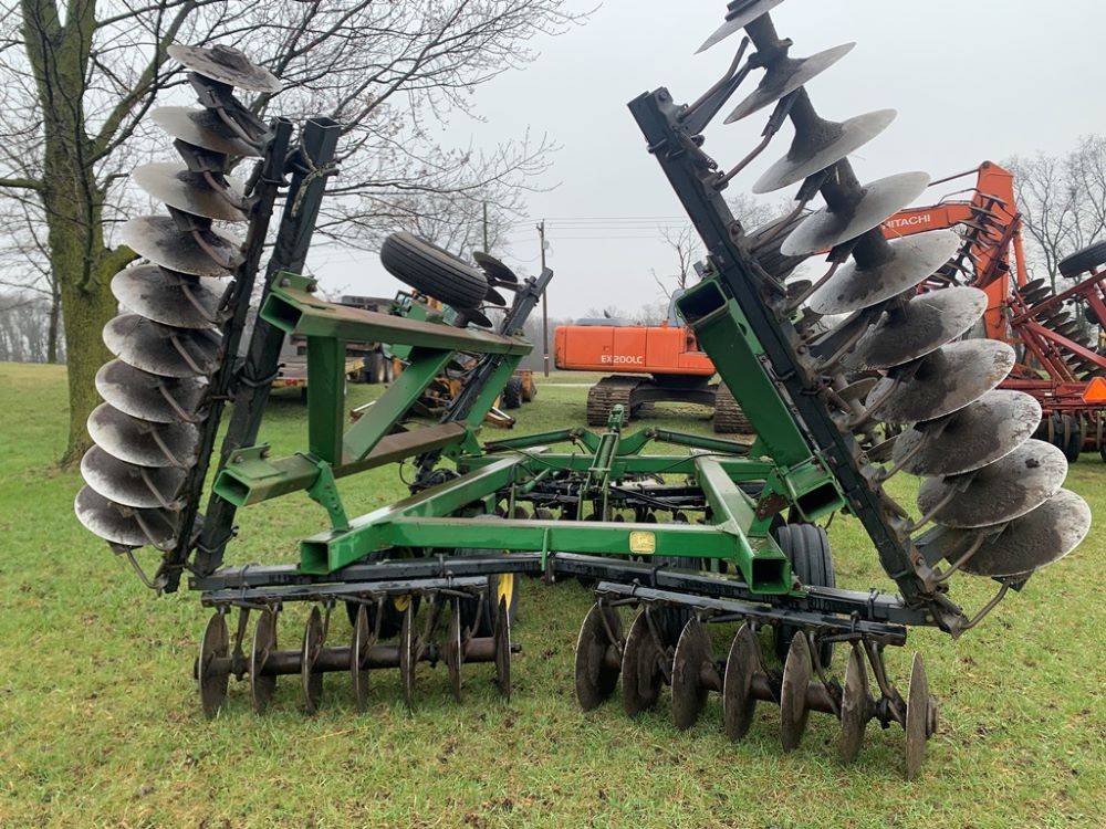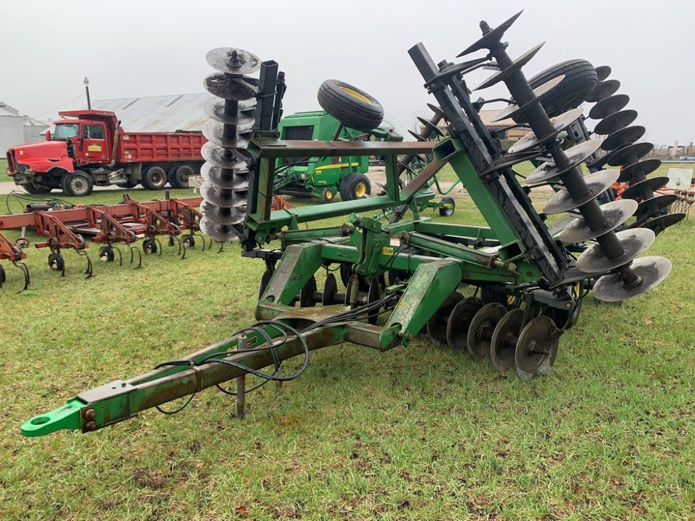 John Deere 630 Disc (CP3498), 30 foot, hydraulic wing fold, walking tandems, bar coil tine.