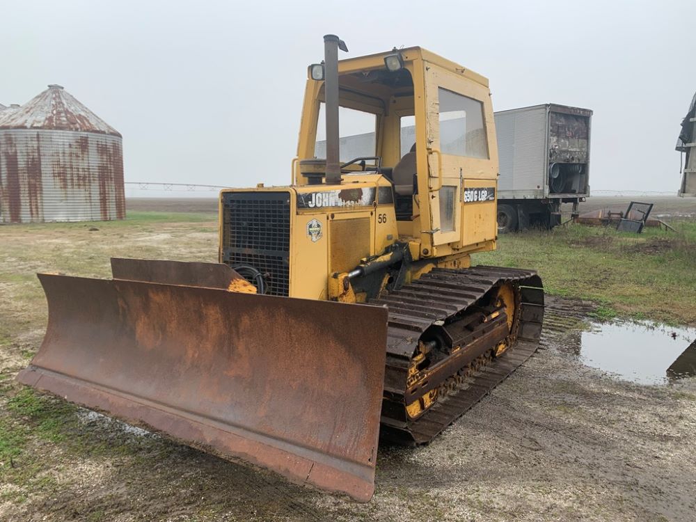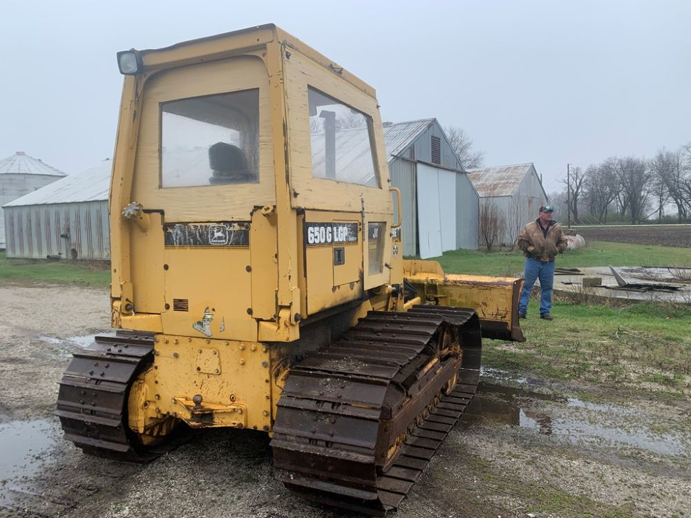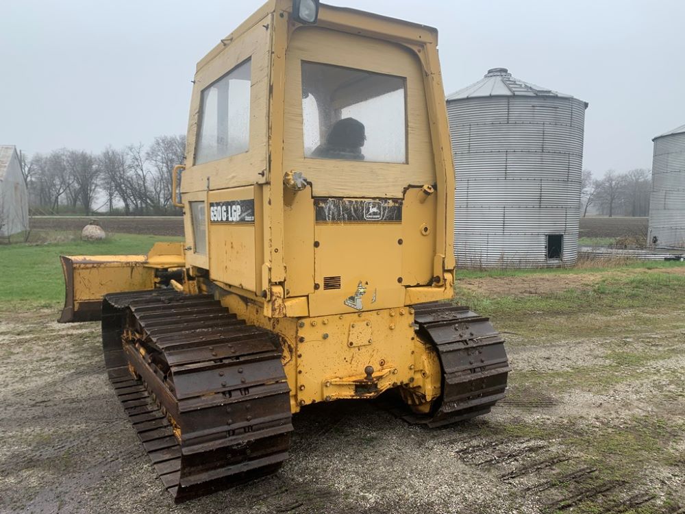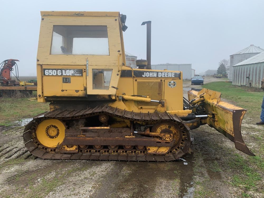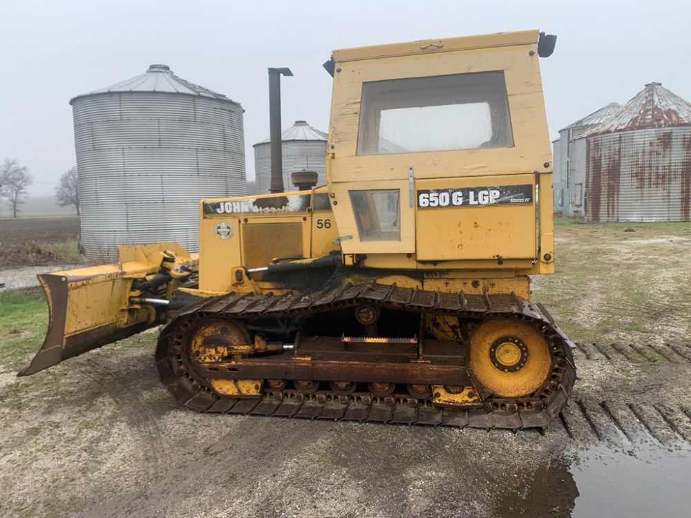 John Deere 650G Dozer (CP0300), John Deere diesel engine, custom cab, very good machine, tracks in good shape, 24 inch wide tracks, strong undercarriage, 4,853 hours.