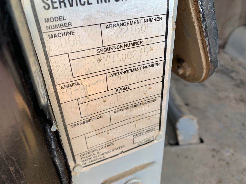 2006 Cat D6RXW Dozer (LT3489), Cat C9 diesel engine, hydrostat power shift transmission, hydraulic semi-U blade with tilt, ROPS cab, 30 inch pads, A/C, heat, Am/Fm radio, shows 16,856 hours.