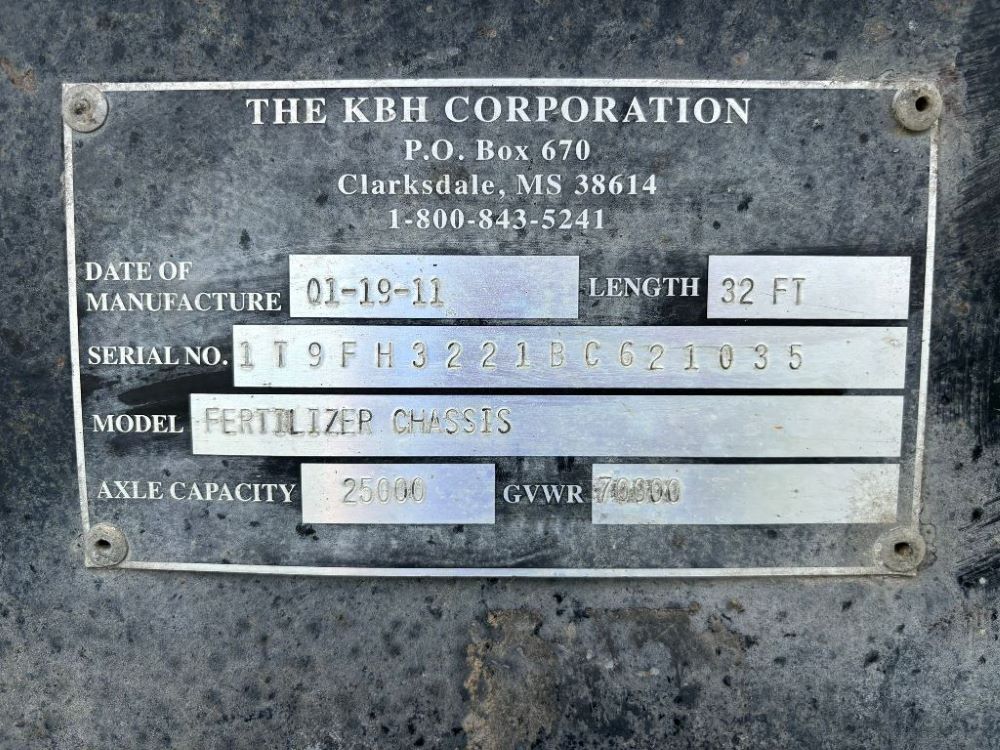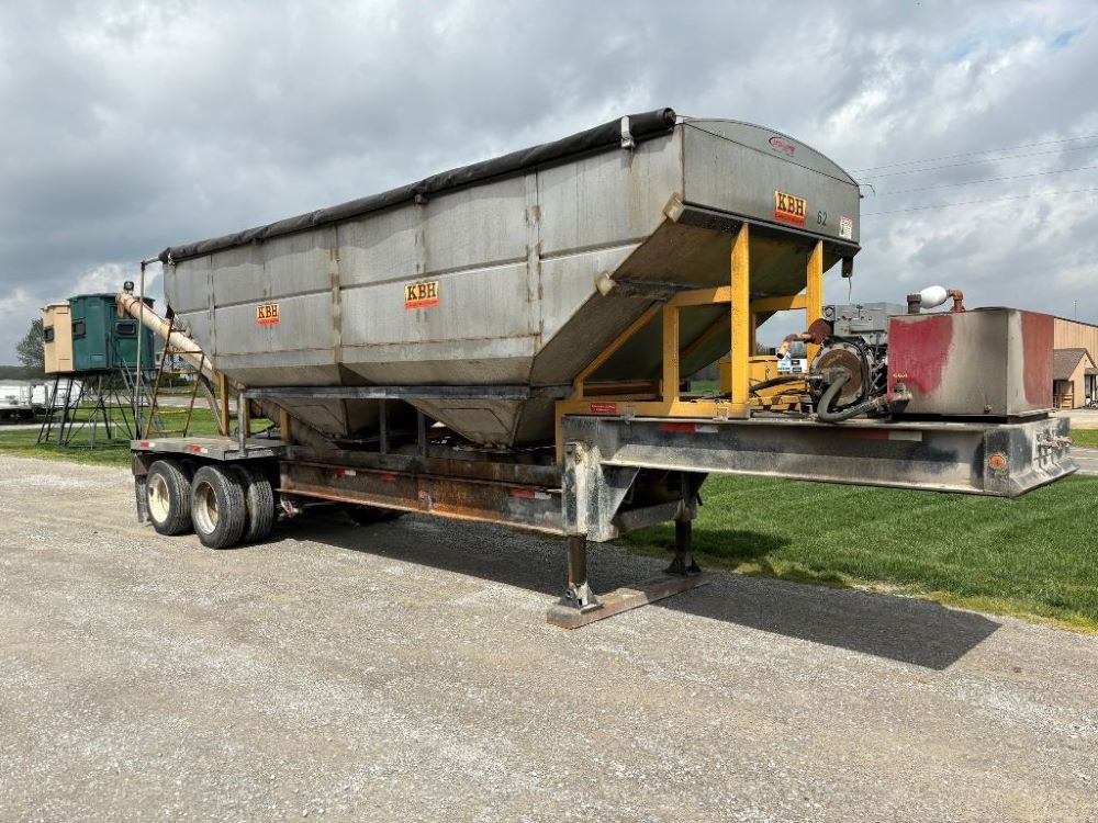 2011 KBH 24 Ton Dry Tender Trailer (GP6958), 24 Ton stainless steel dry tender trailer, self contained diesel engine, rear discharge auger, rollover tarp, tandem axle.
