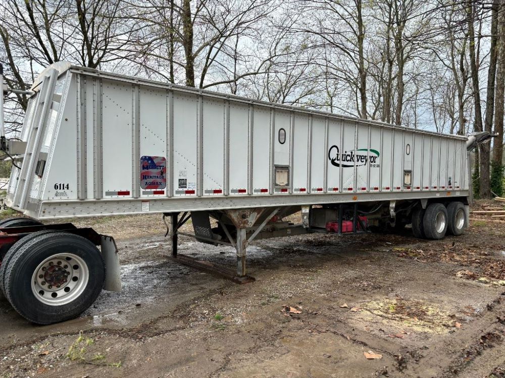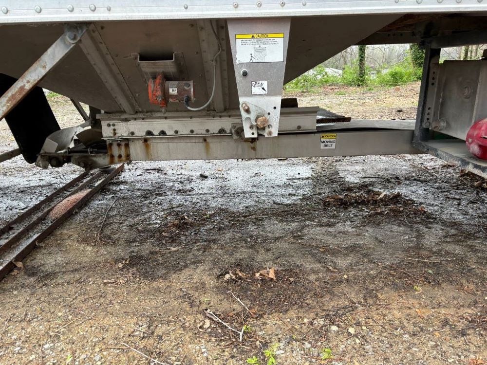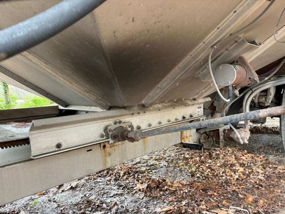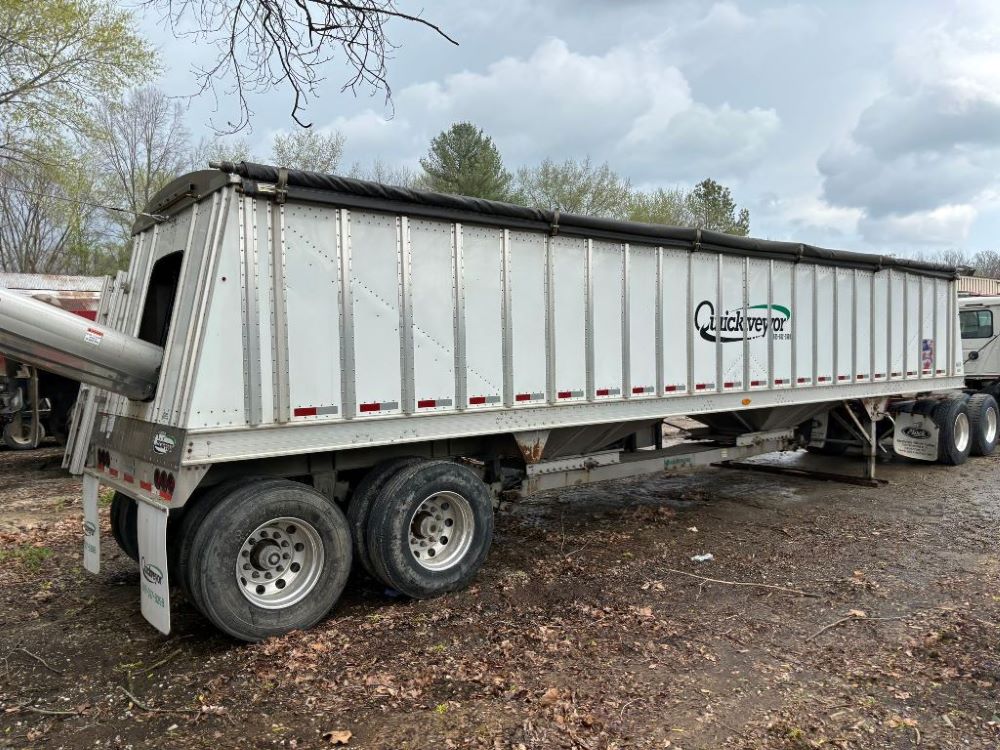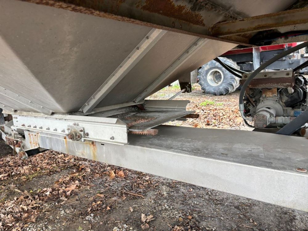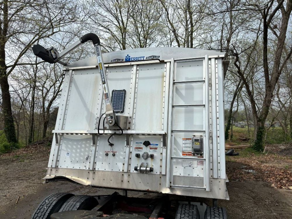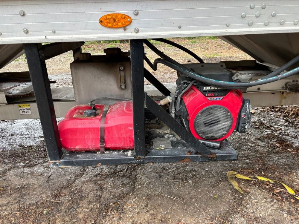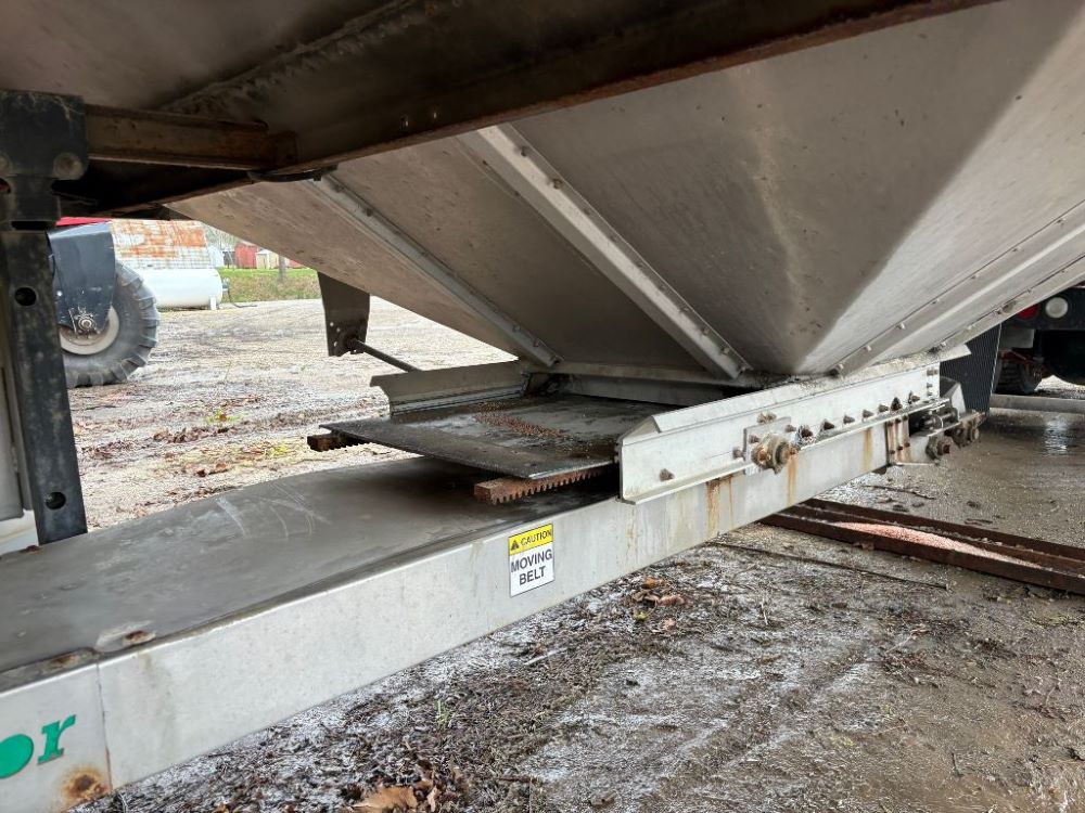 2021 Merritt Quickveyor Fertilizer Trailer (GP6961), tandem axle, air ride suspension, conveyor belt/chute controls, electric roll tarp, 2 hopper vibrators, Honda electric start gas motor, 11R22.5 tires, aluminum wheels, GVWR 65,000 pounds.