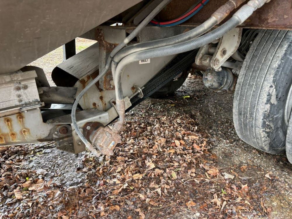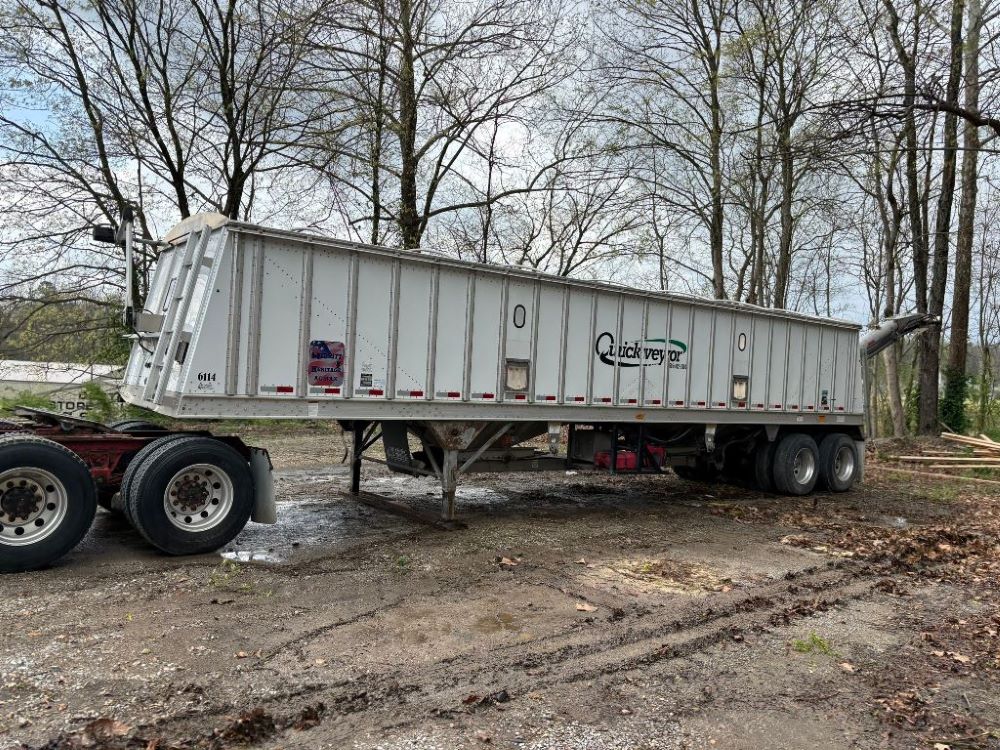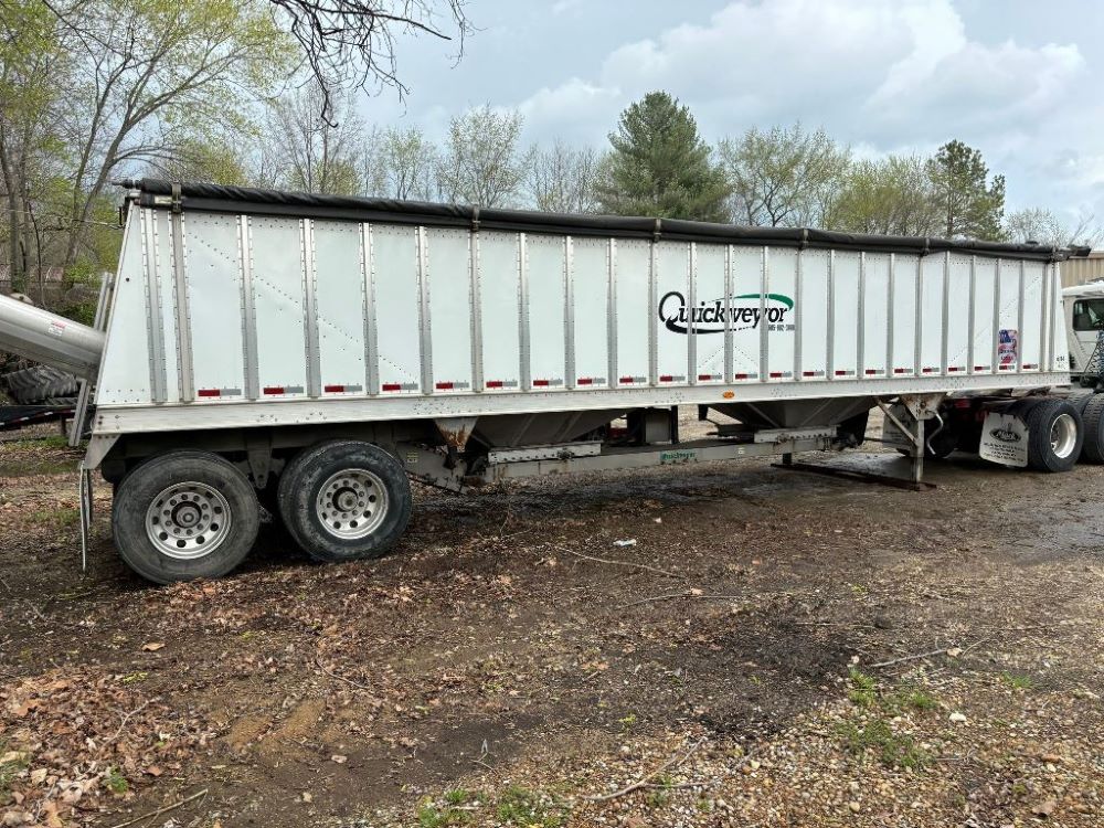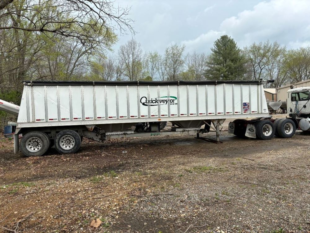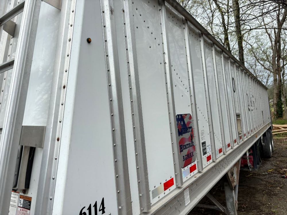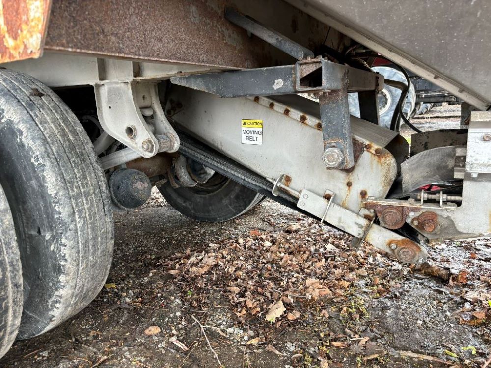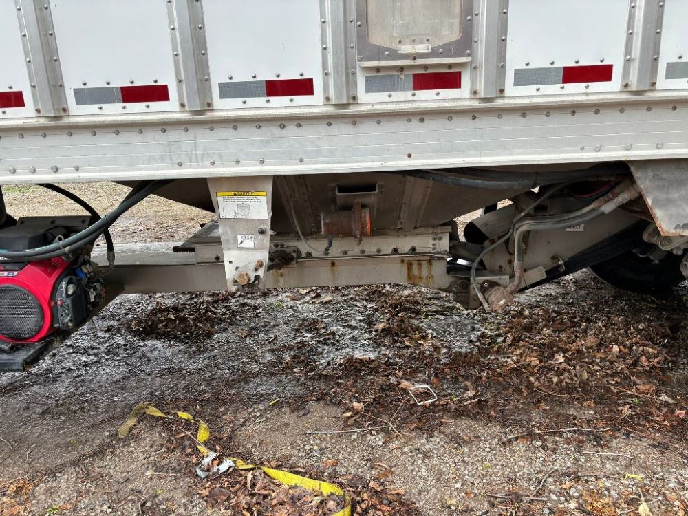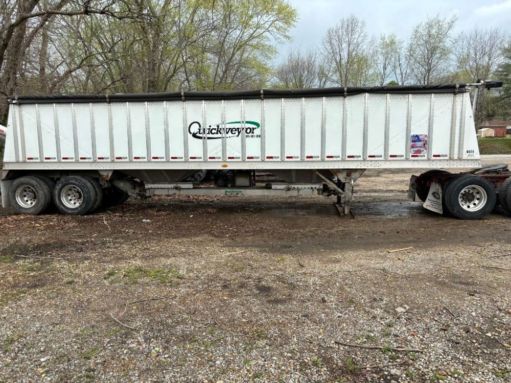 2021 Merritt Quickveyor Fertilizer Trailer (GP6961), tandem axle, air ride suspension, conveyor belt/chute controls, electric roll tarp, 2 hopper vibrators, Honda electric start gas motor, 11R22.5 tires, aluminum wheels, GVWR 65,000 pounds.