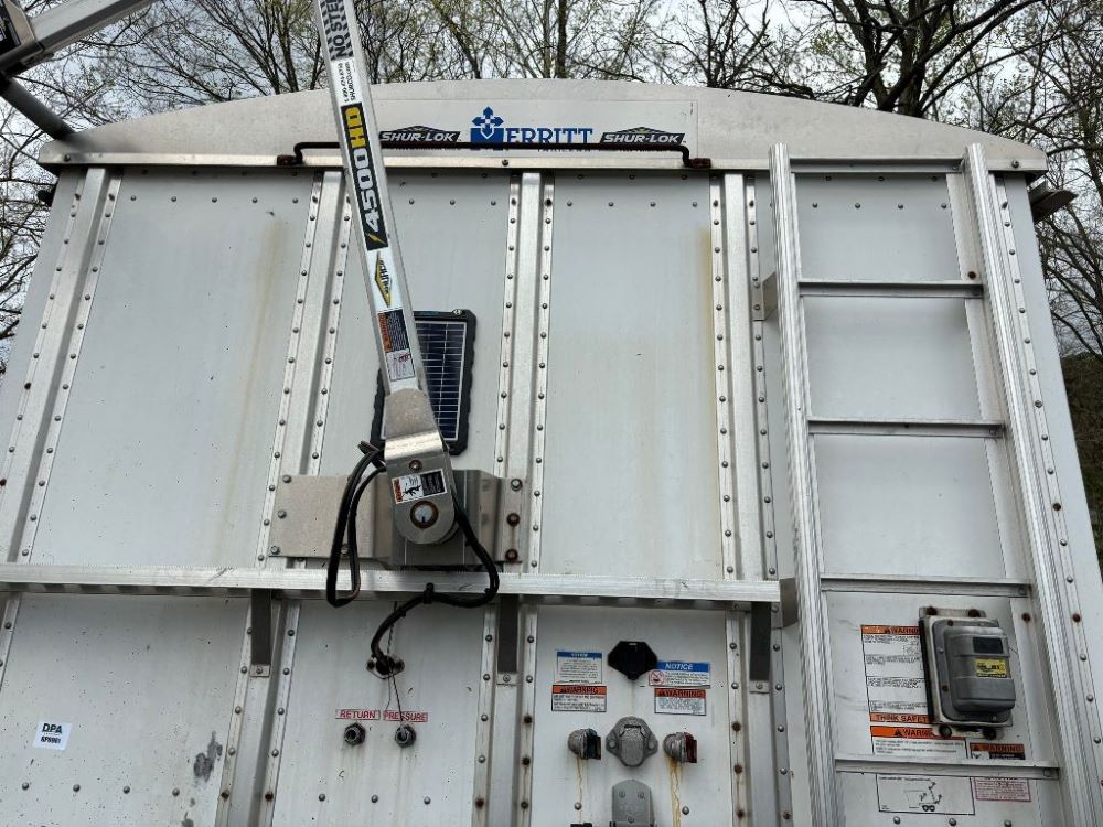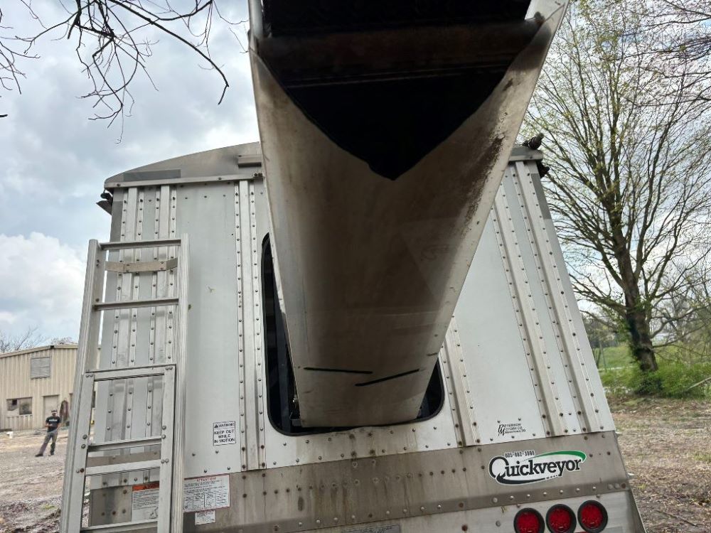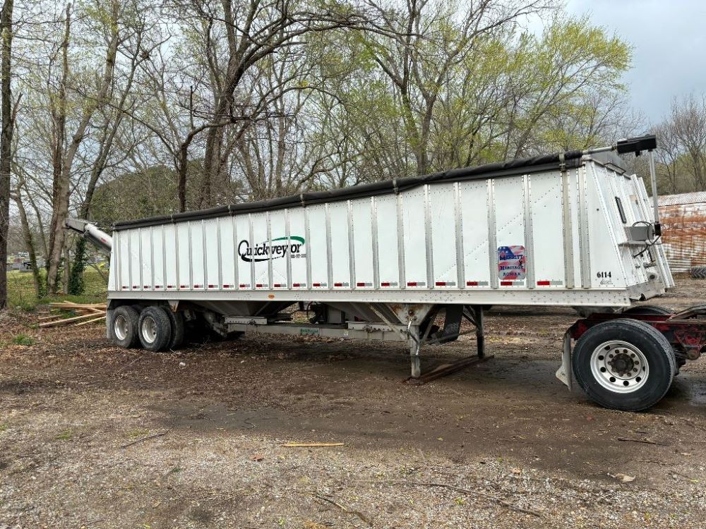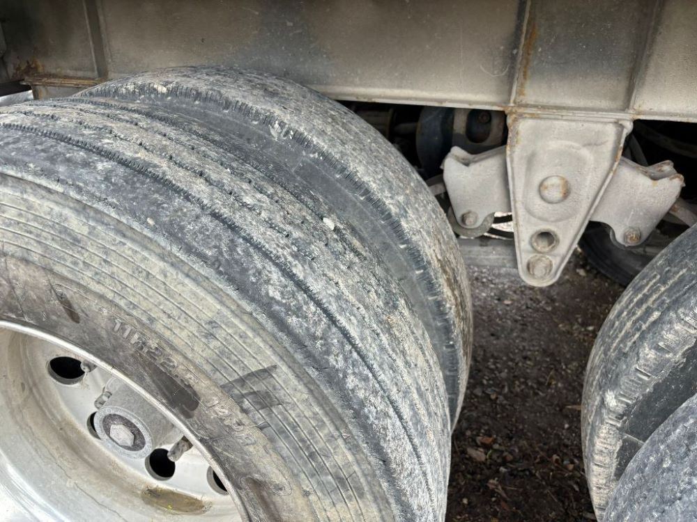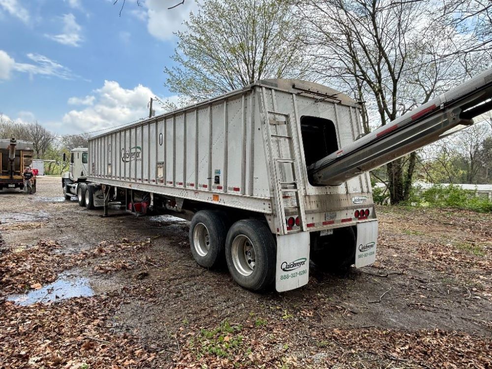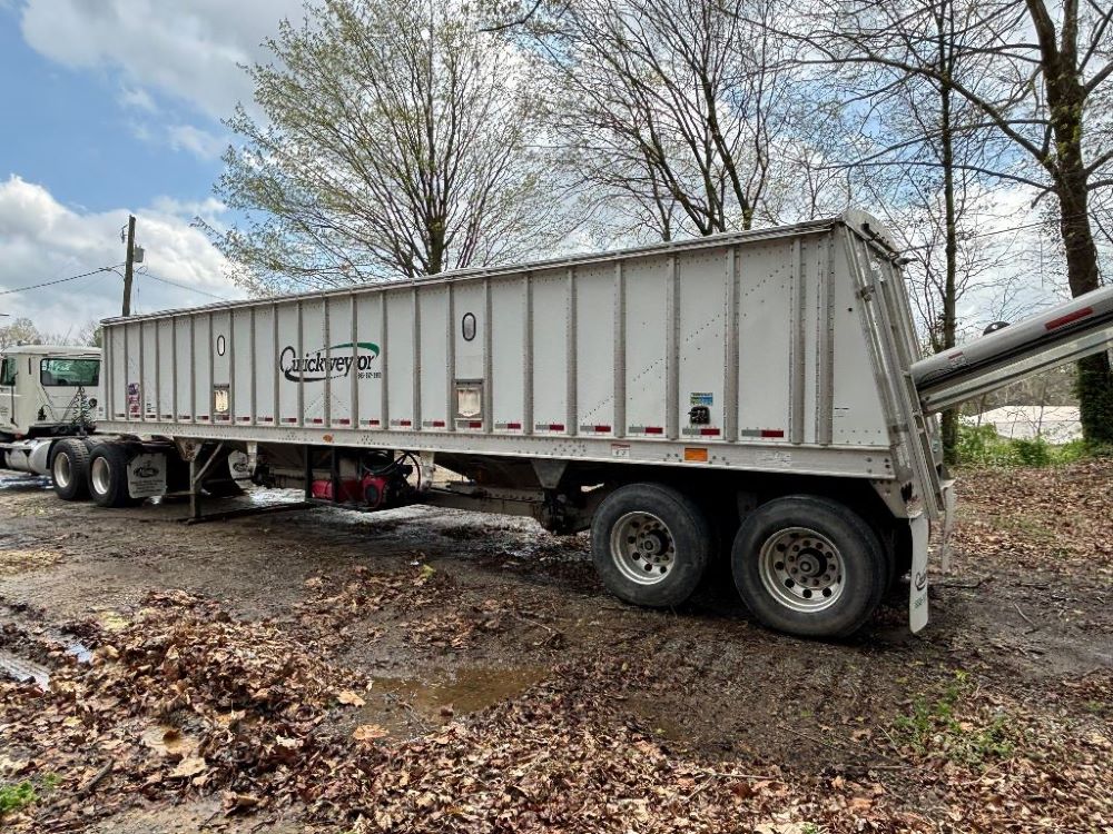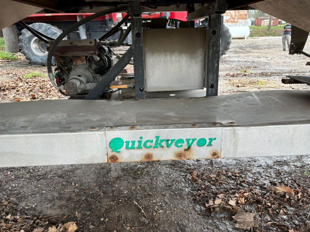 2021 Merritt Quickveyor Fertilizer Trailer (GP6961), tandem axle, air ride suspension, conveyor belt/chute controls, electric roll tarp, 2 hopper vibrators, Honda electric start gas motor, 11R22.5 tires, aluminum wheels, GVWR 65,000 pounds.