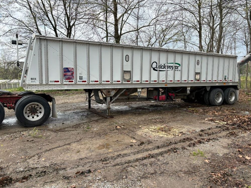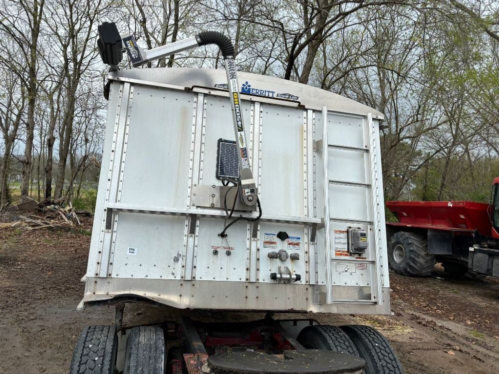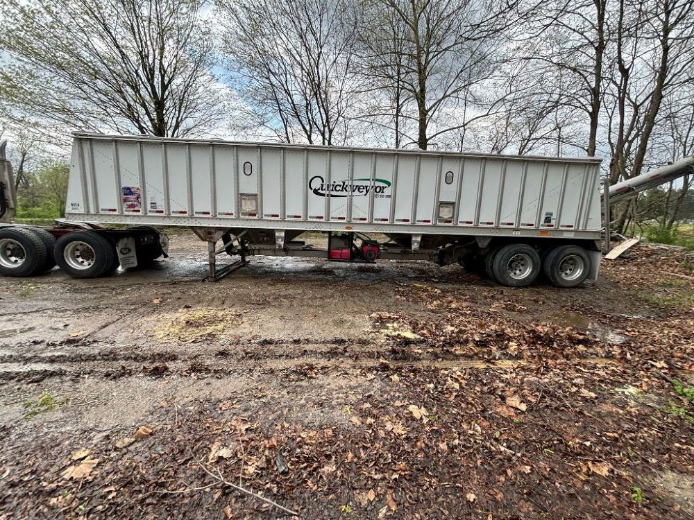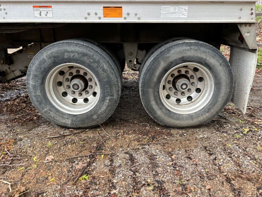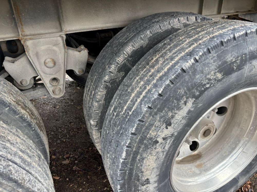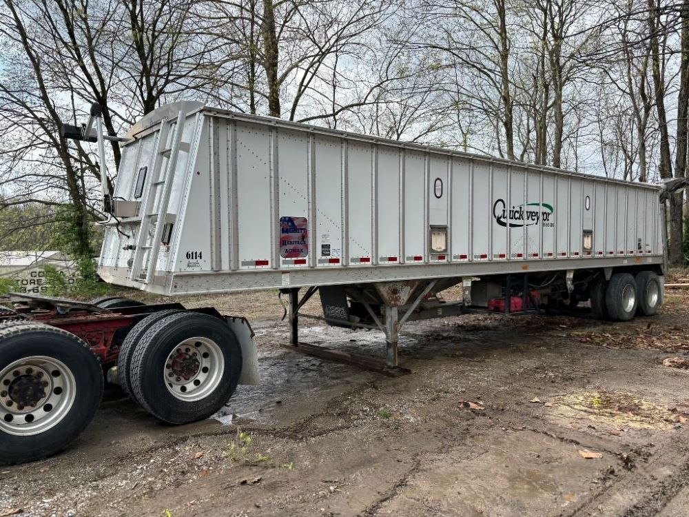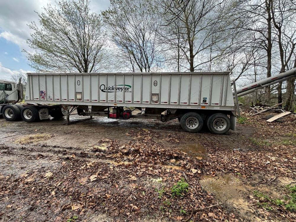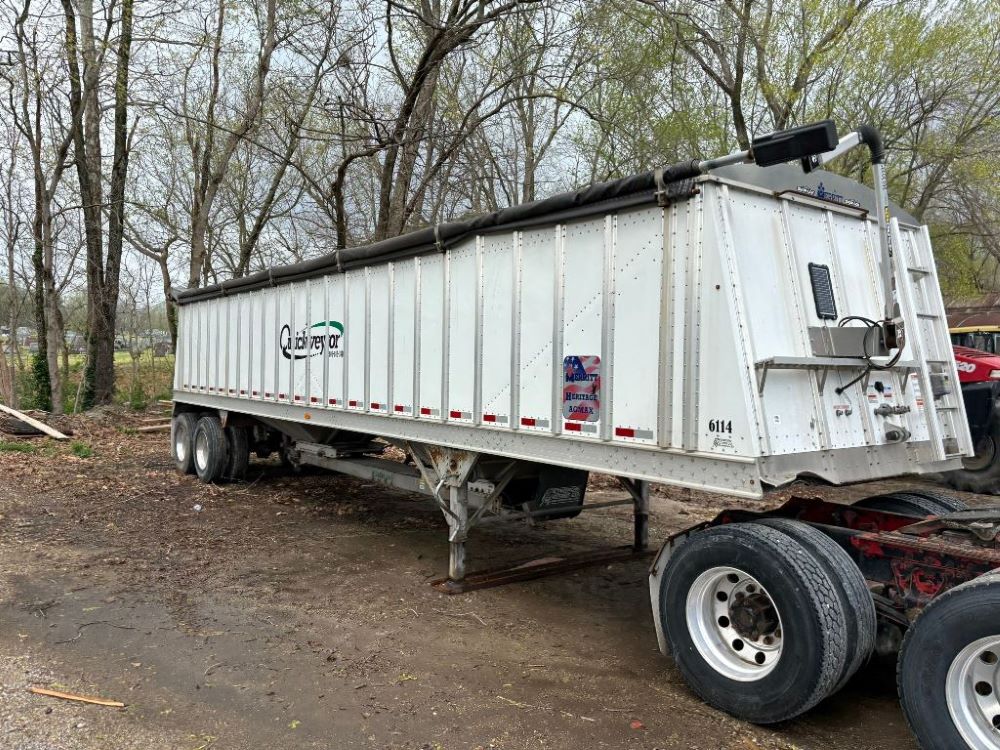 2021 Merritt Quickveyor Fertilizer Trailer (GP6961), tandem axle, air ride suspension, conveyor belt/chute controls, electric roll tarp, 2 hopper vibrators, Honda electric start gas motor, 11R22.5 tires, aluminum wheels, GVWR 65,000 pounds.