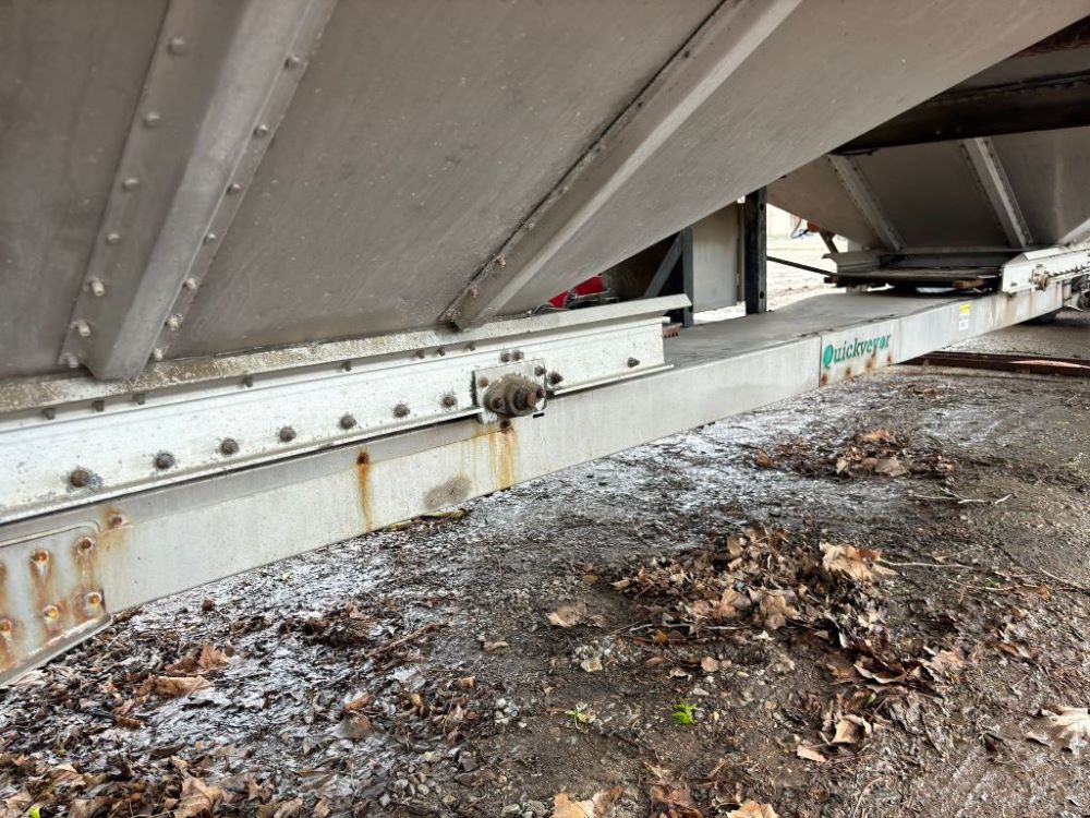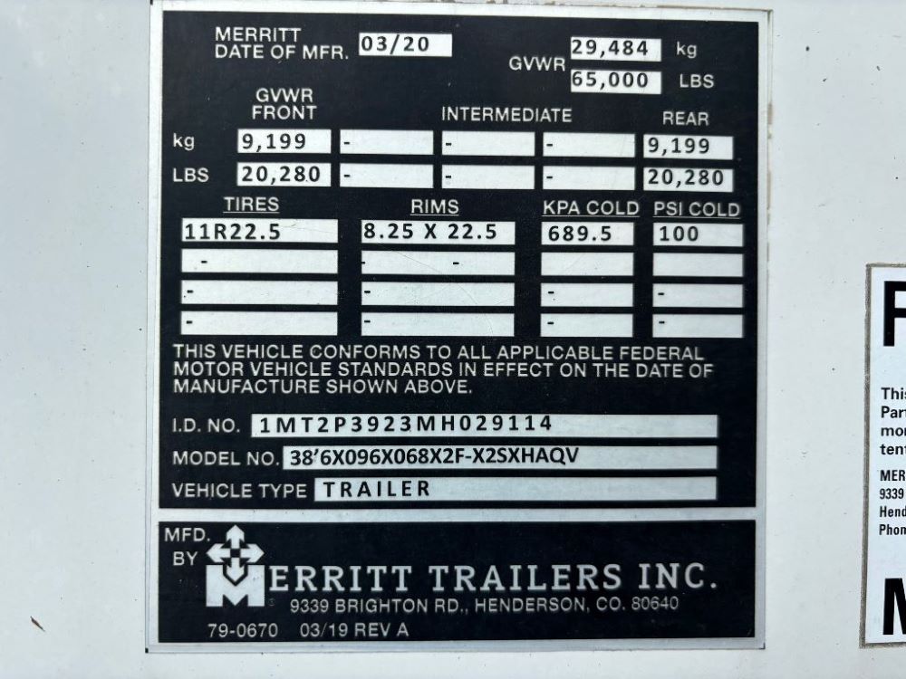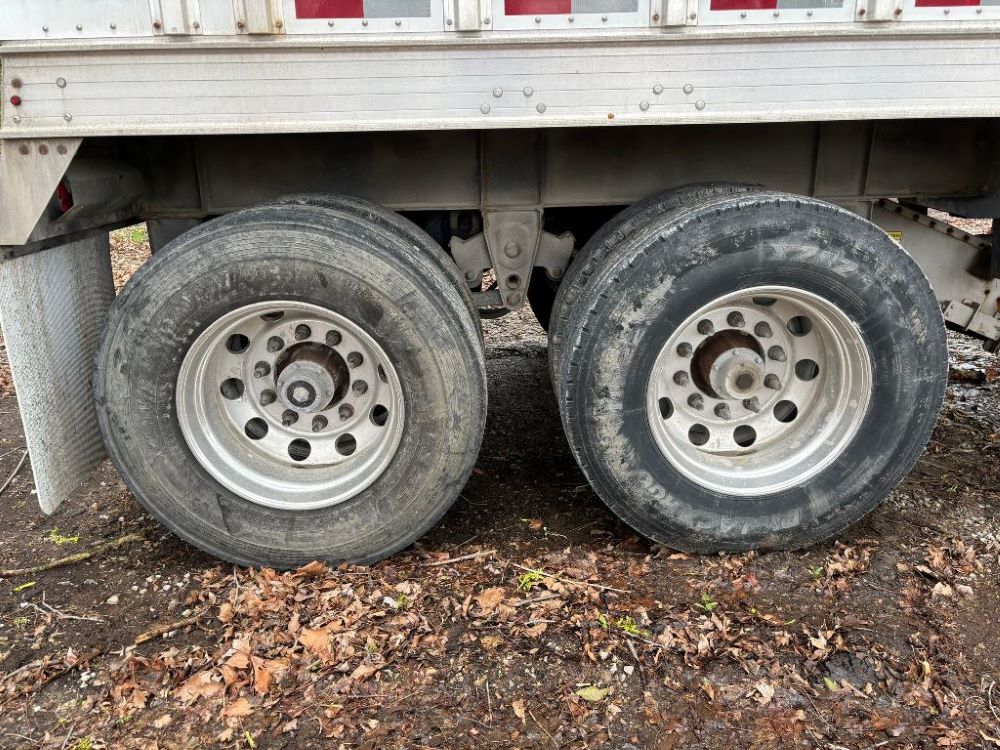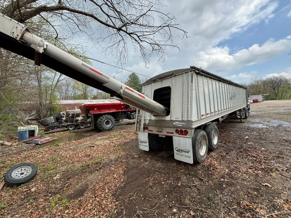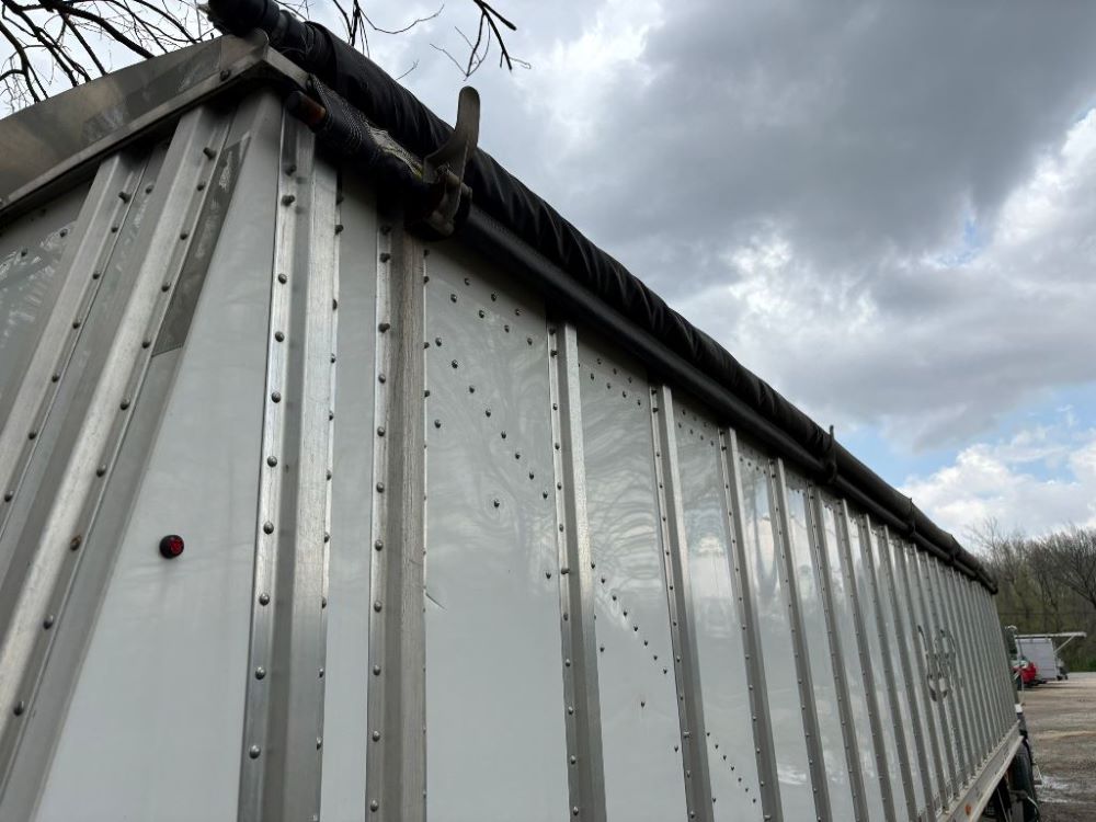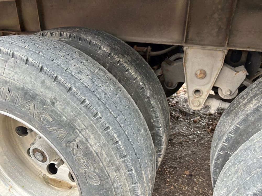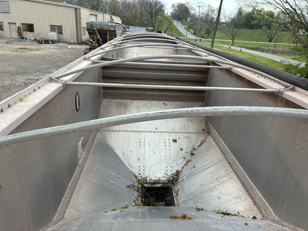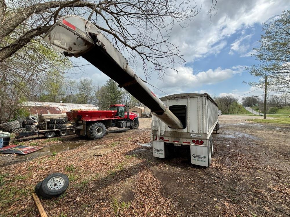 2021 Merritt Quickveyor Fertilizer Trailer (GP6961), tandem axle, air ride suspension, conveyor belt/chute controls, electric roll tarp, 2 hopper vibrators, Honda electric start gas motor, 11R22.5 tires, aluminum wheels, GVWR 65,000 pounds.