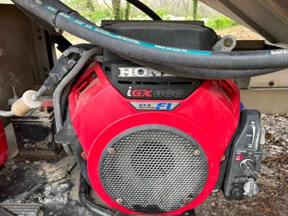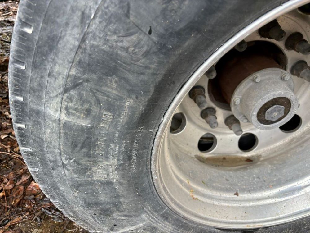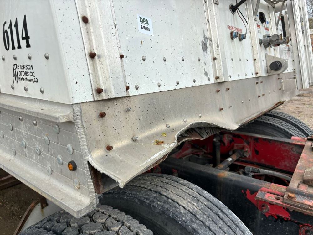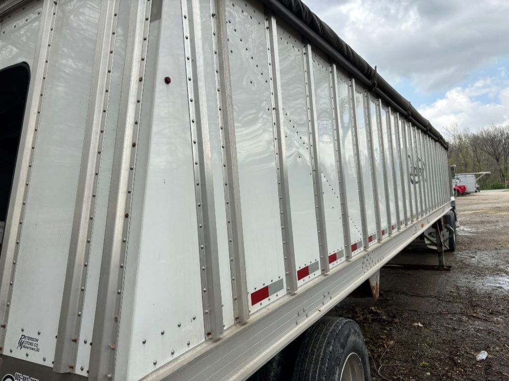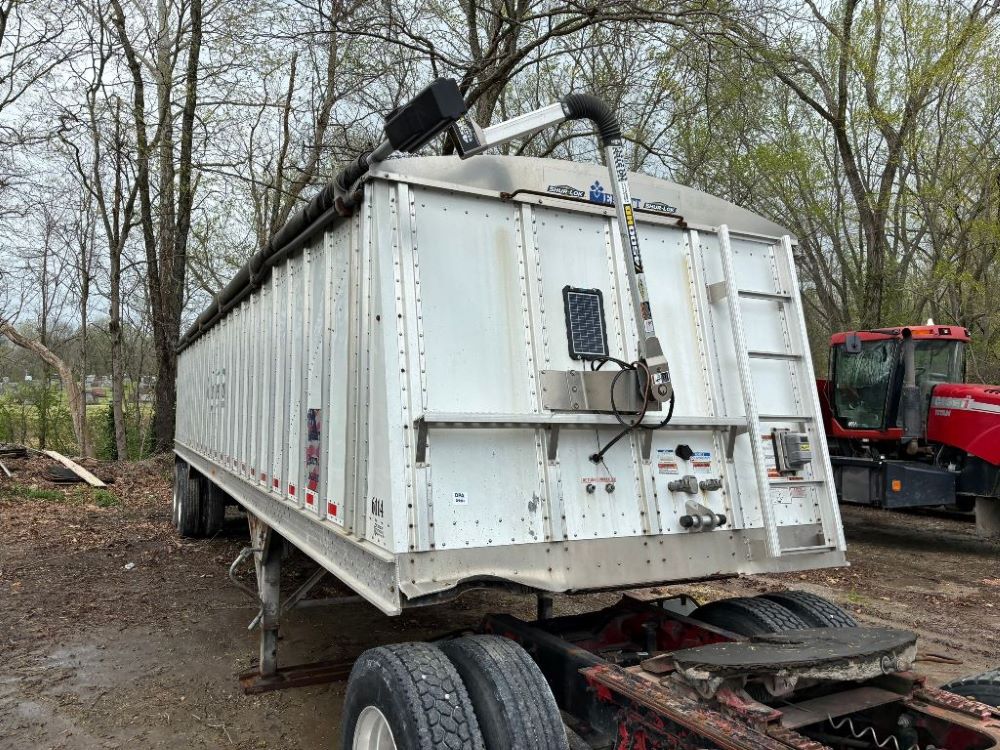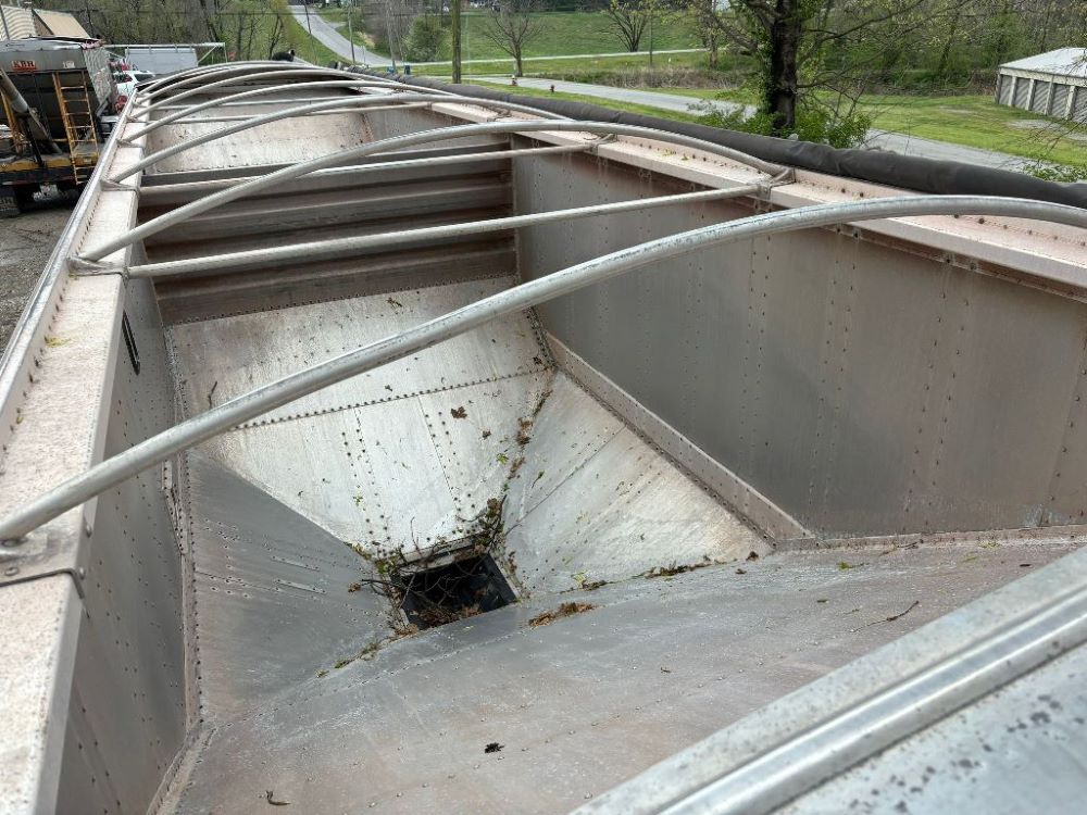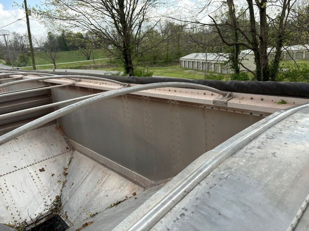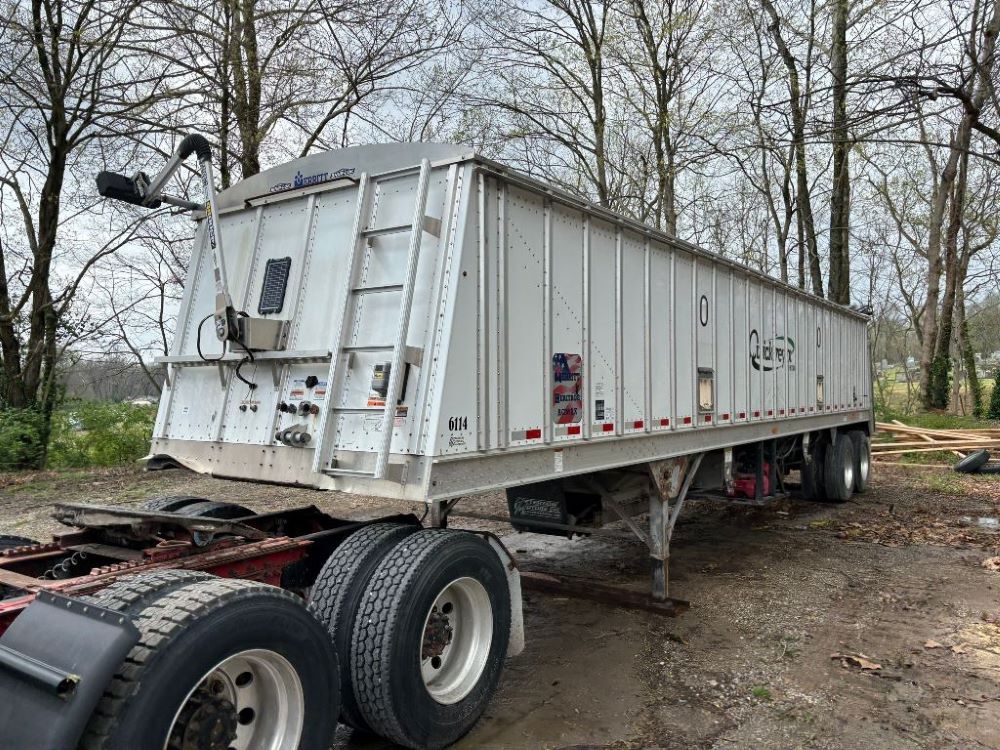 2021 Merritt Quickveyor Fertilizer Trailer (GP6961), tandem axle, air ride suspension, conveyor belt/chute controls, electric roll tarp, 2 hopper vibrators, Honda electric start gas motor, 11R22.5 tires, aluminum wheels, GVWR 65,000 pounds.