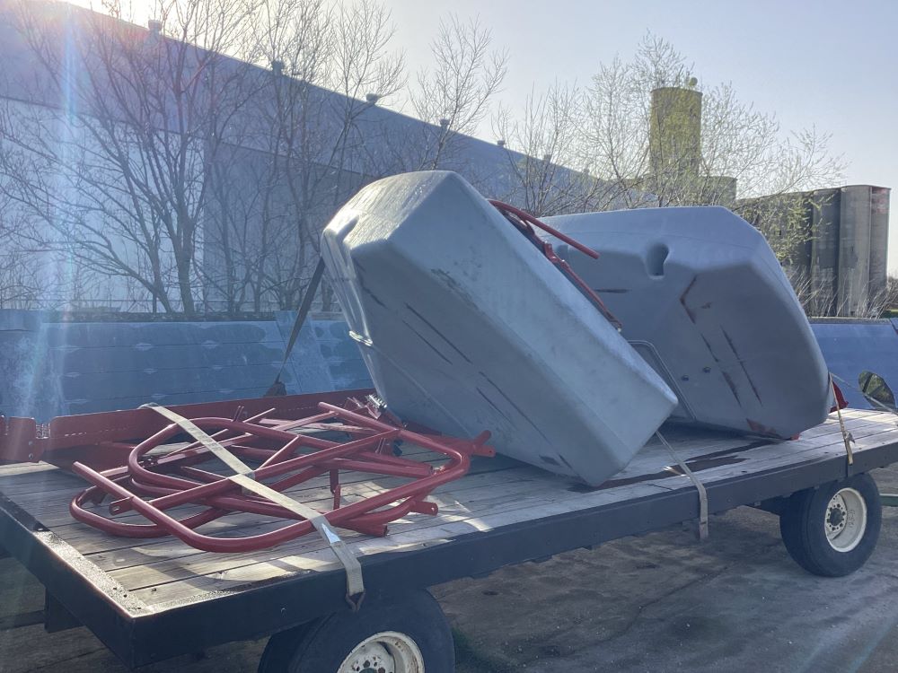 Planter Parts (LLD793), seed tanks (2), support brackets, for a Case IH 1250 24 row planter.