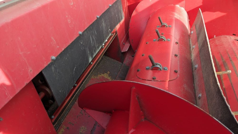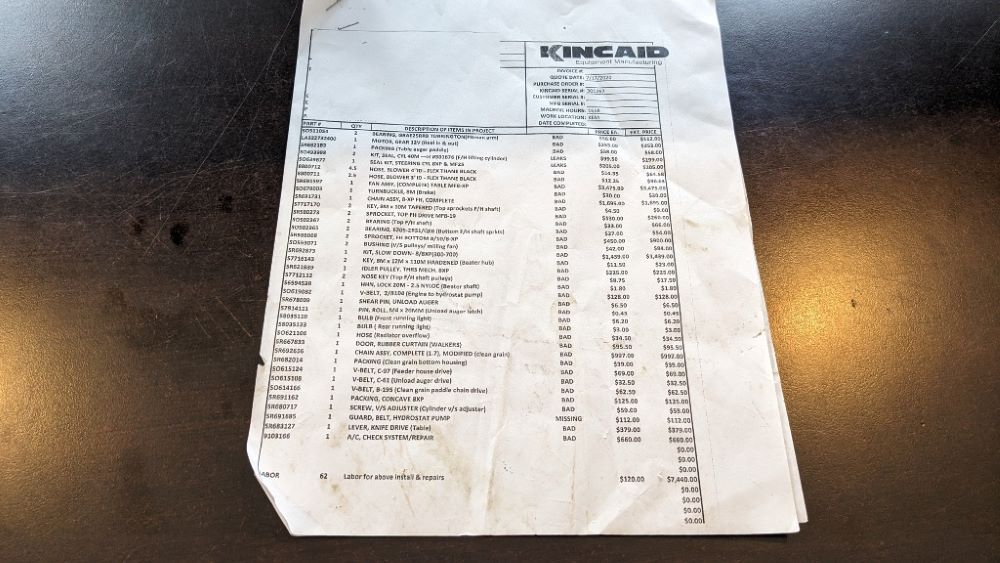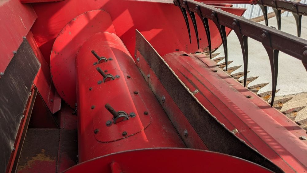 1998 Massey Ferguson Kincaid 8XP Combine (NP5140), this machine was kept in good condition and maintenance was performed, and also in 2020 this machine was worked on by the dealer (Kincaid), it has been used very little since work was completed, work was done by dealer in 2020 at 1,658 hours and machine currently has 1,699 hours at the time of pictures, this machine is for increase work and does not have the weigh system, this machine will also work for the small producer, unit has been stored insdie even though paint has some fading, paperwork in picture to show what was done by dealer.