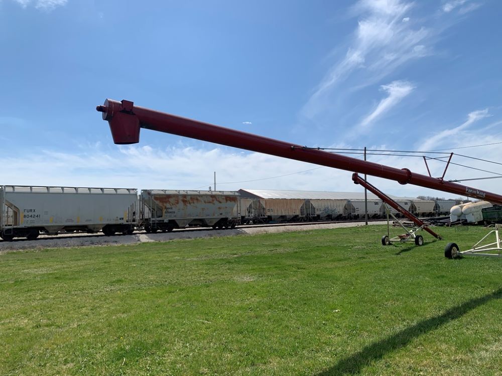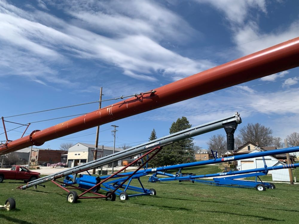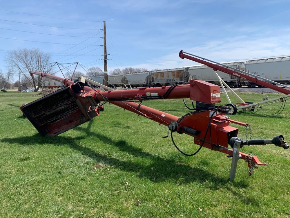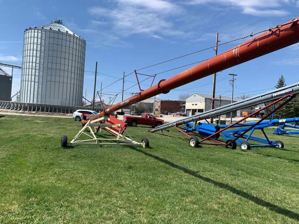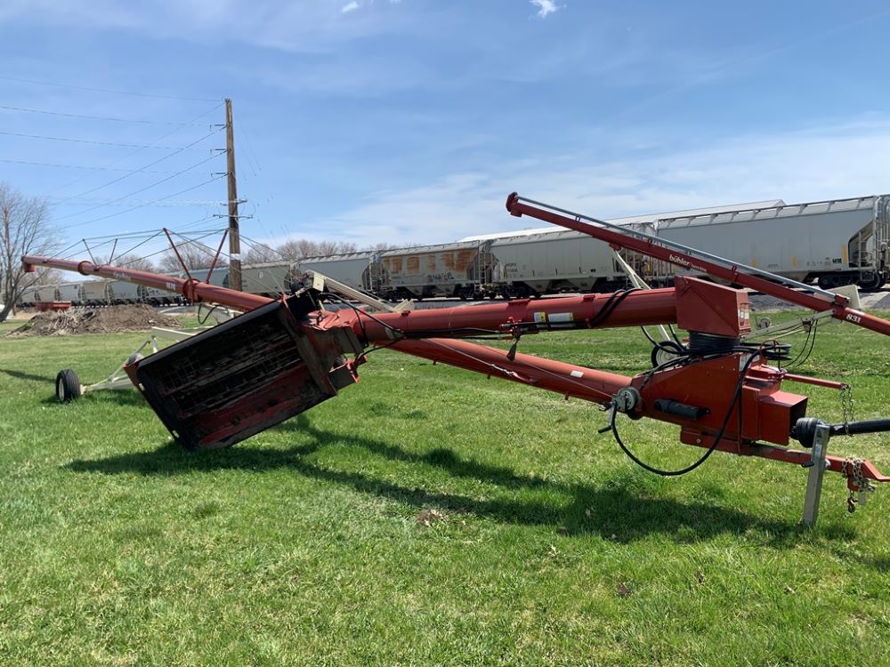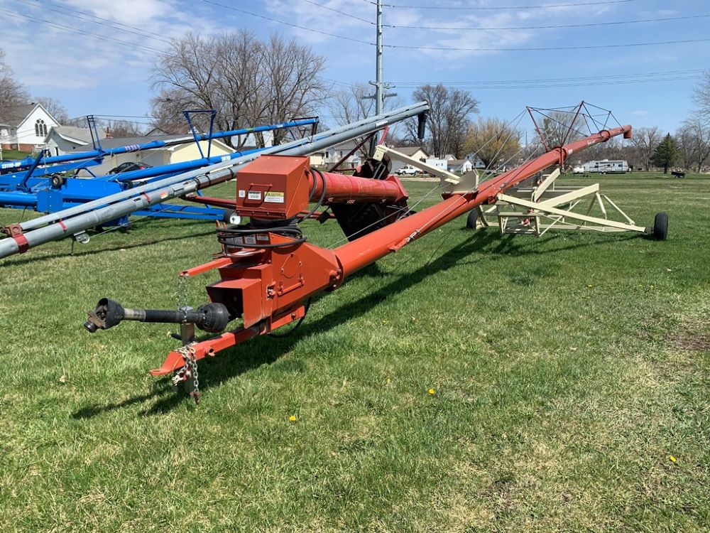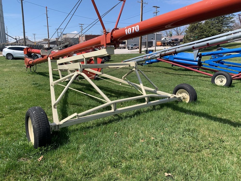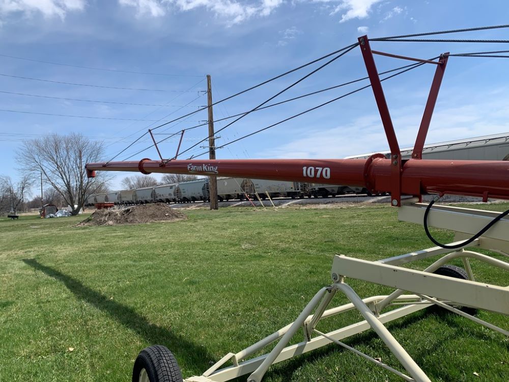 Farm King Grain Auger (CP3553), Farm King 1070 grain auger, swing hopper, wheel assist, PTO, portable, tires.