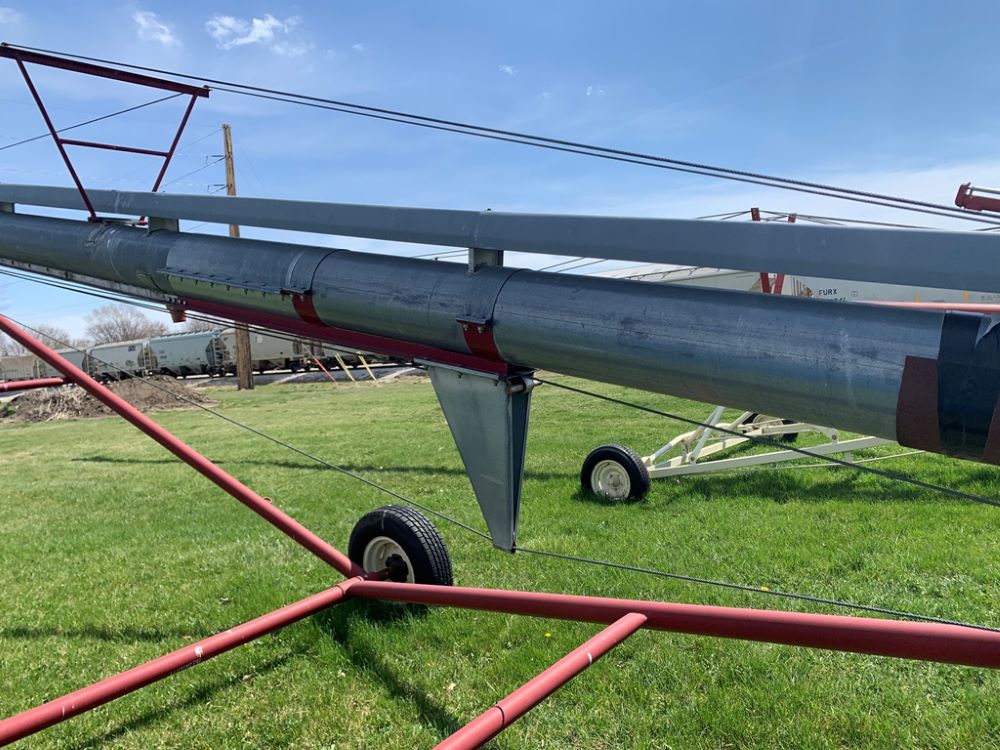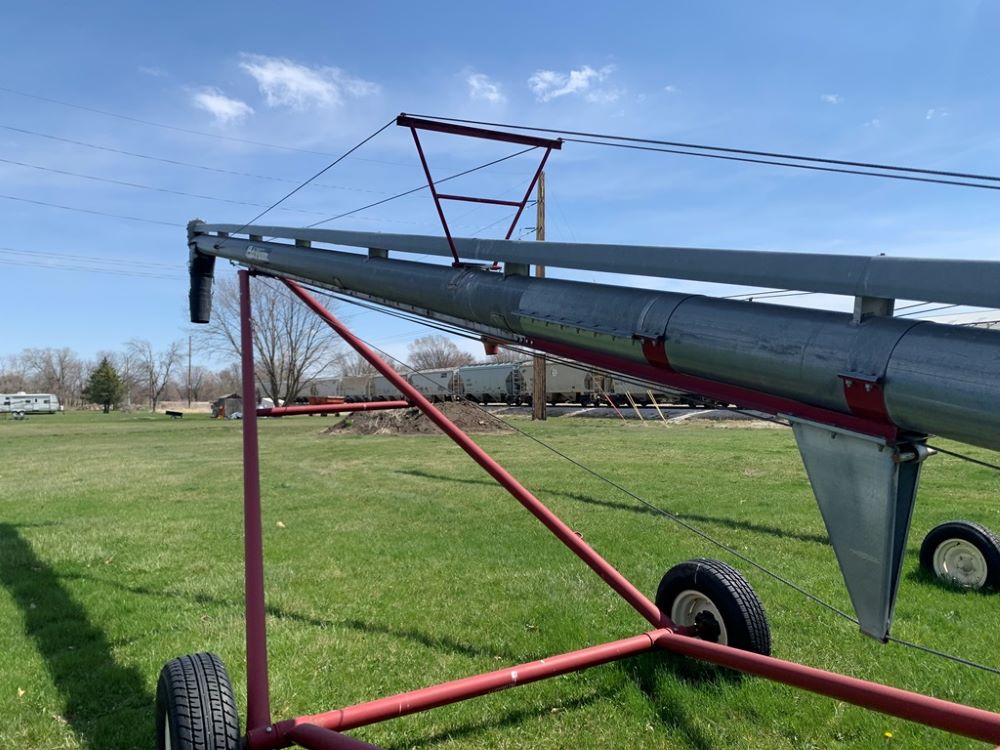 Hutchinson Grain Auger (CP3554), Hutchinson grain auger, PTO, portable, P235/75R15 tires.