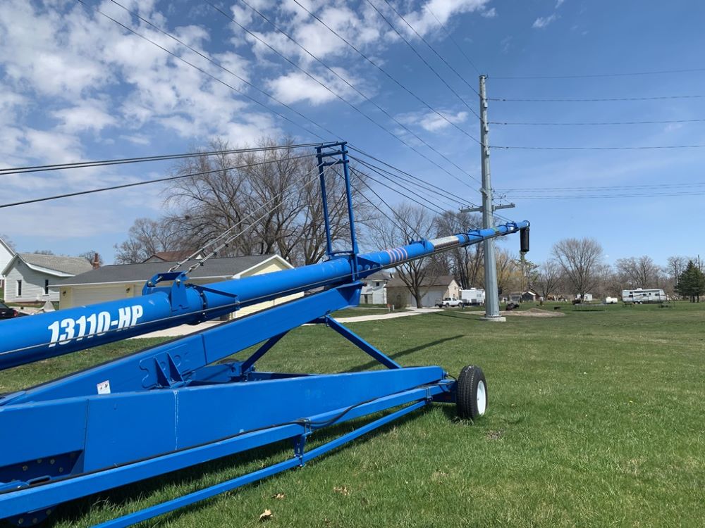 2011 Brandt Grain Auger (CP3556), 2011 Brandt 13110-HP grain auger, swing hopper, wheel assist, PTO, portable, tires.