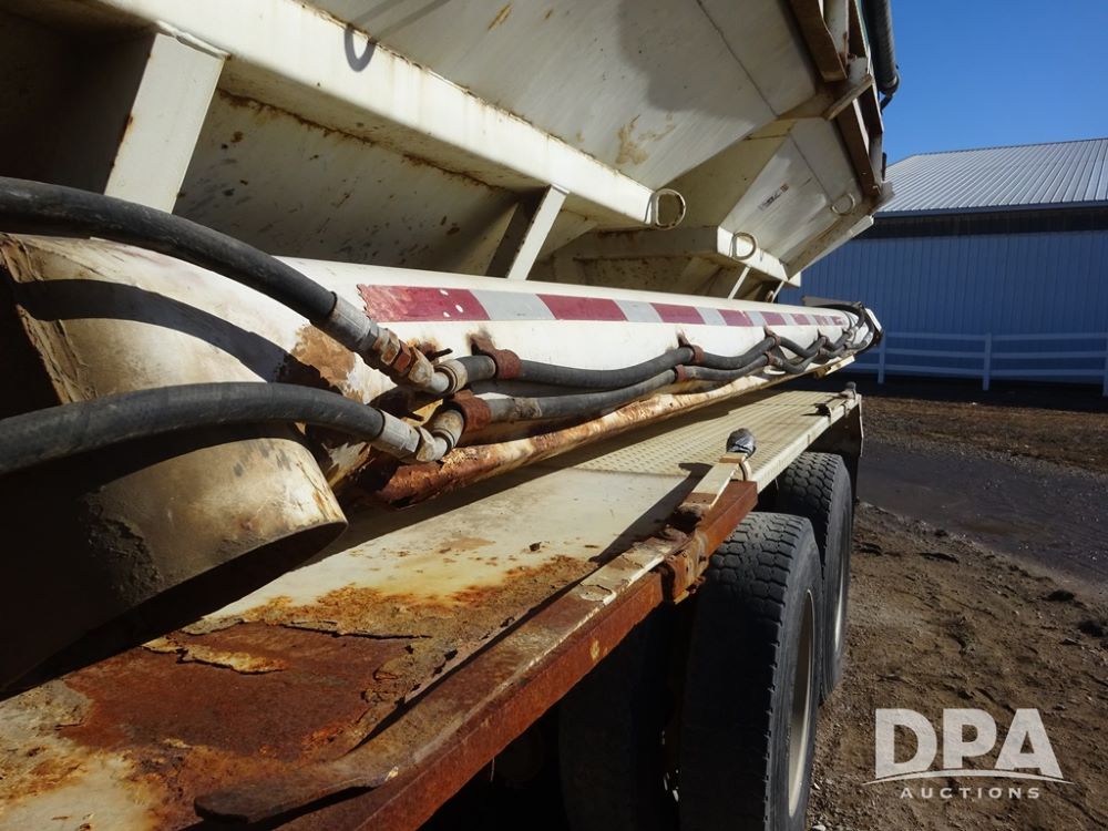 1993 Kenworth Dry Tender Truck (PZ13413, Unit G612), Cat diesel engine, 18 speed transmission, air conditioning, heat, Am/Fm radio, engine brake, tandem axle, full screw, air ride suspension, Willmar 16 ton dry tender box, side discharge auger, all hydraulic, roll over tarp, catwalk, 11R24.5 tires, aluminum rims, 508,678 miles.