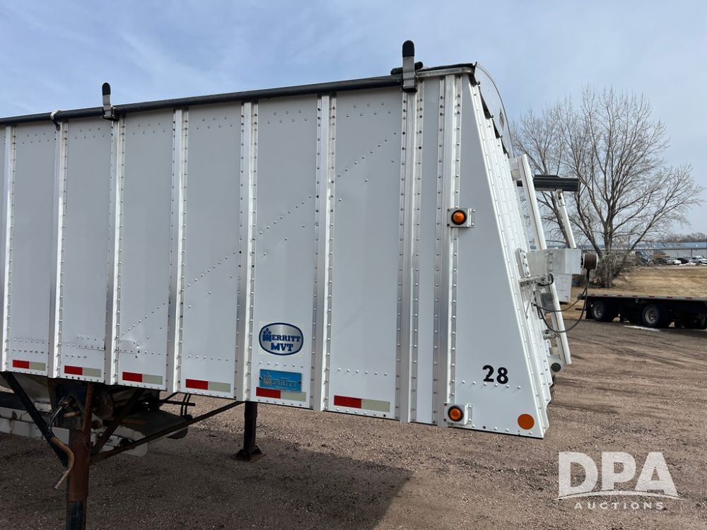 2009 Merritt Hopper Trailer (LT1347), 38.5 ft, Rapat conveyor tender system, Honda pony motor, air vibrators, Shurco power tarp, 52,088 miles showing on hubodometer.