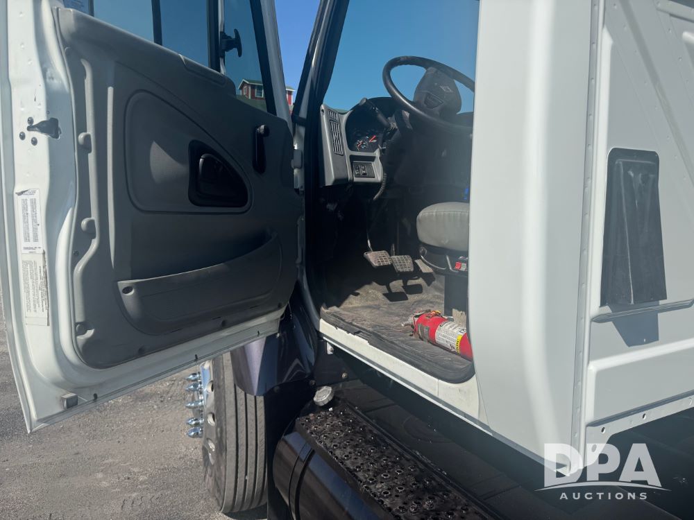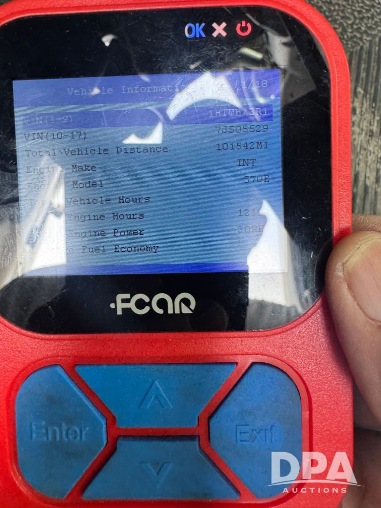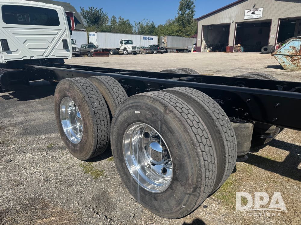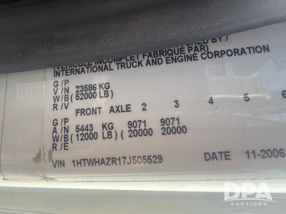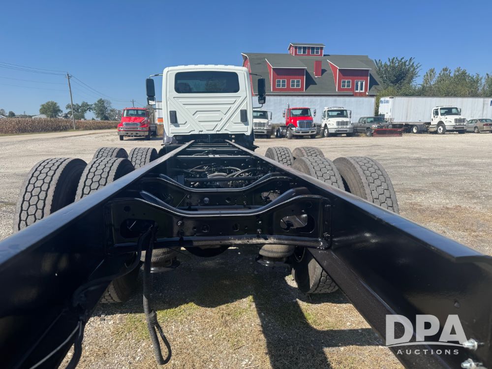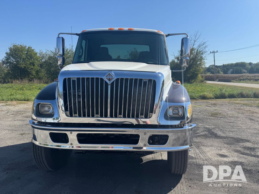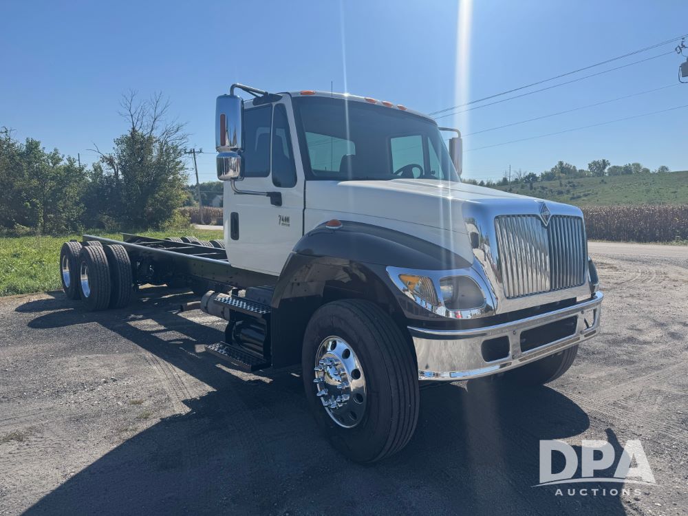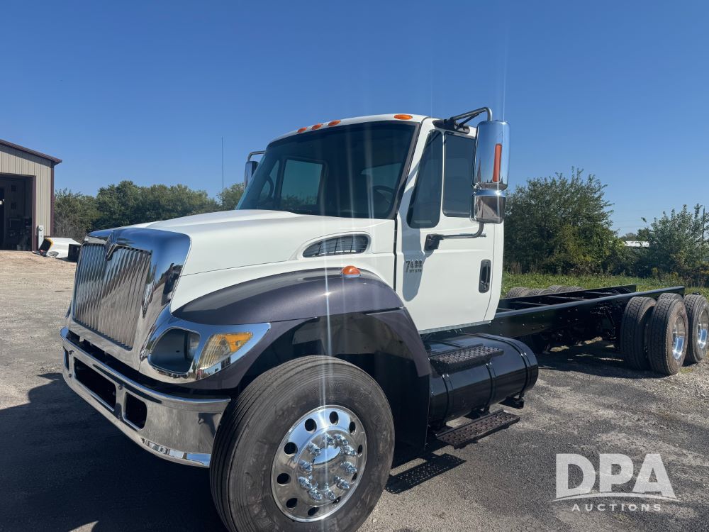 2007 International 7400 Cab/Chassis (NP6180), DT570 diesel engine (300 HP), Eaton Fuller 10 speed transmission, heat, air conditioning, Am/Fm radio, air ride cab, tandem axle, air ride suspension, 22.5 tires, 25 foot frame behind cab, GVWR 52,000 pounds, ECM VERIFIED 101,542 ACTUAL MILES.