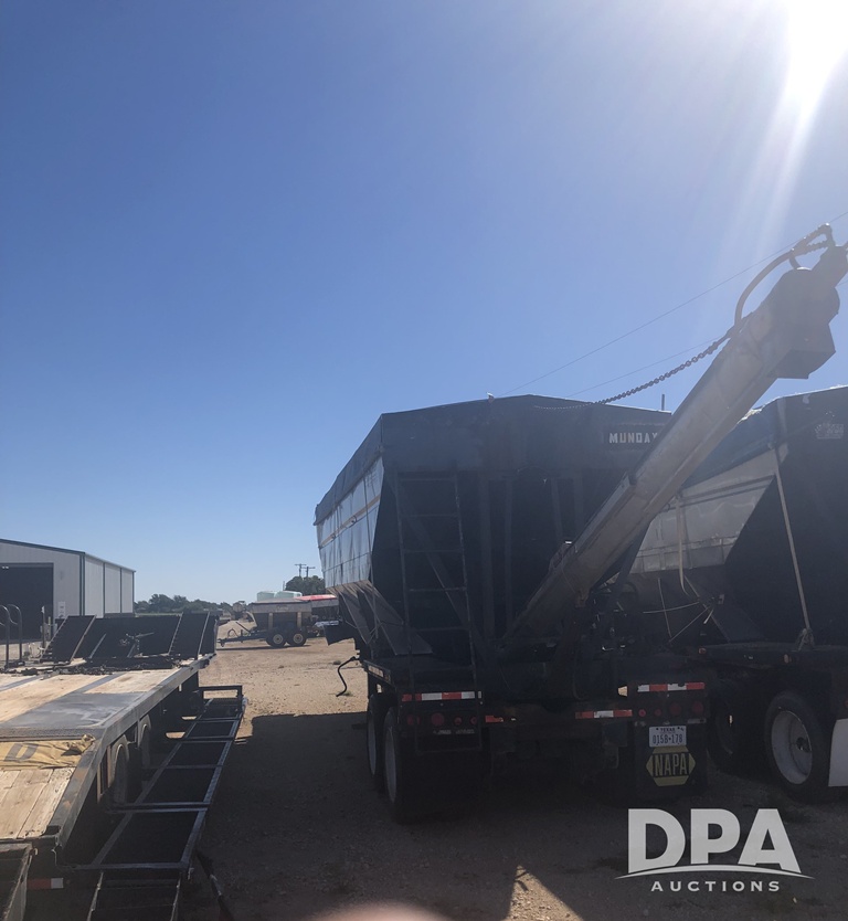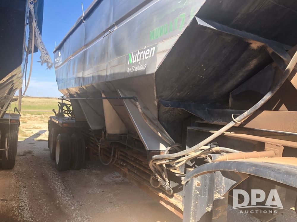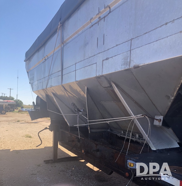 2001 Magnolia Dry Tender Trailer (PZ13924, Unit 25313), 2001 Adams 24 ton stainless steel dry tender box, rear discharge auger, NO motor, bad tarp, 2001 Magnolia trailer, tandem axle, spring suspension, 255/70R22.5 tires.