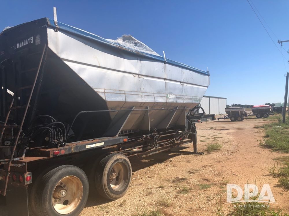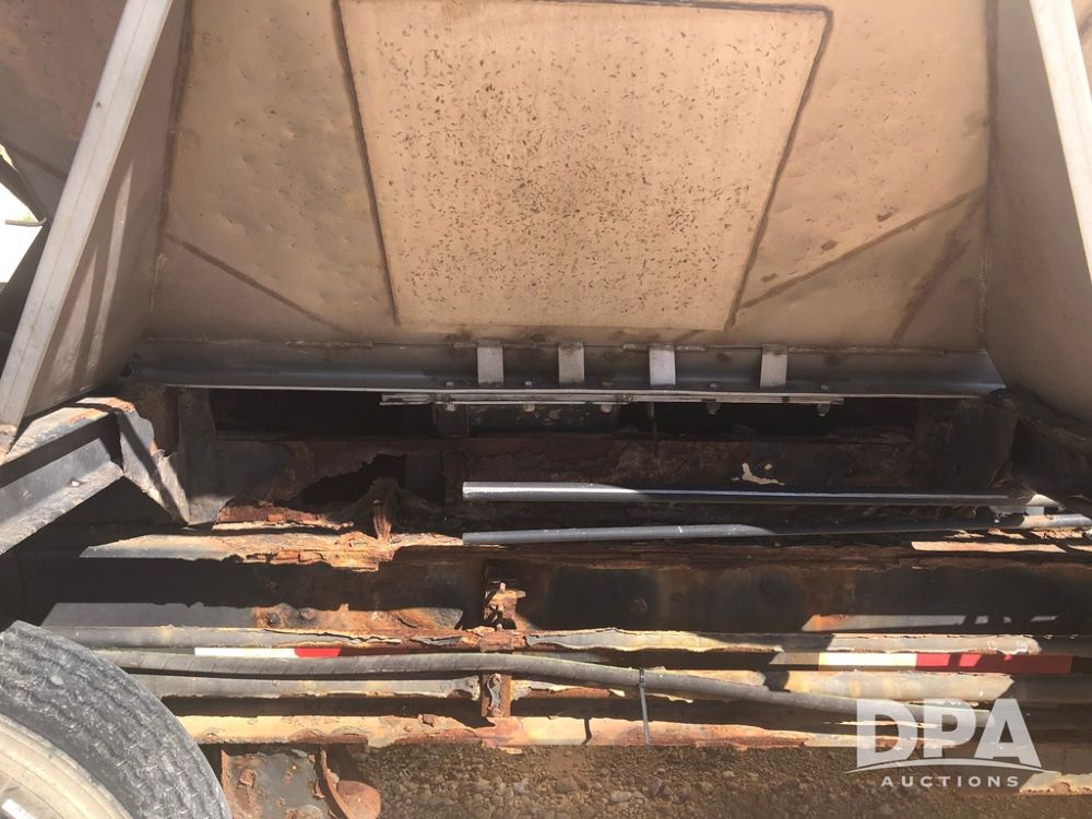 2001 Magnolia Dry Tender Trailer (PZ13925, Unit 90069), 2001 Adams 24 ton stainless steel dry tender box, rear discharge auger, NO motor, bad tarp, 2001 Magnolia trailer, tandem axle, spring suspension, 255/70R22.5 tires.