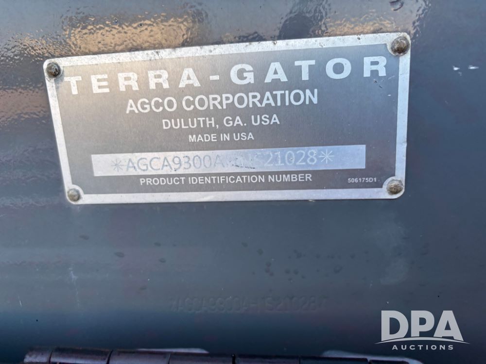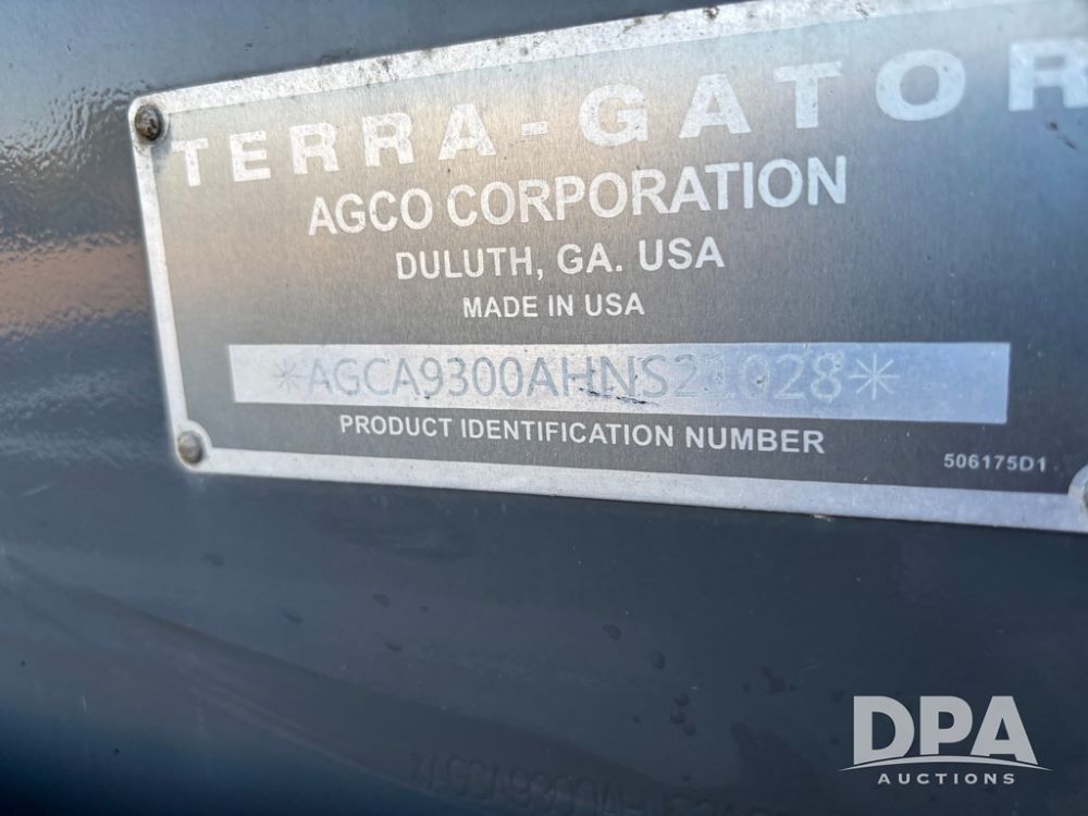 2017 Terra gator 9300B Floater (DR12235), diesel engine, CVT transmission, air Max Precision 2 dry air flow box, 70' stainless steel boom, electric roll tarp, stainless steel foam tank, Raven Viper IV controller, cab cam, heat/air conditioning, AM/FM CD radio, Trelleborg 1050/50R32 tires, shows 3,825 hours.