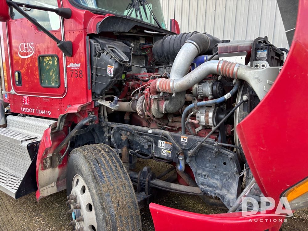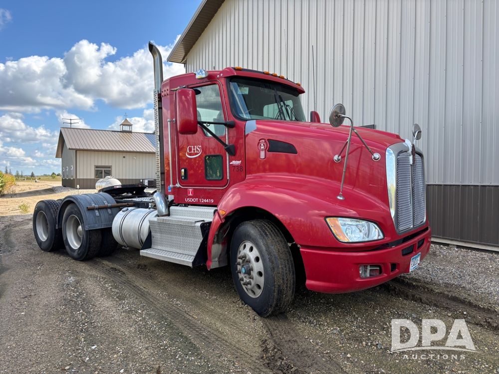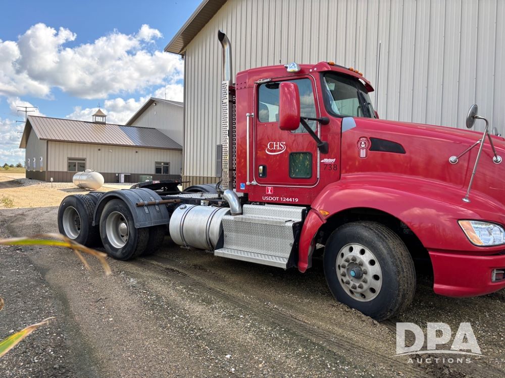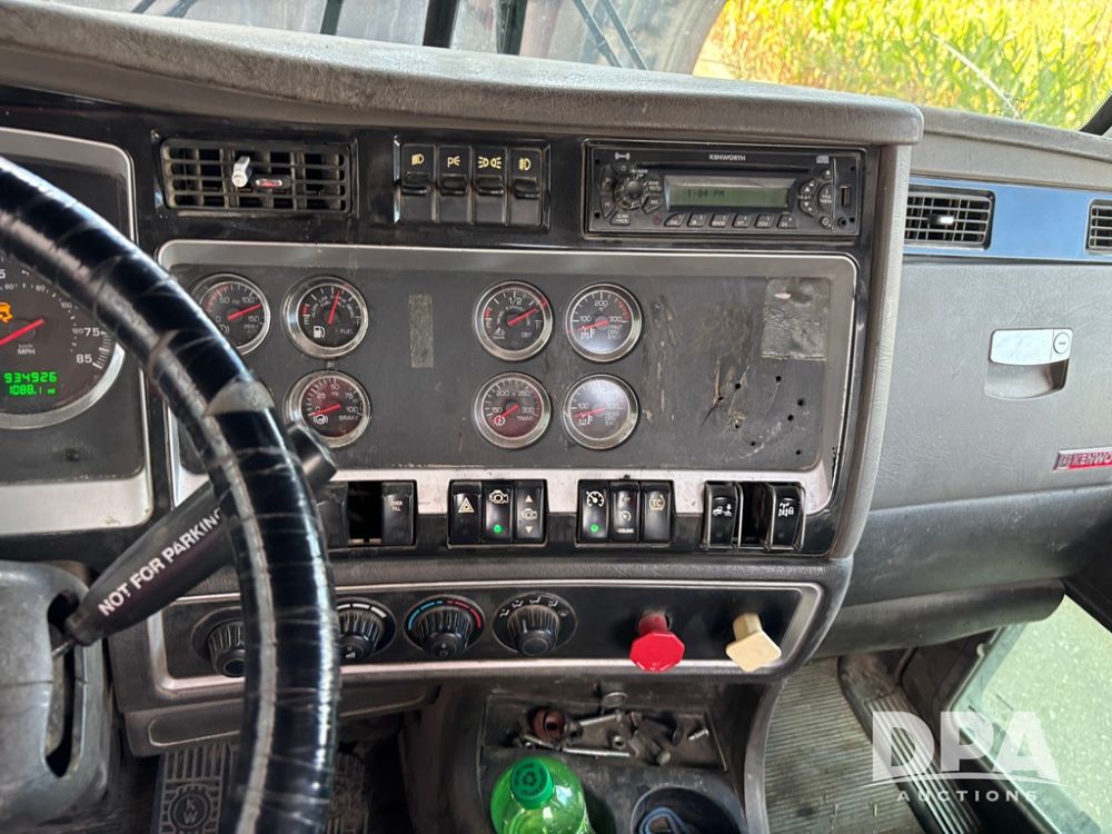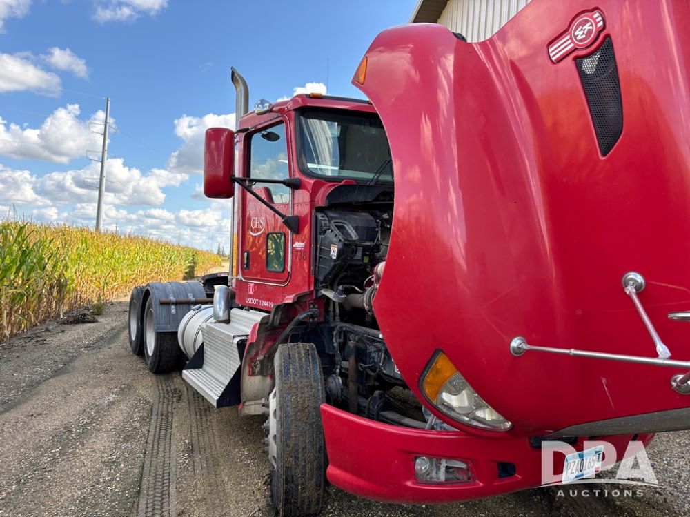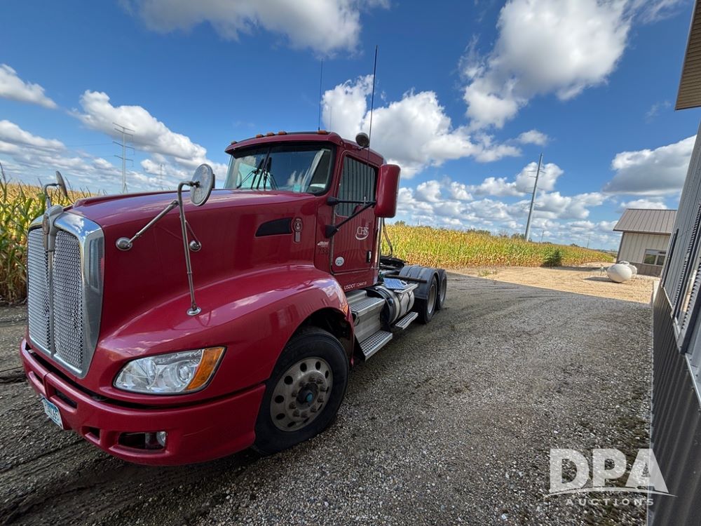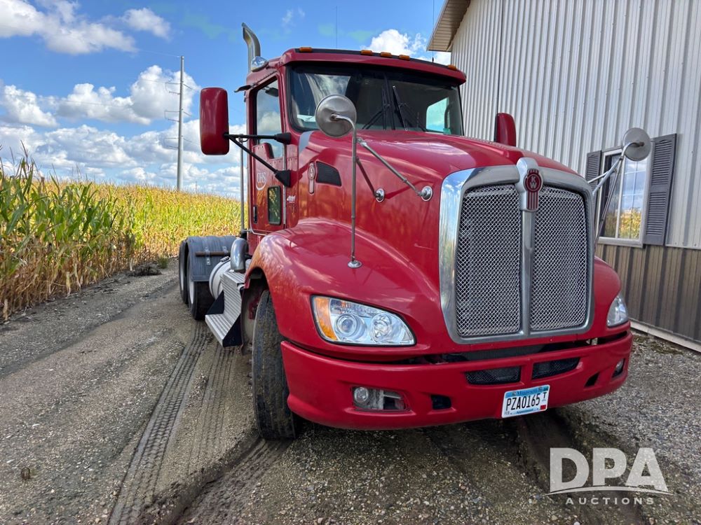 2013 Kenworth Truck (DR12246), Cumins ISX diesel engine, 10 speed transmission, tandem axle full screw, air ride suspension, 191'' WB, hydraulic wet kit, 5th wheel plate, engine brake, cruise control, heat/air conditioning, air dump, single hump Minimizer fenders, 22.5 tires, aluminum wheels, odometer reads 934,926 miles.