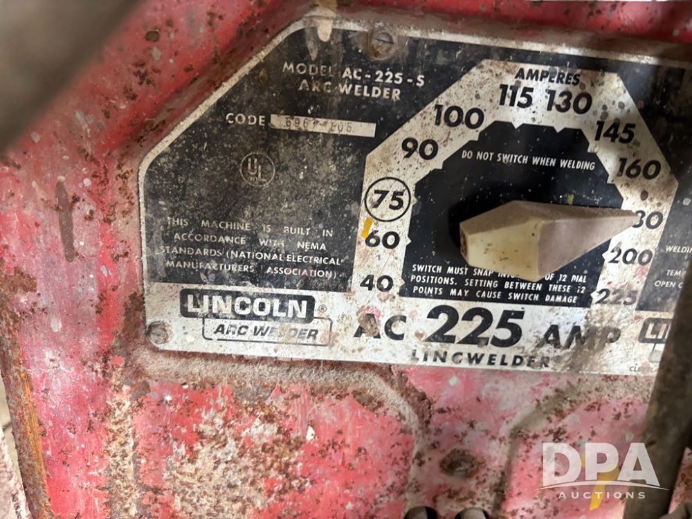 Lincoln Welder (DR12248), 225 AMP stick welder, includes leads, and caster cart.