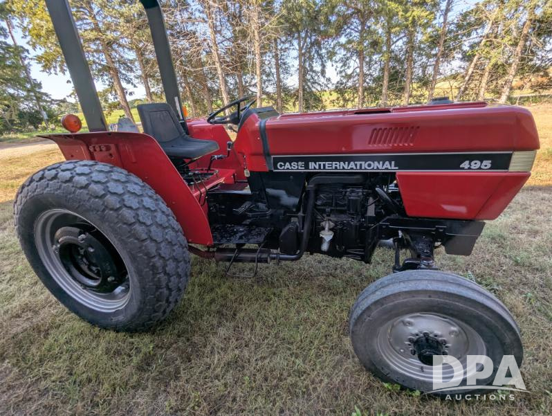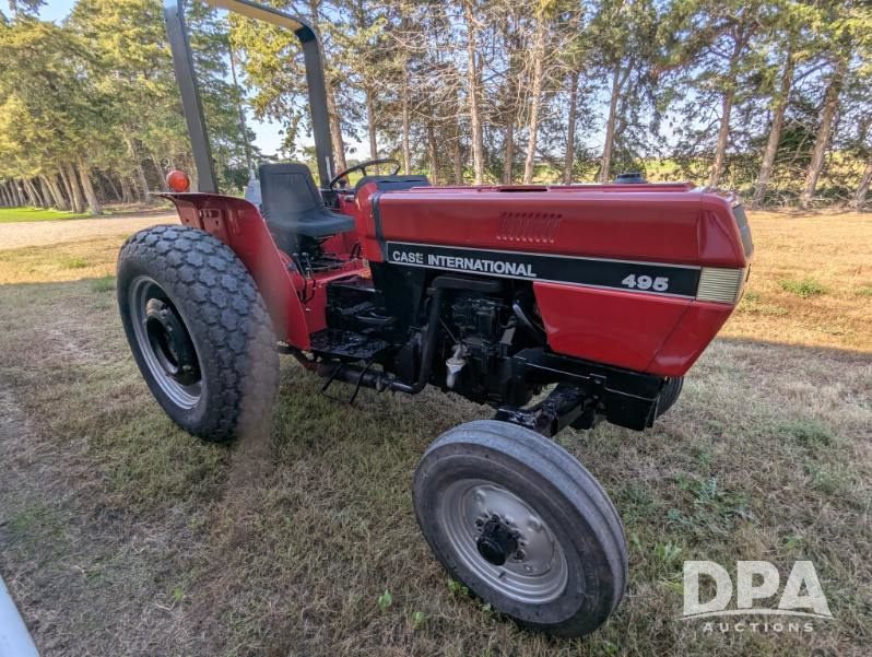 Case International 495 Tractor (NJP368), Case 2.9L 3-Cyl diesel engine, shuttleshift transmission, 53hp, 2wd, 540pto, front tires 6.00-16, rear tires 13.6-28, shows 4,760 hours.