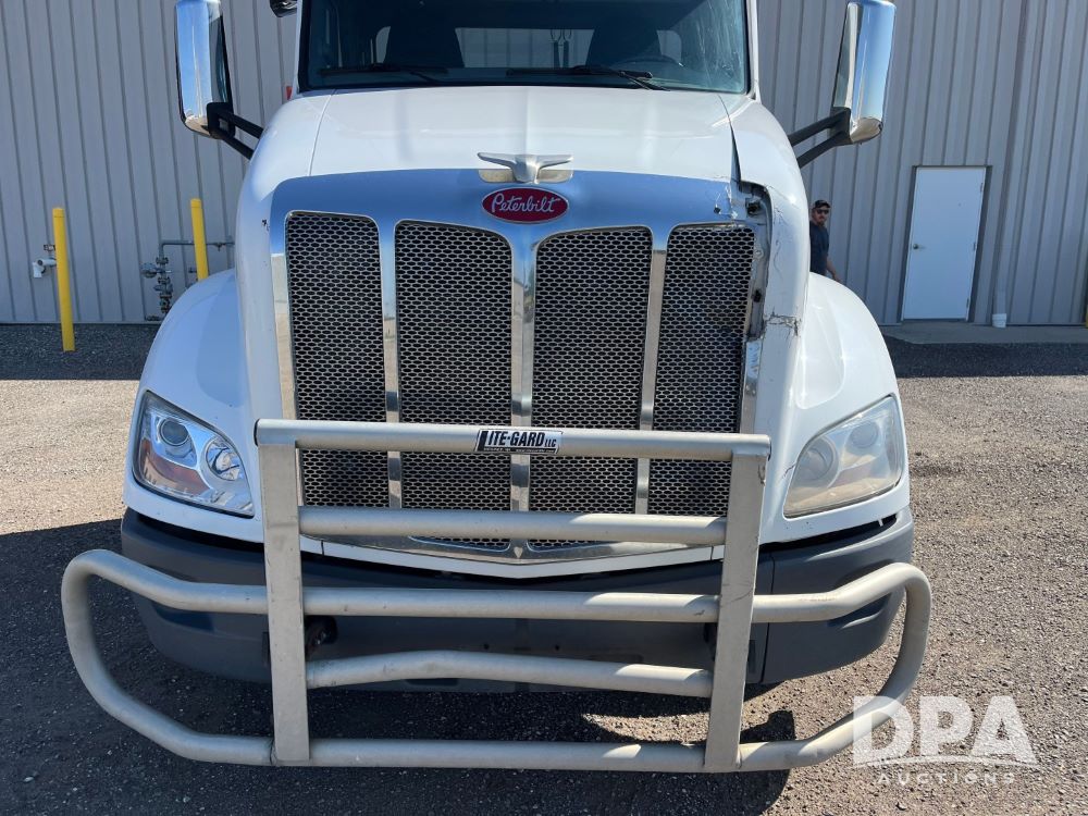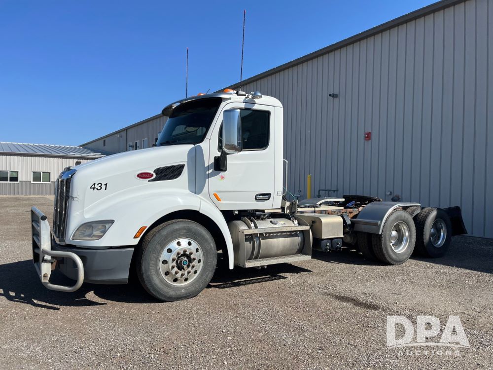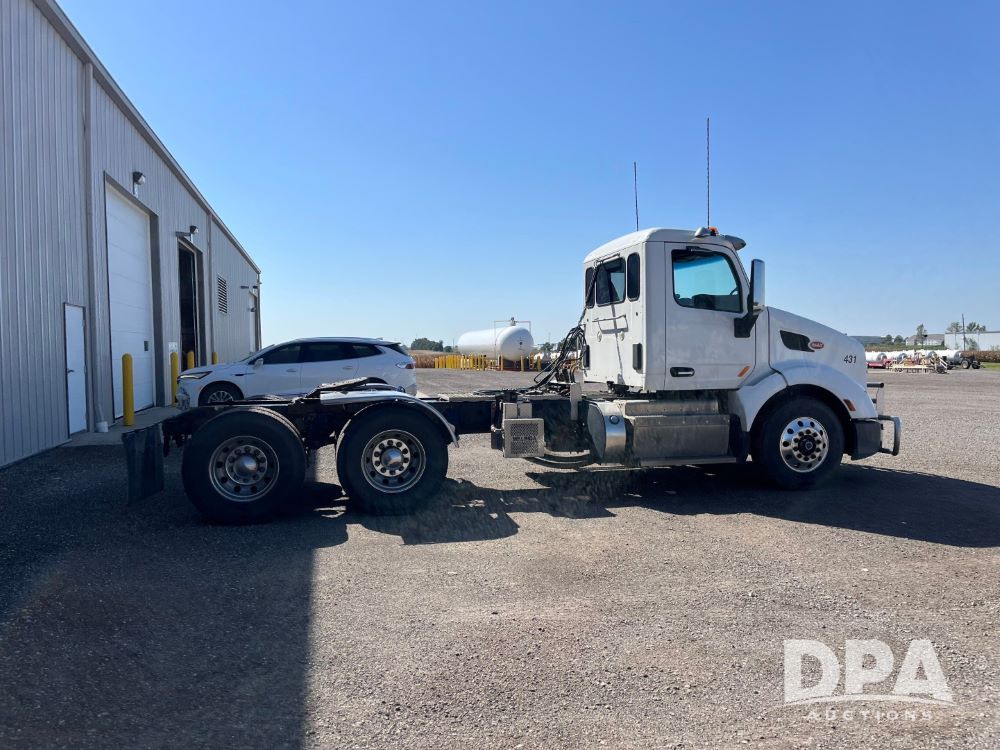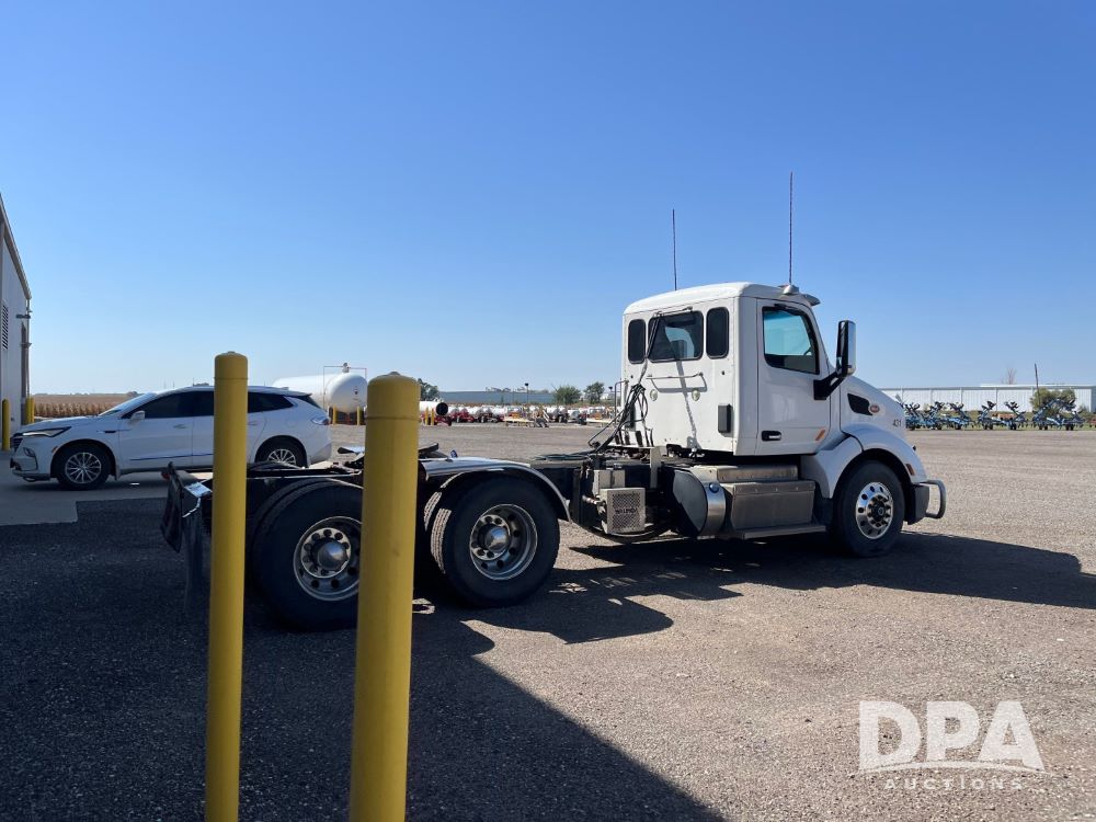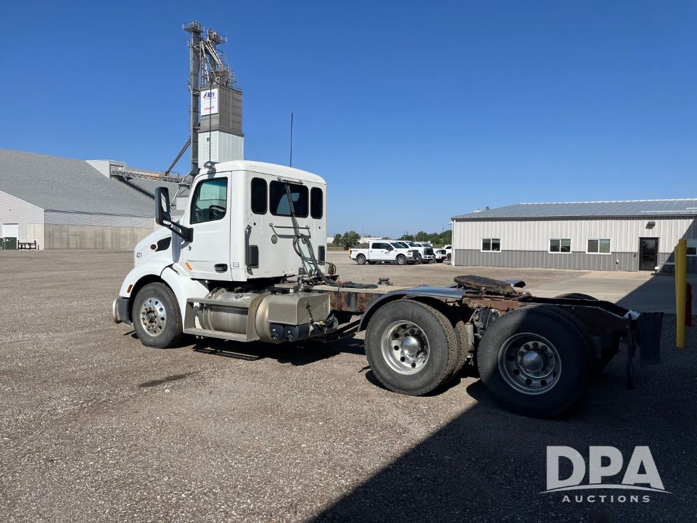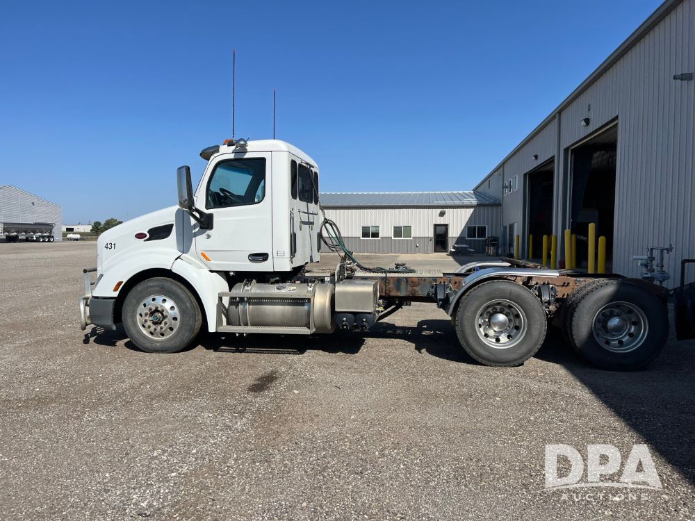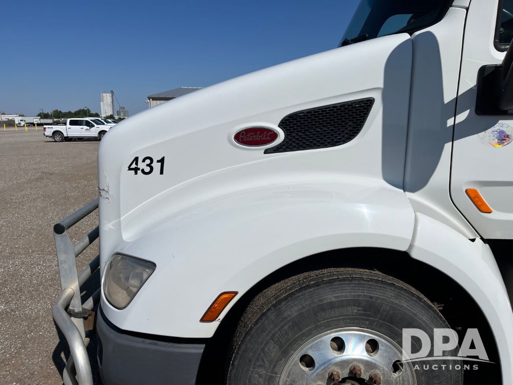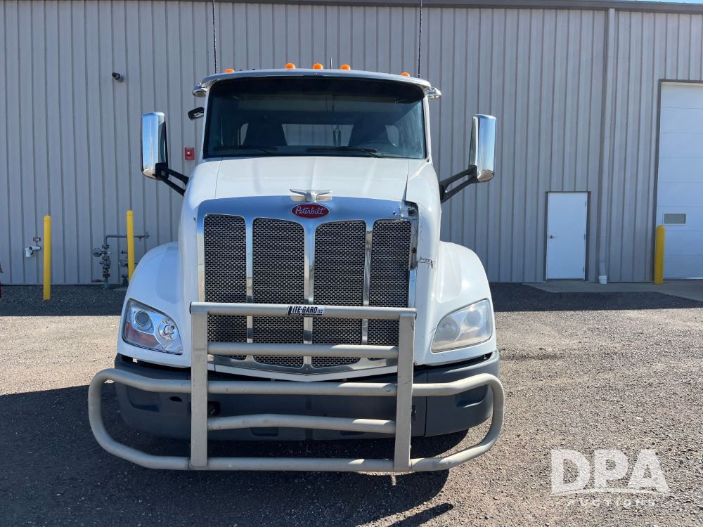 2015 Peterbilt Day Cab Truck (JN3114, Unit 431), Paccar MX-13 diesel engine, Eaton Fuller 13 speed transmission, air conditioning, heat, Am/Fm radio, cruise control, engine brake, power windows & locks, Lite-Gard grill guard, tandem axle, full screw, air ride suspension, 5th wheel, wet kit, 11R22.5 tires, aluminum rims, quarter fenders, shows 659,775 miles.