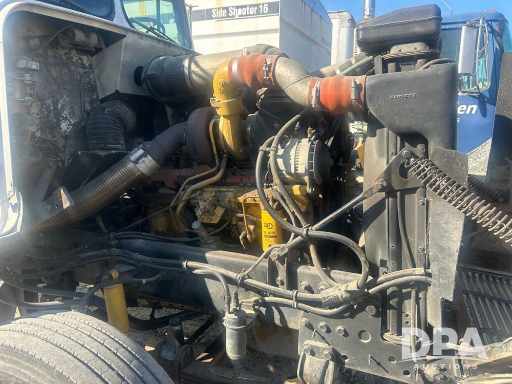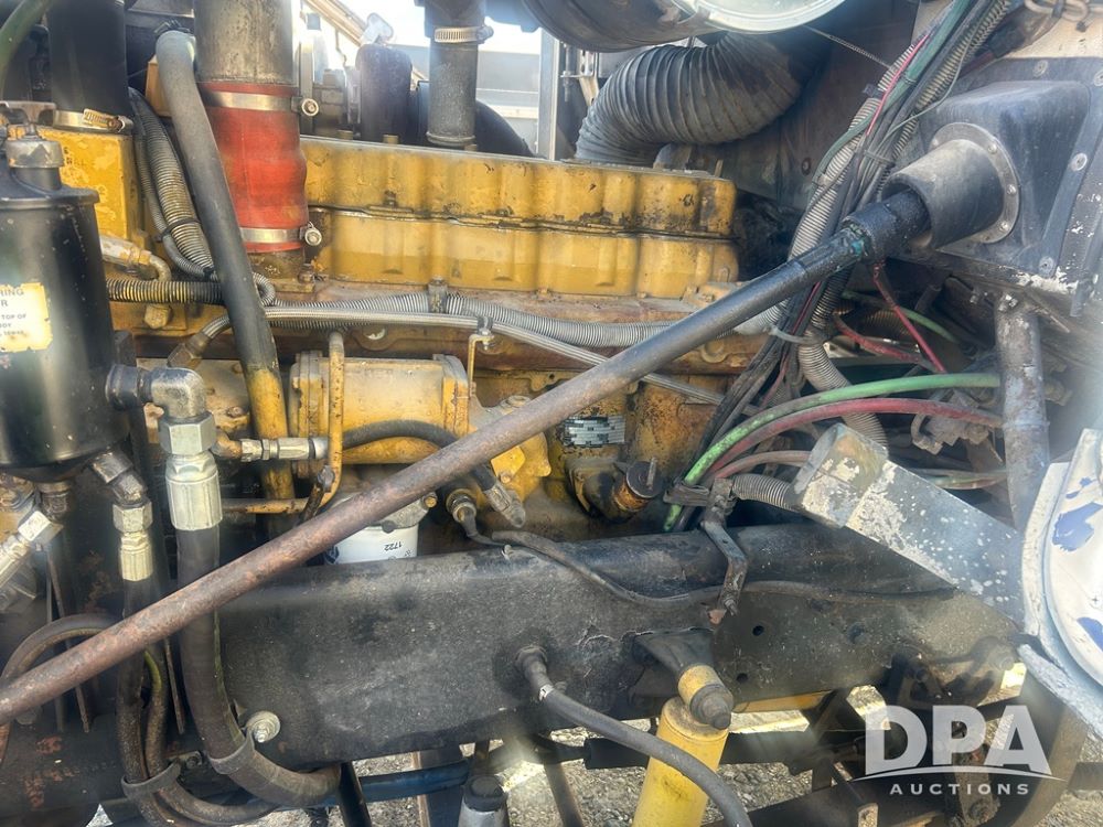 1987 Freightliner FLD120 Cab/Chassis (NP6184, Unit 115566), Cat 3306B diesel engine, Fuller Roadranger 9 speed transmission, tandem axle, single fuel tank, single exhaust, shows 527,655 miles.