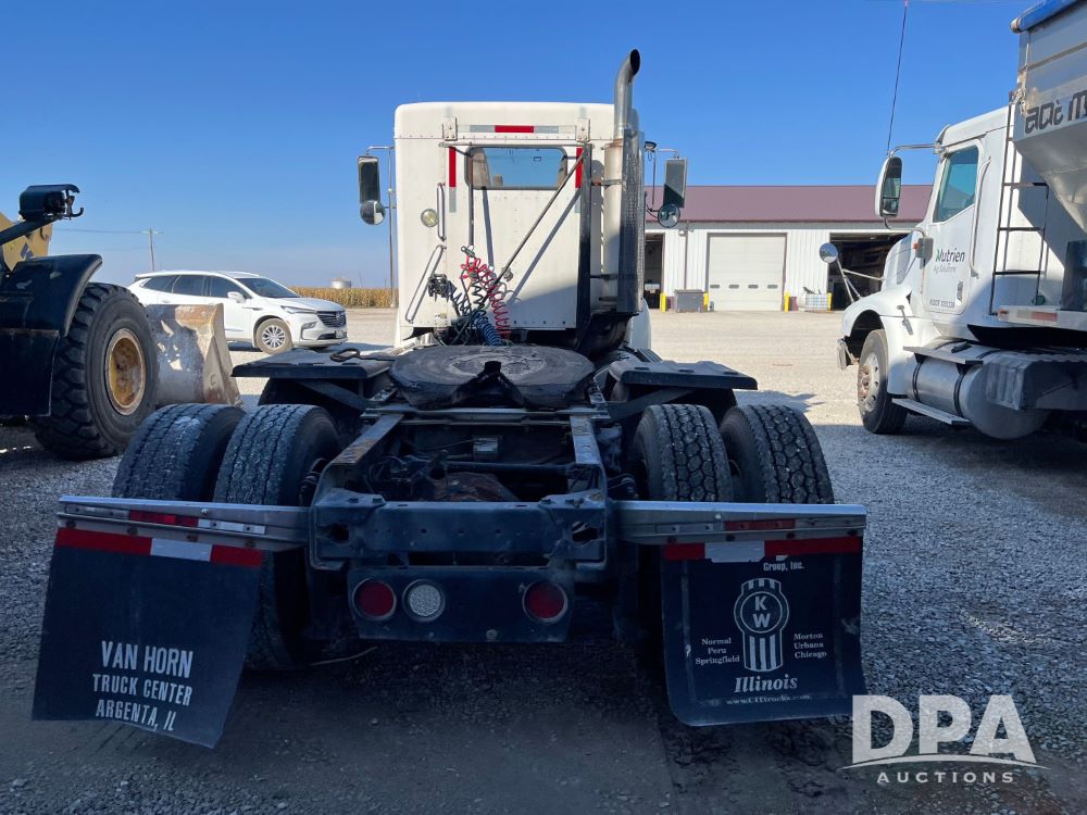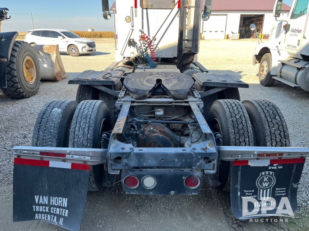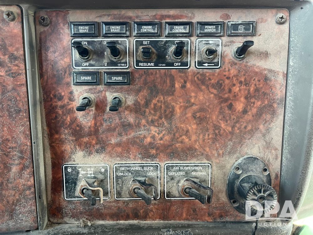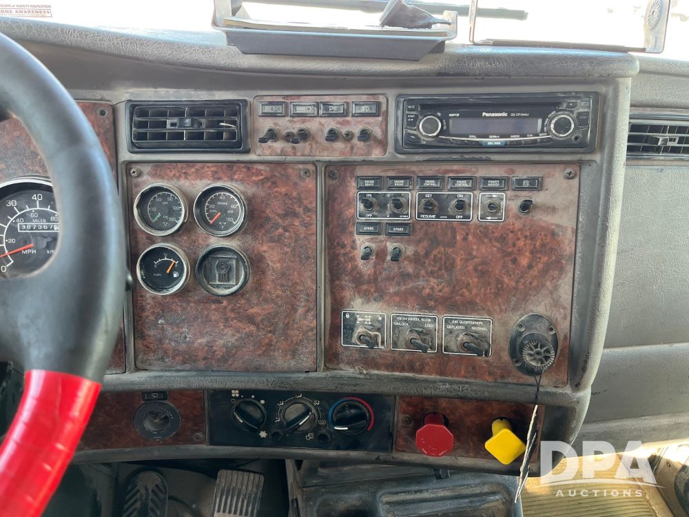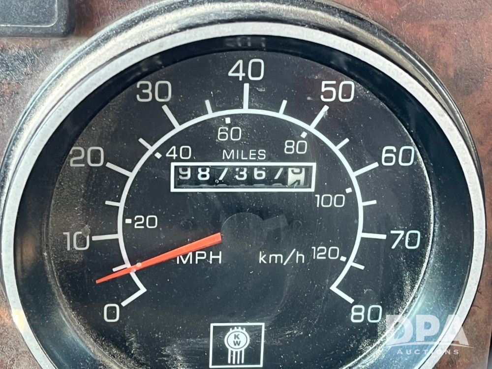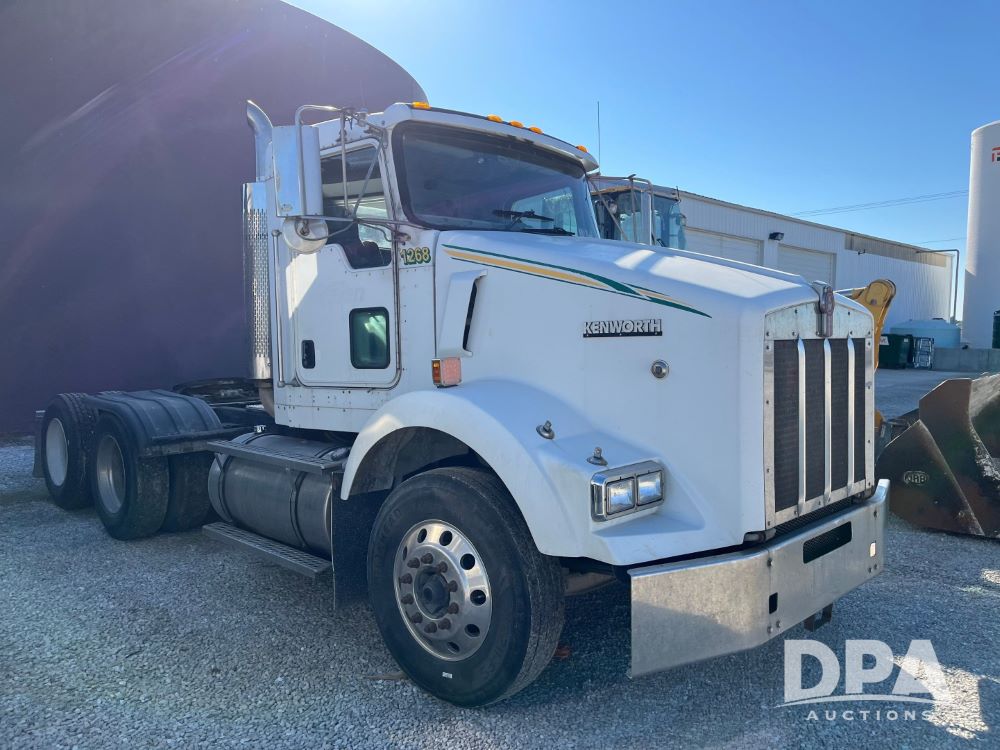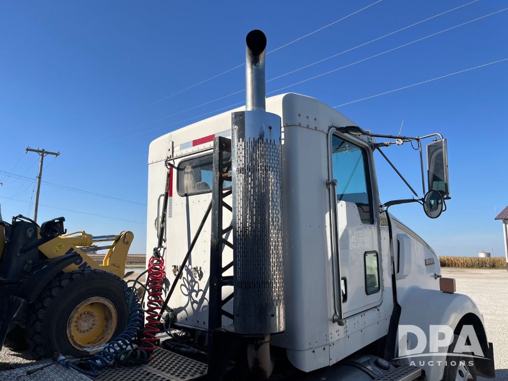2005 Kenworth T800 Day Cab Truck (JN3151, Unit 110545), diesel engine, Eaton Fuller 10 speed transmission, air conditioning, heat, Am/Fm CD radio, cruise control, engine brake, tandem axle, full screw, air ride suspension, 5th wheel, 295/75R22.5 tires, aluminum rims, quarter fenders, shows 987,367 miles.