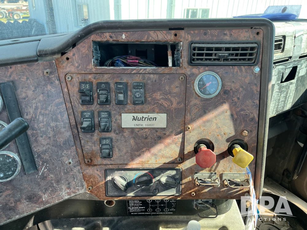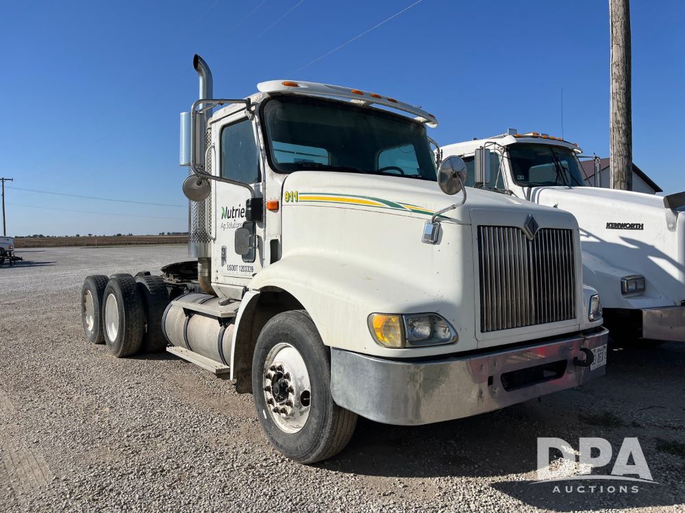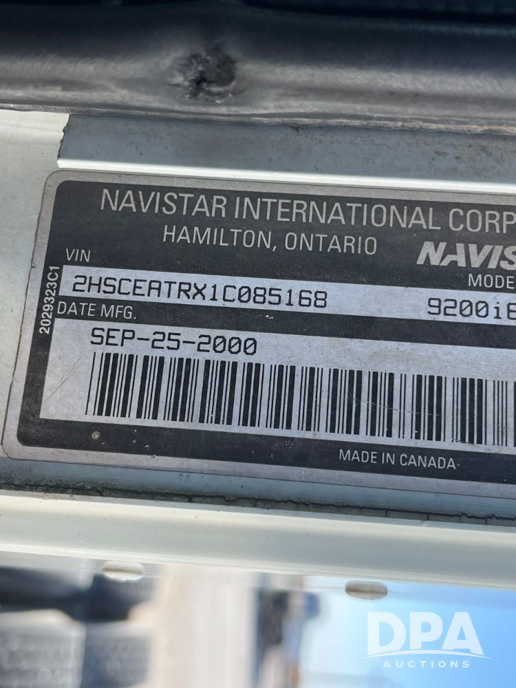 2001 IHC 9200i Day Cab Truck (JN3152, Unit 110537), diesel engine, Spicer 9 speed transmission, air conditioning, heat, cruise control, tandem axle, full screw, air ride suspension, 5th wheel, wet kit, 295/75R22.5 tires, shows 638,881 miles.