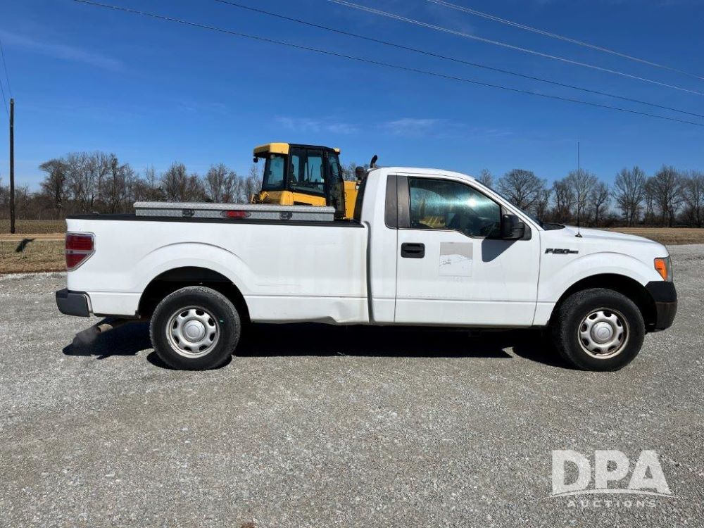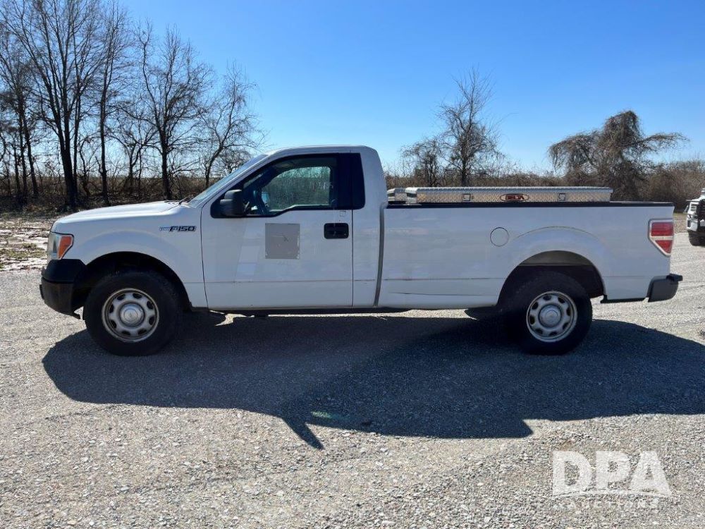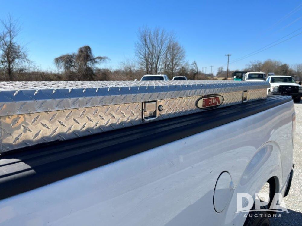 2010 Ford F150 (LLD1425), flexible fuel engine, automatic transmission, 2 wheel drive, heat, air conditioning, radio, side toolboxes included with the sale, shows 140,936 miles.